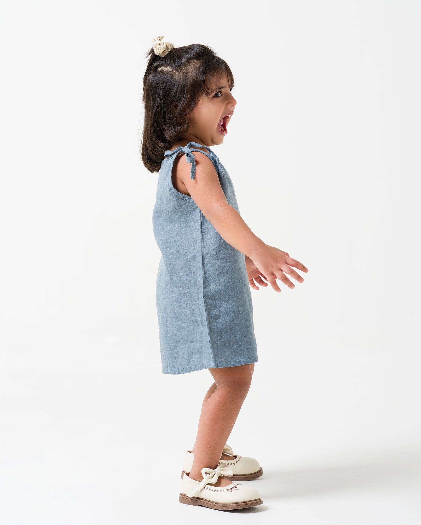 Air Force Blue Tie-Up Shoulder Flower (Frock)