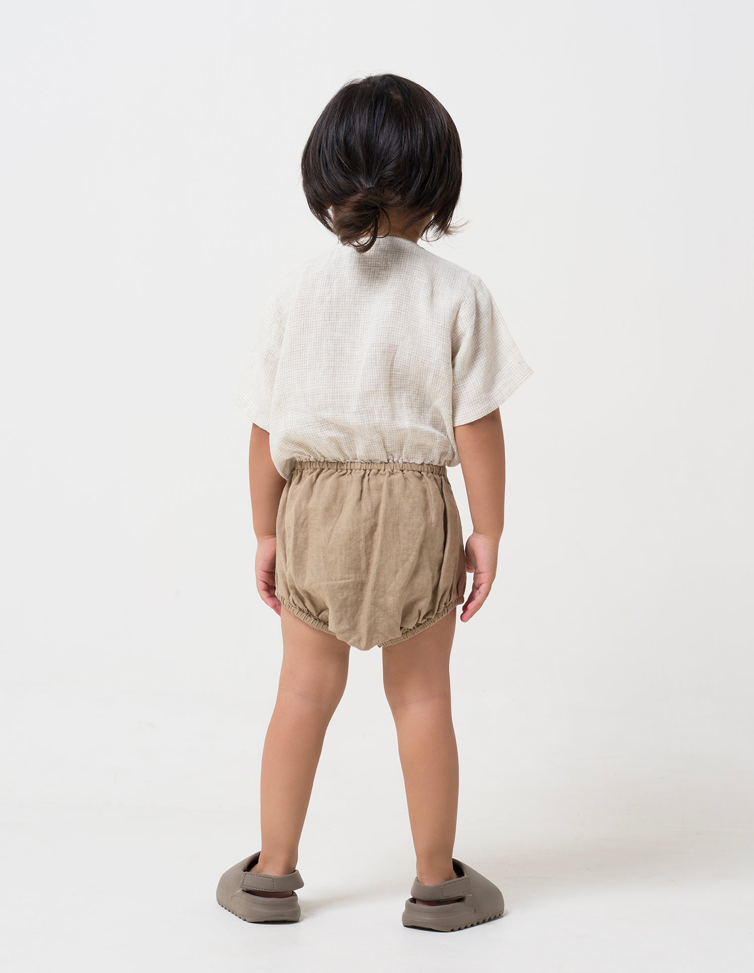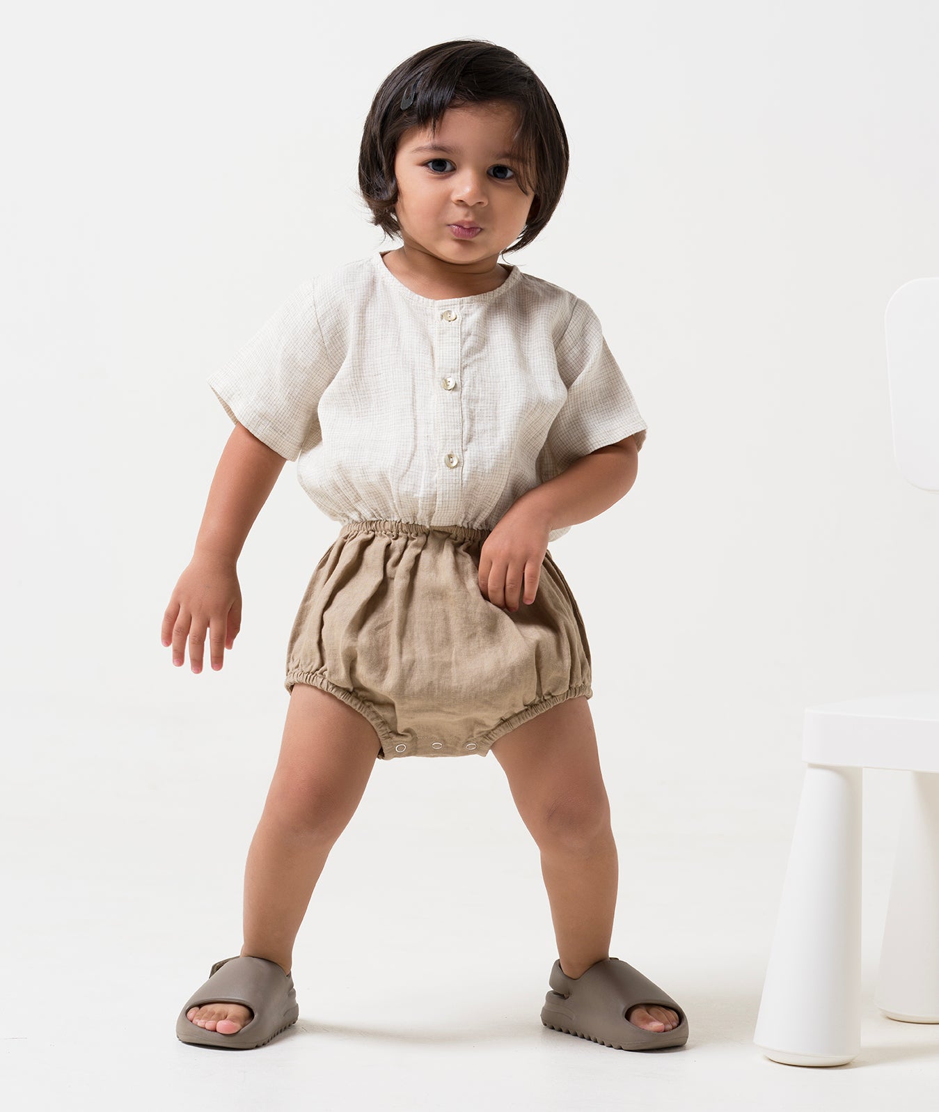 Bloom romper for Boy T-Ivory Checks - B- Desert Sand