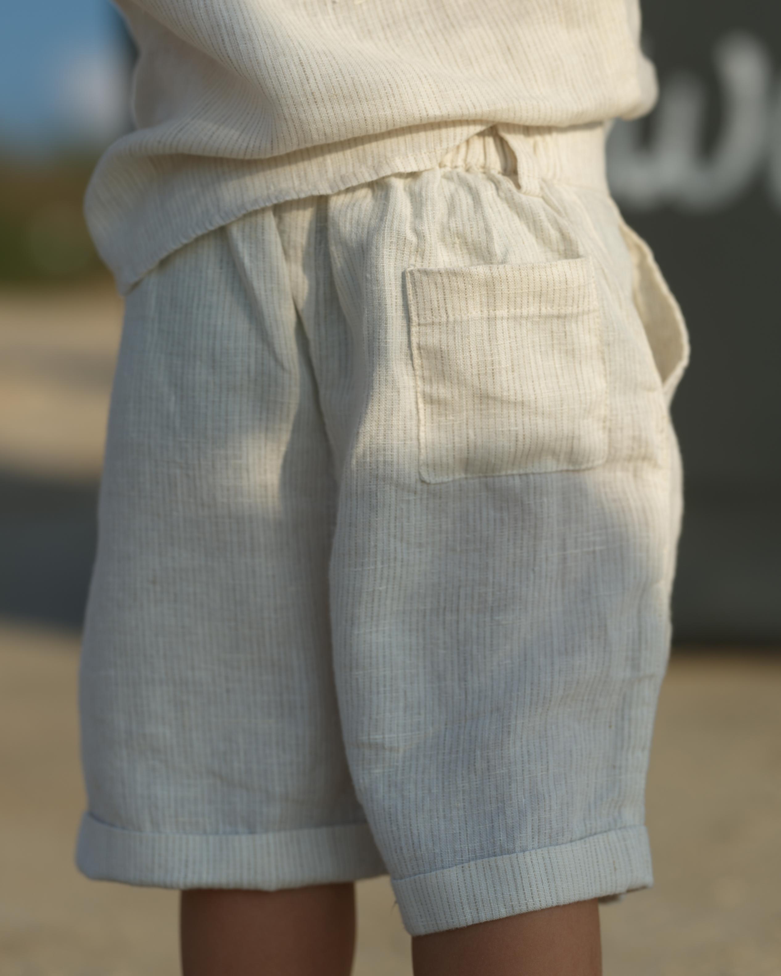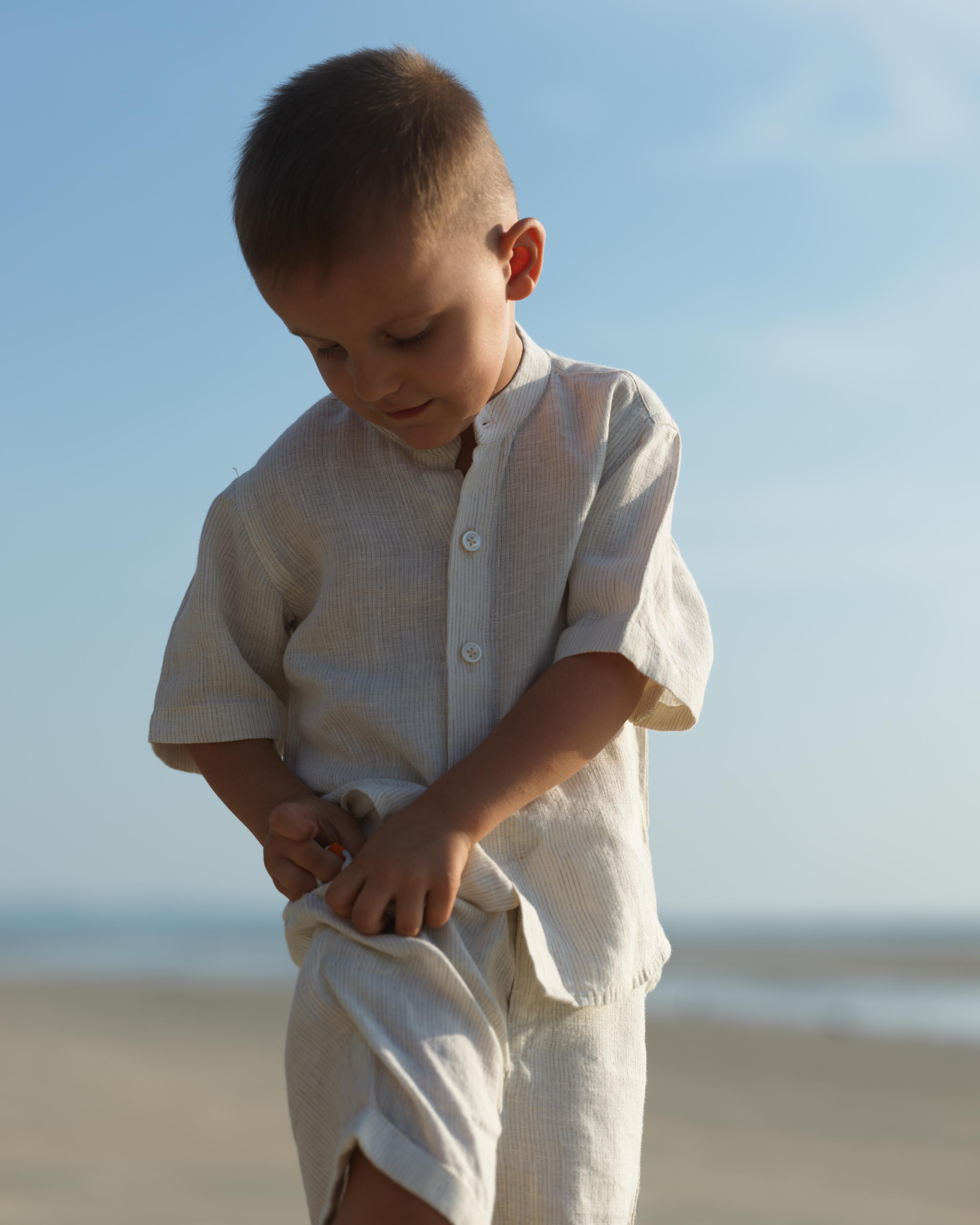 Boys Mandarin Collar Shirt & Shorts Co-Ord Beige