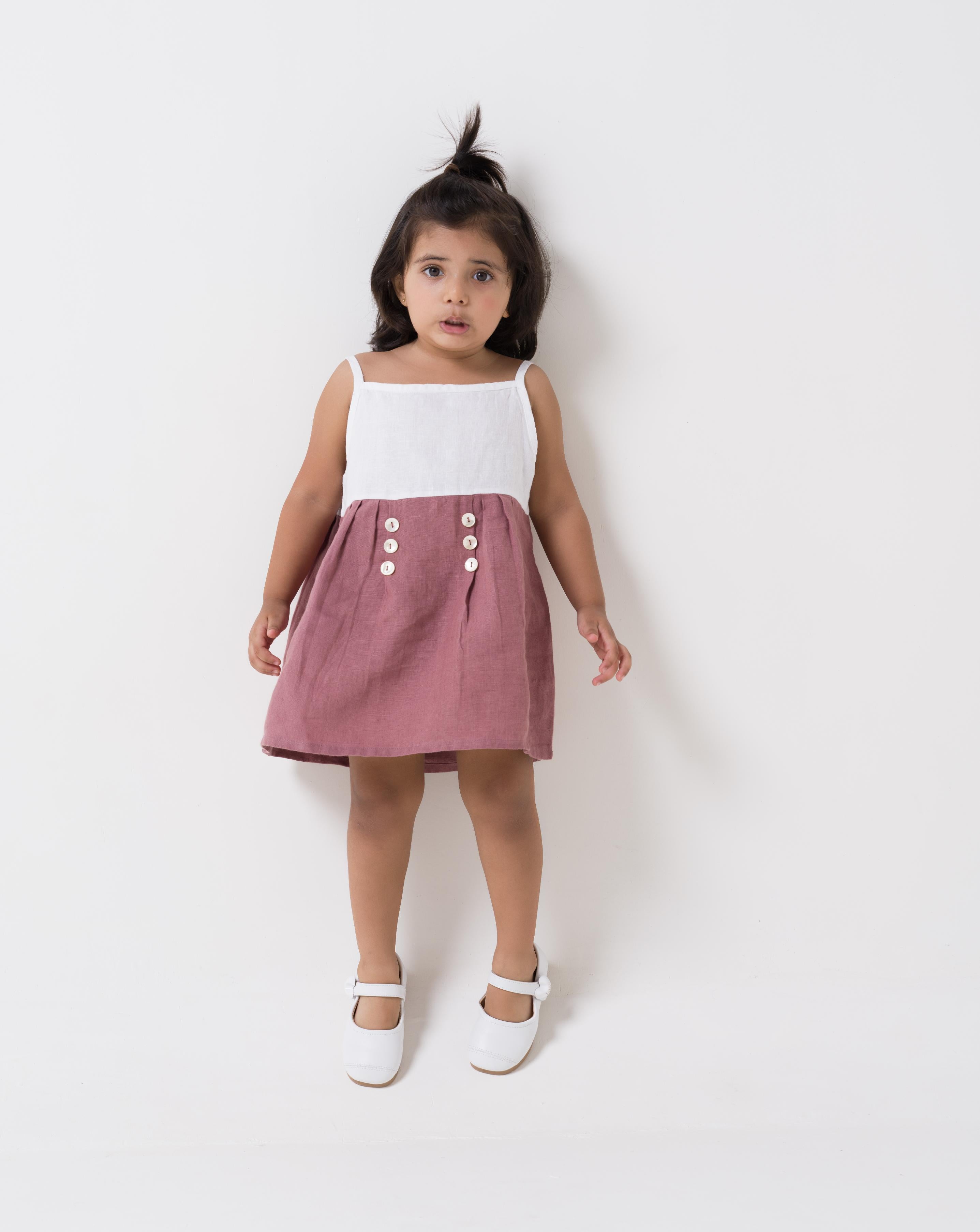Buttons Detailed Frock Yoke - White - Dress - Rose Gold