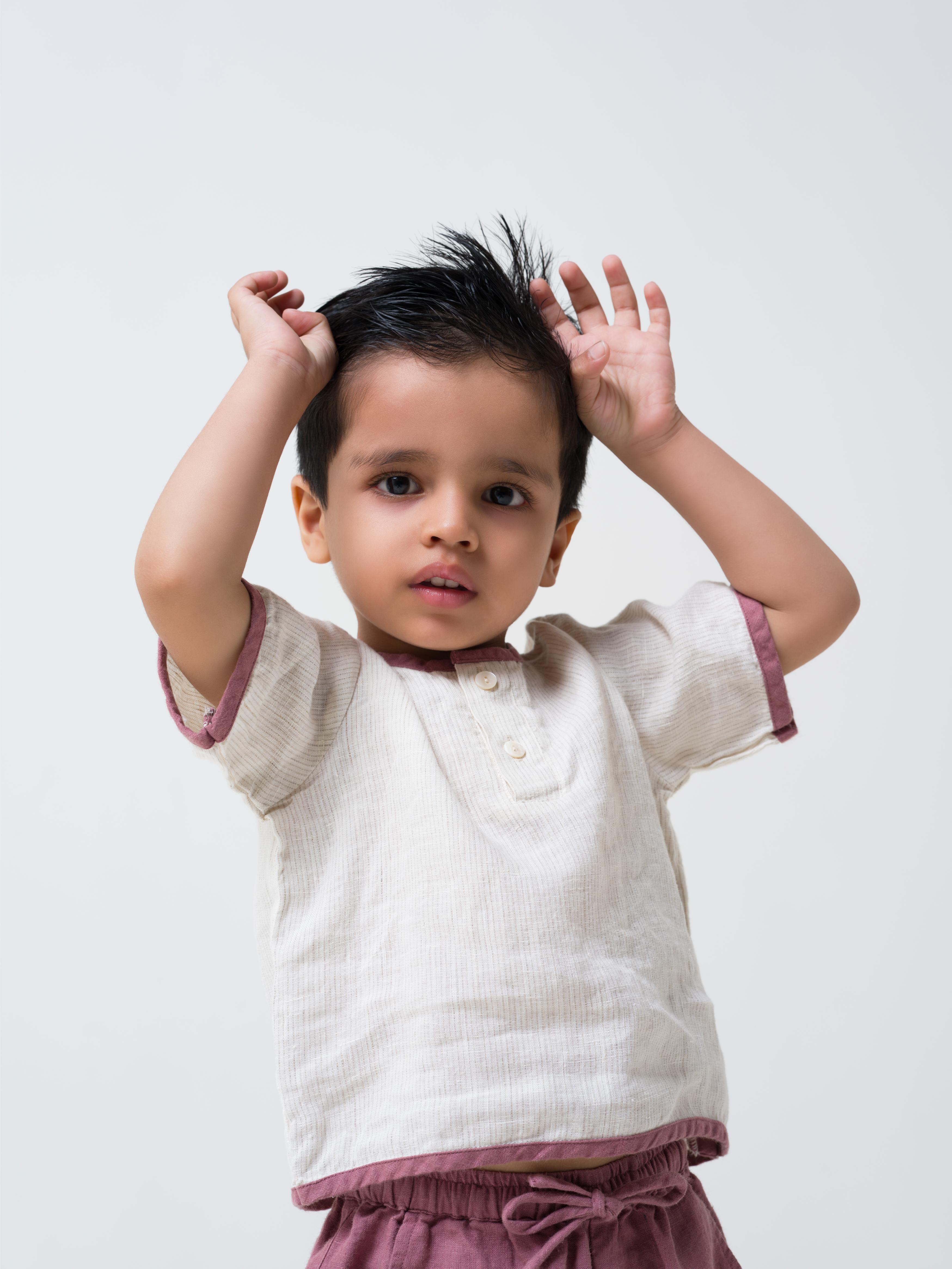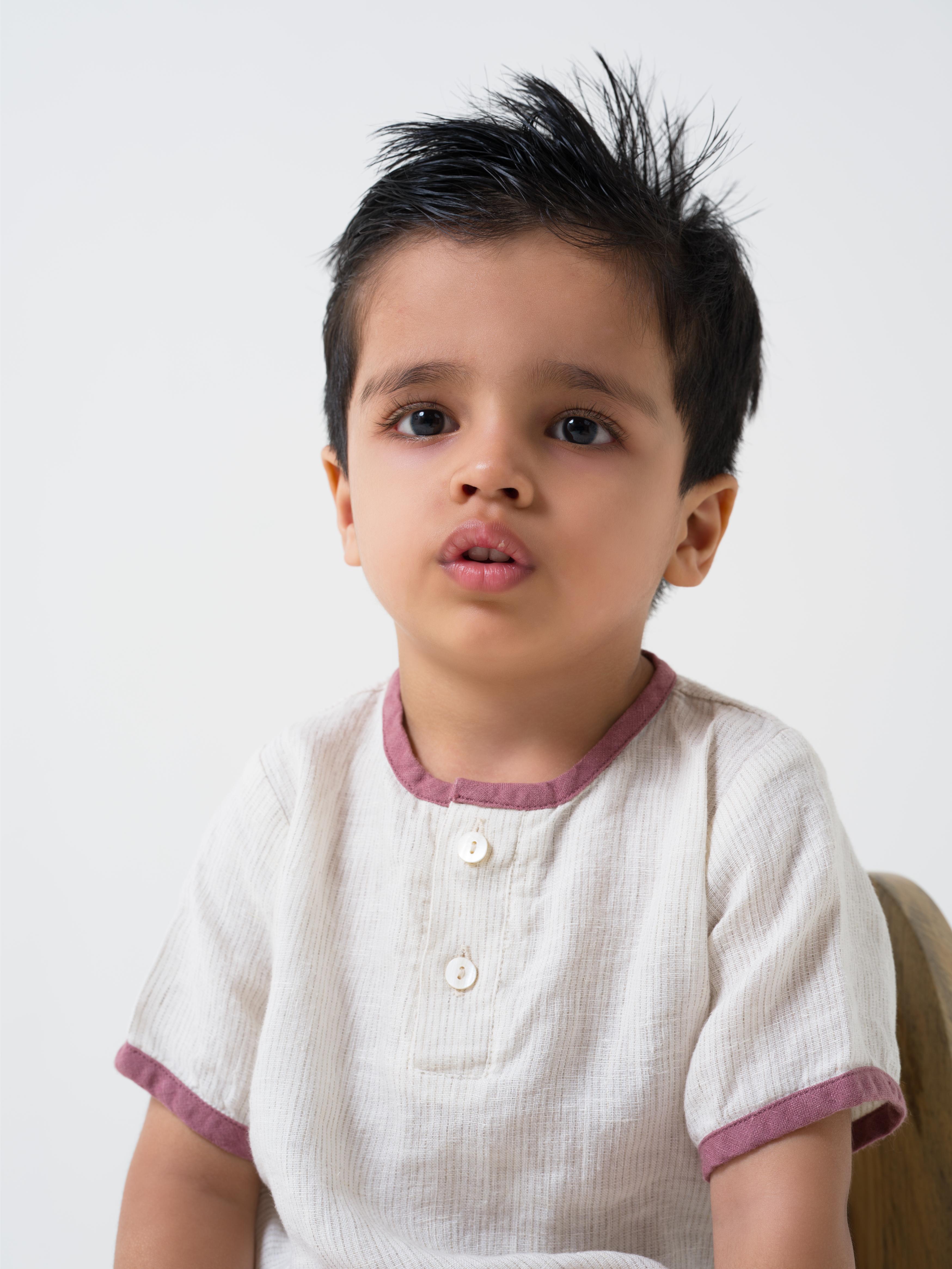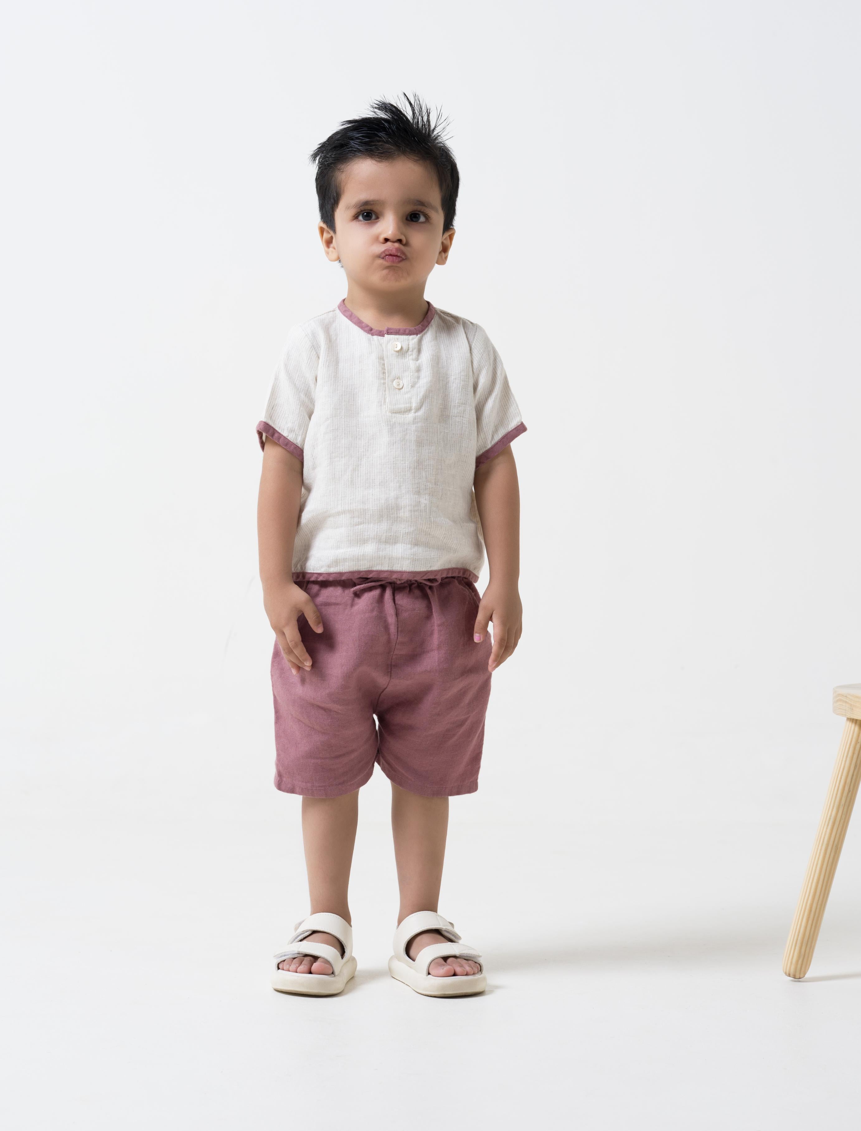 Drawstring Shorts & Shirt Set Shirt - Beige Hairline Stripe - Shorts Rose gold