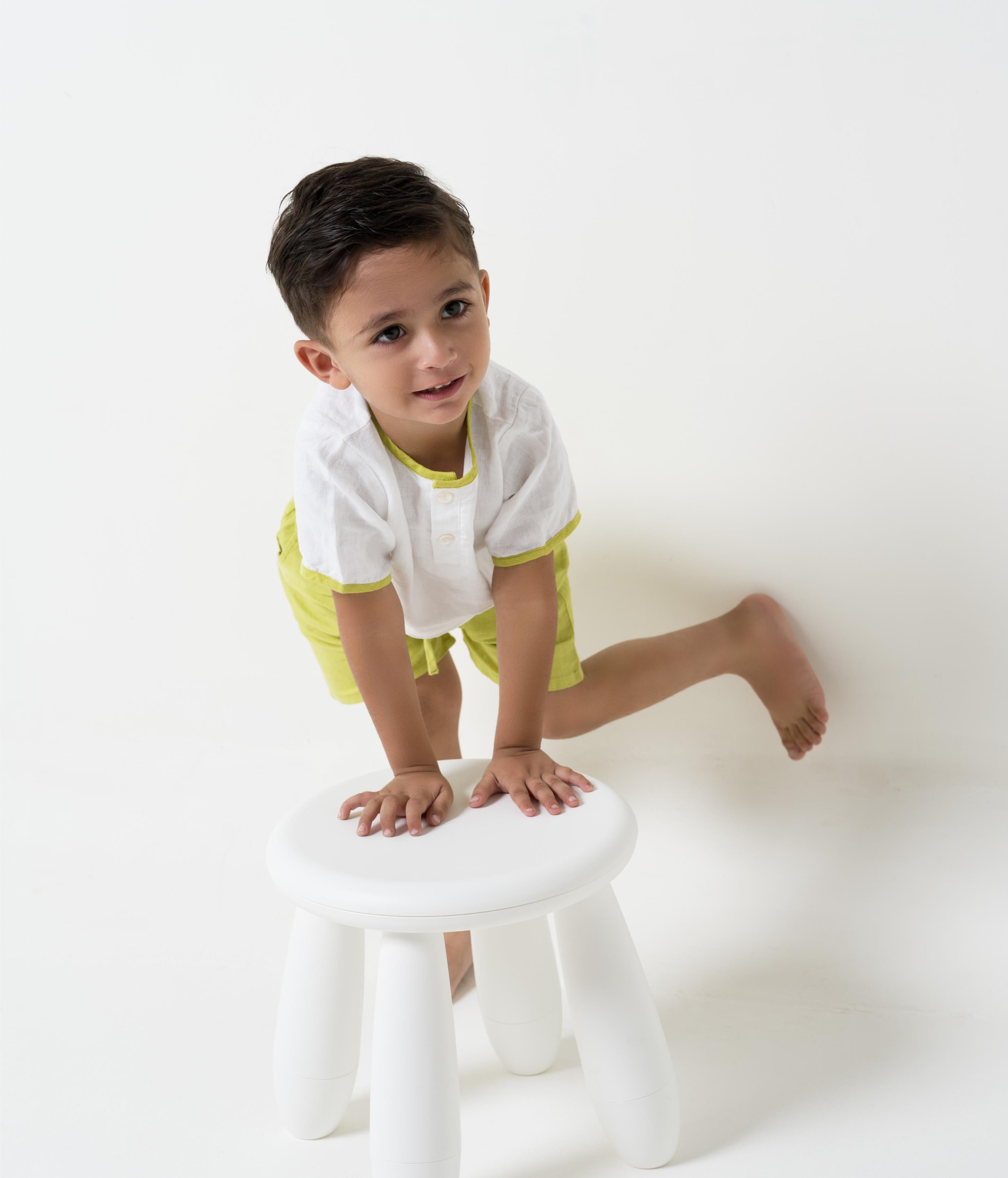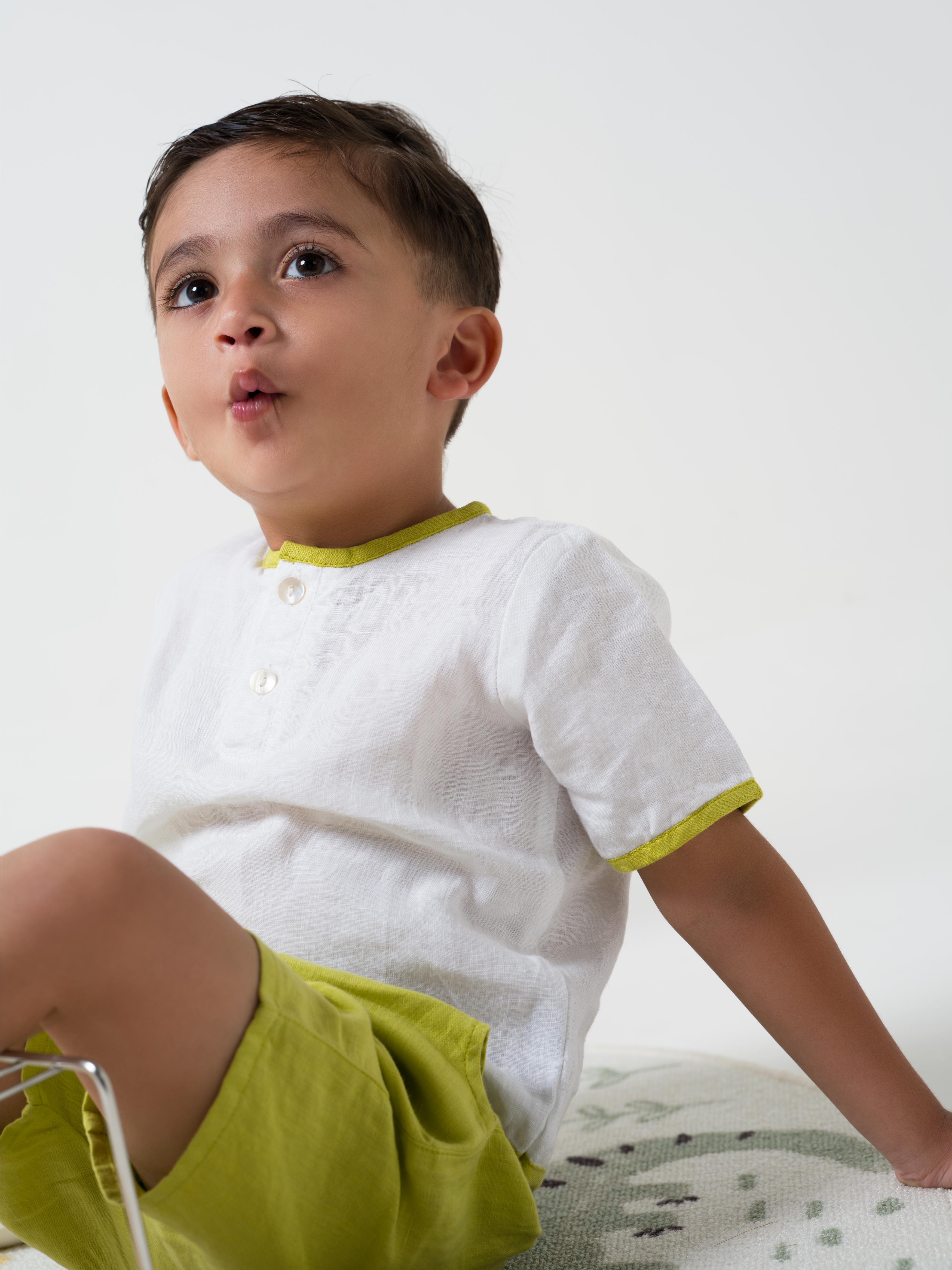 Drawstring Shorts & Shirt Set Shirt - White - Shorts- Lime