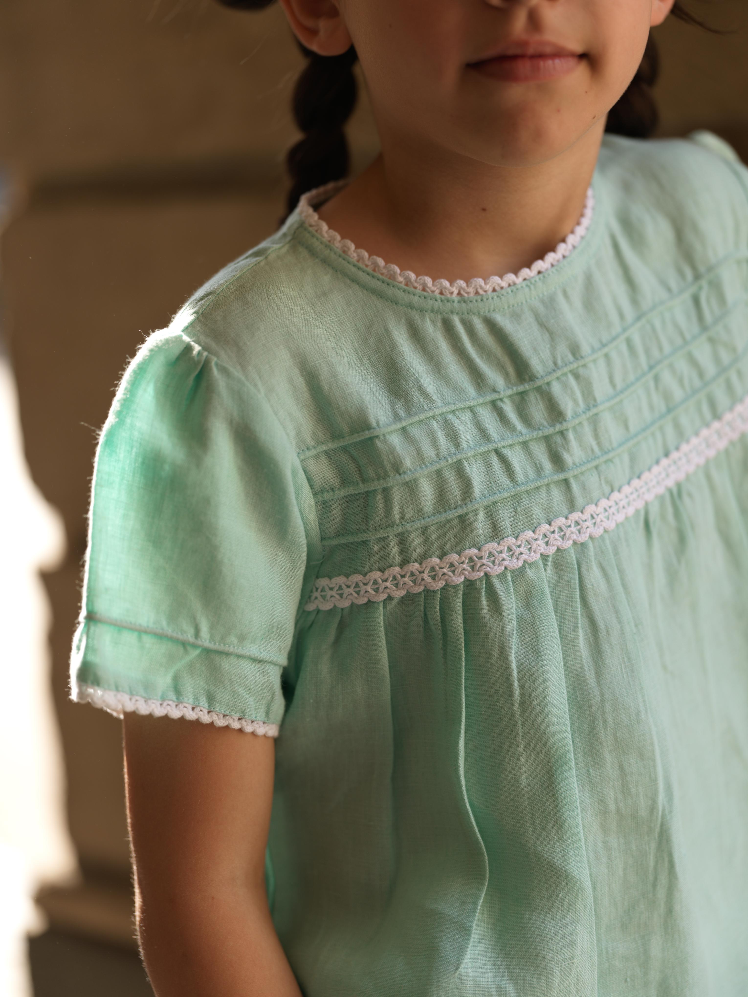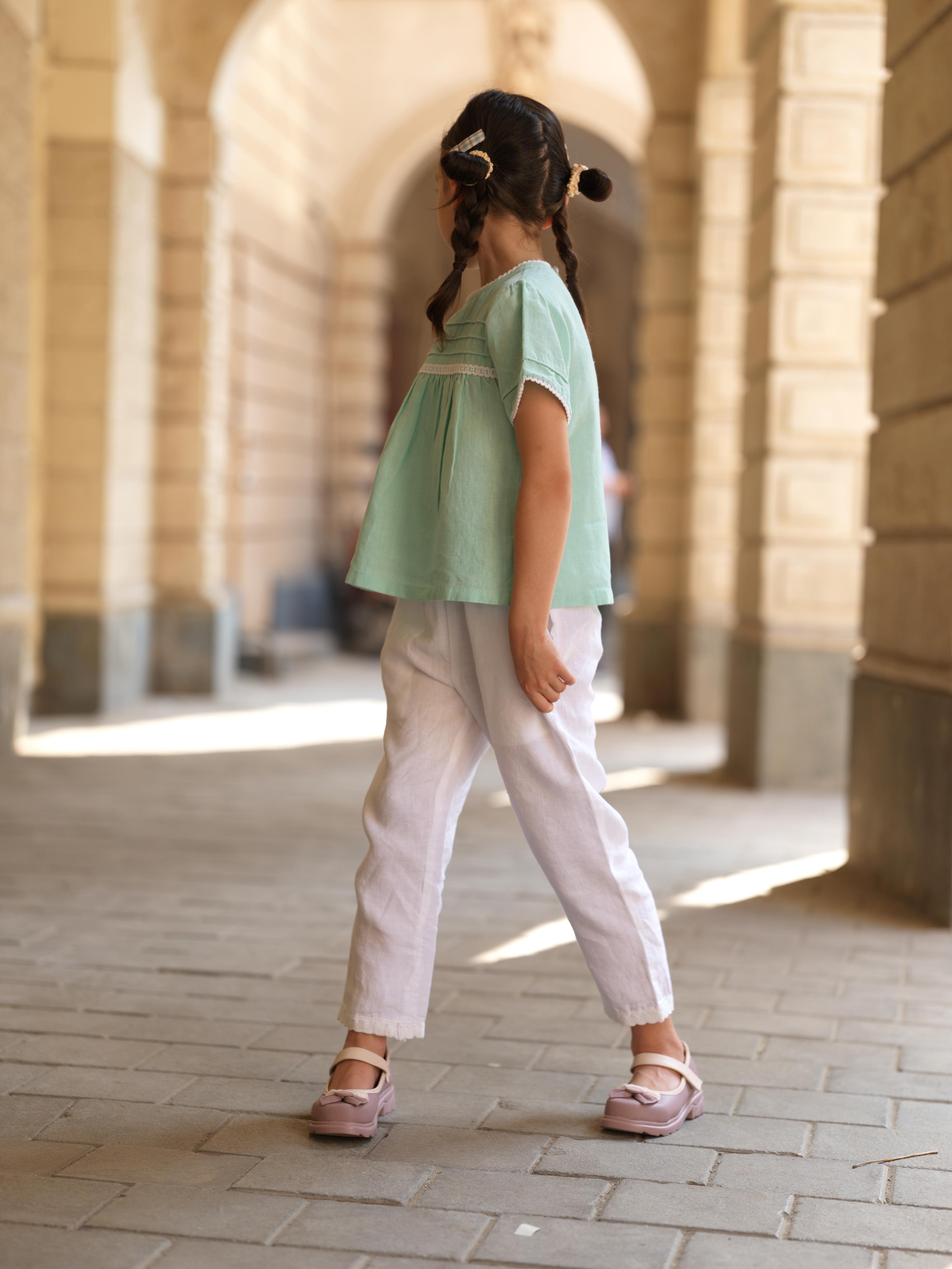 Girl Cord Piping Top & Trousers Co-ords set Celestial Green / White
