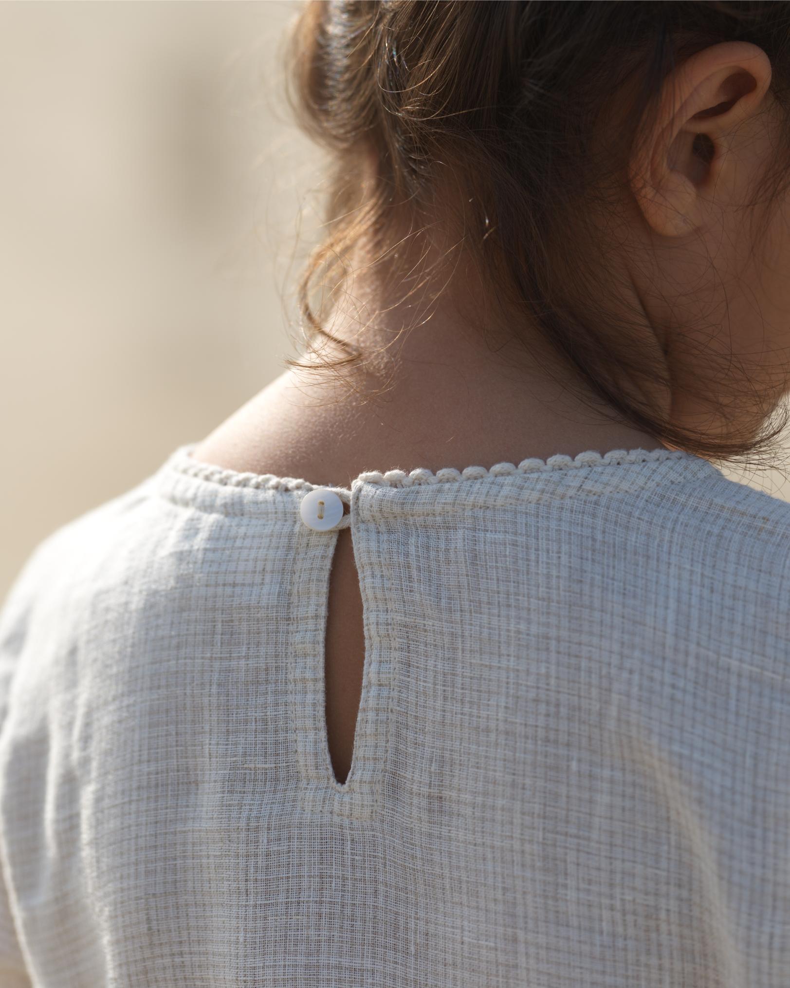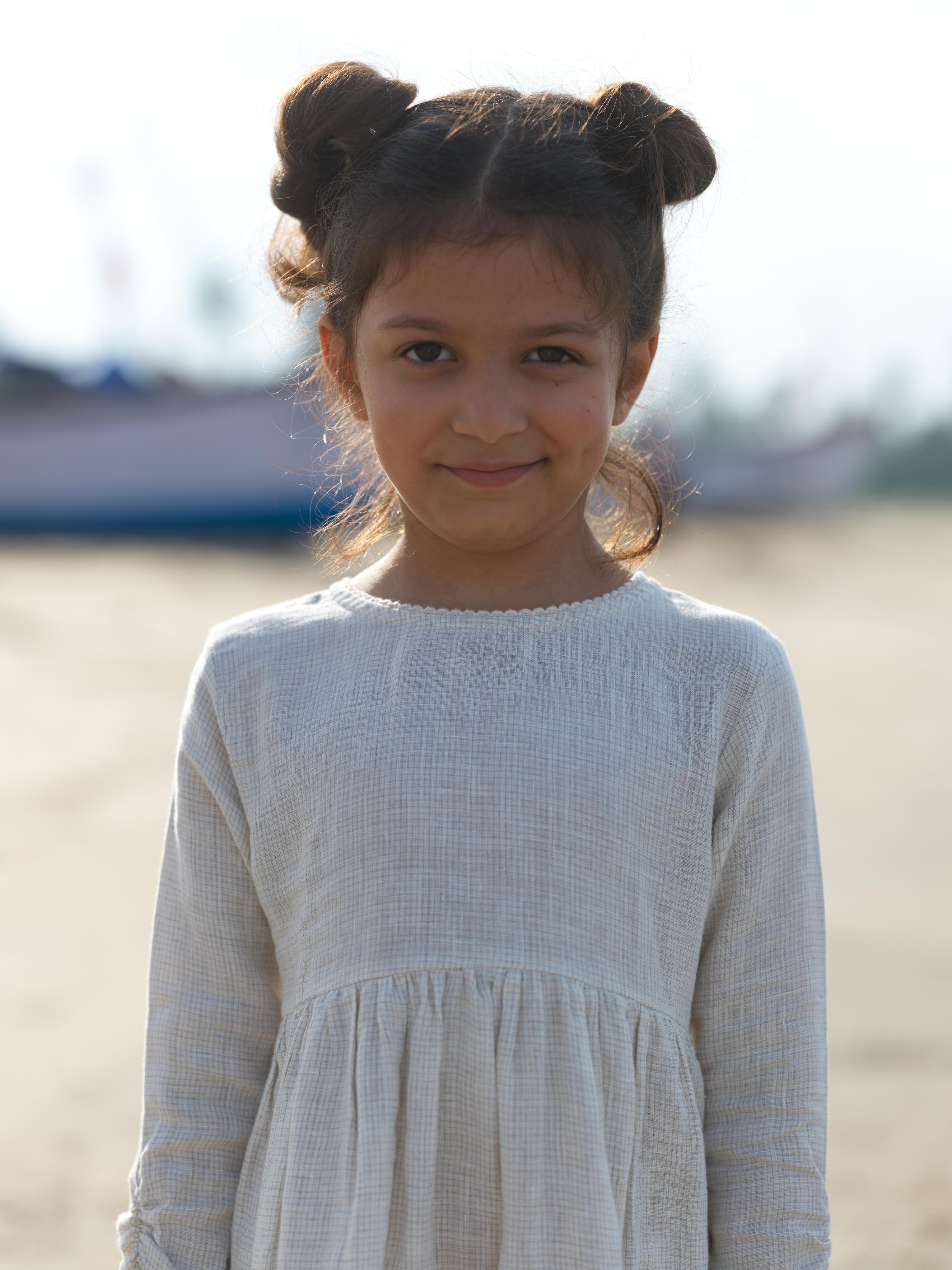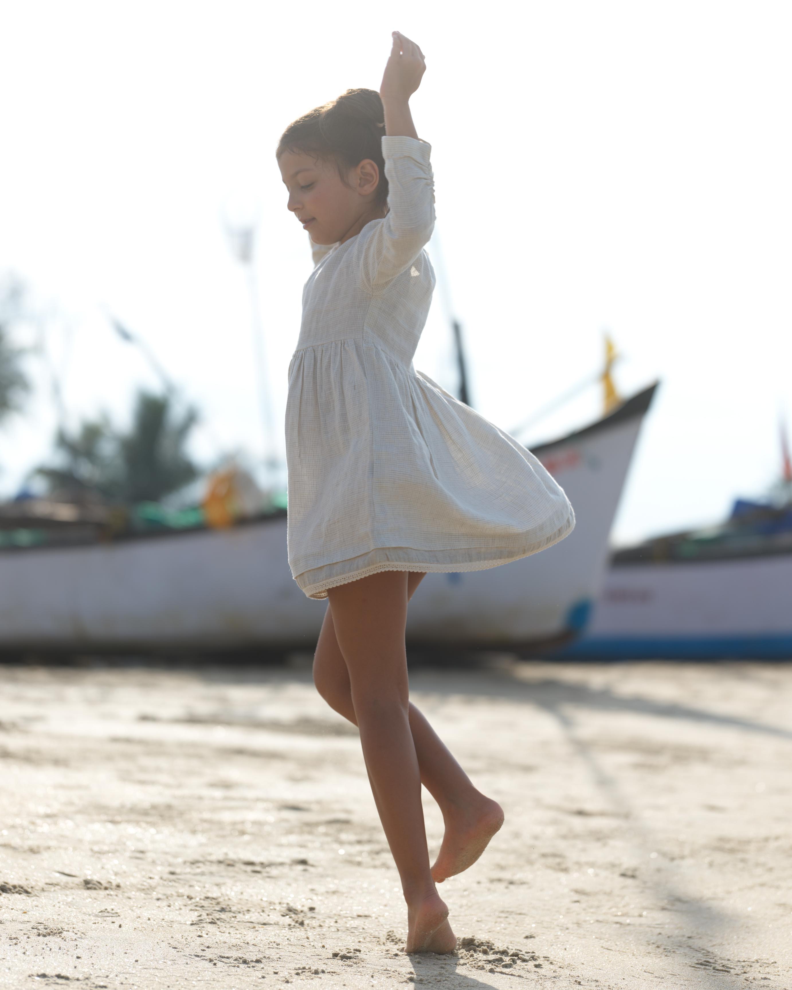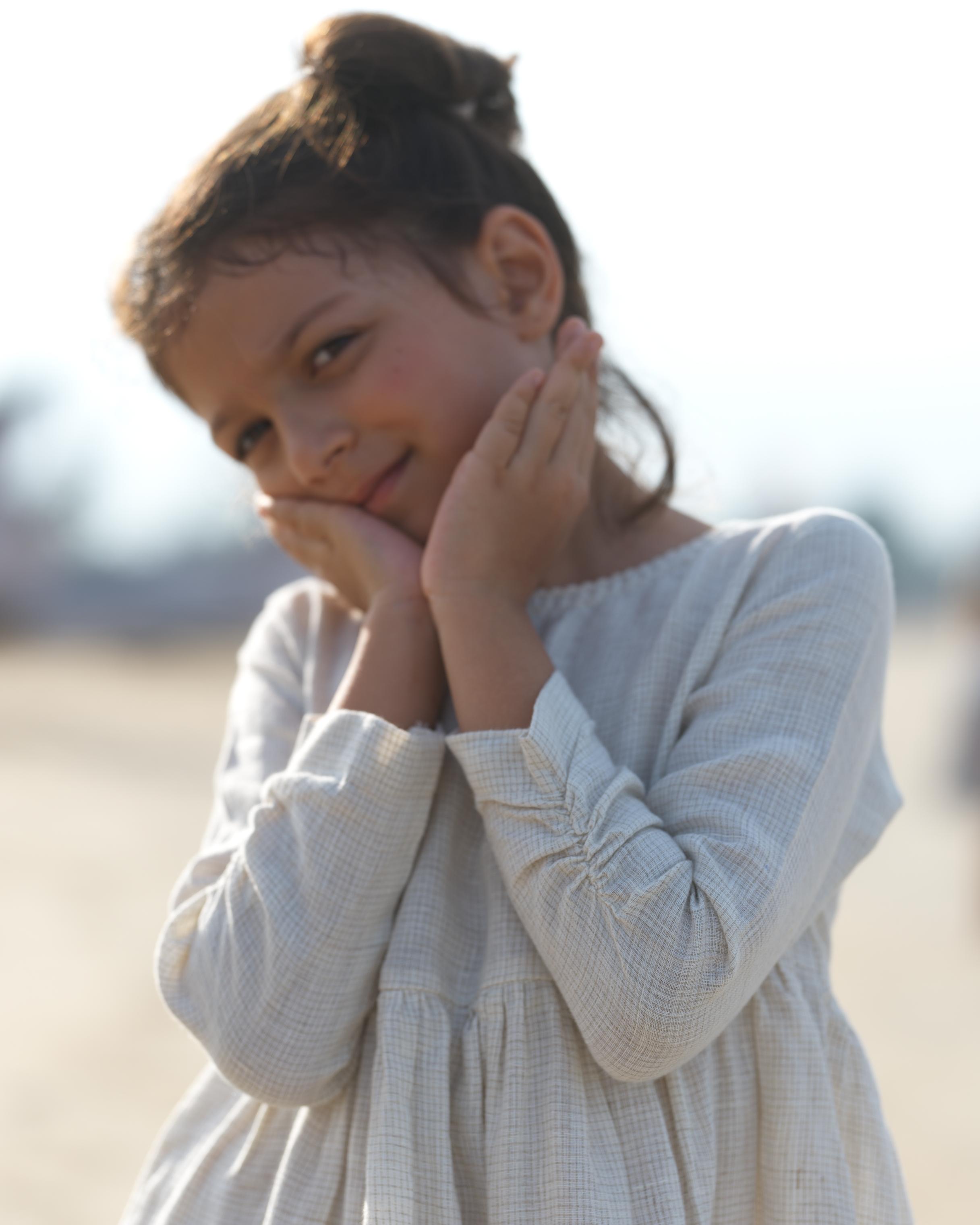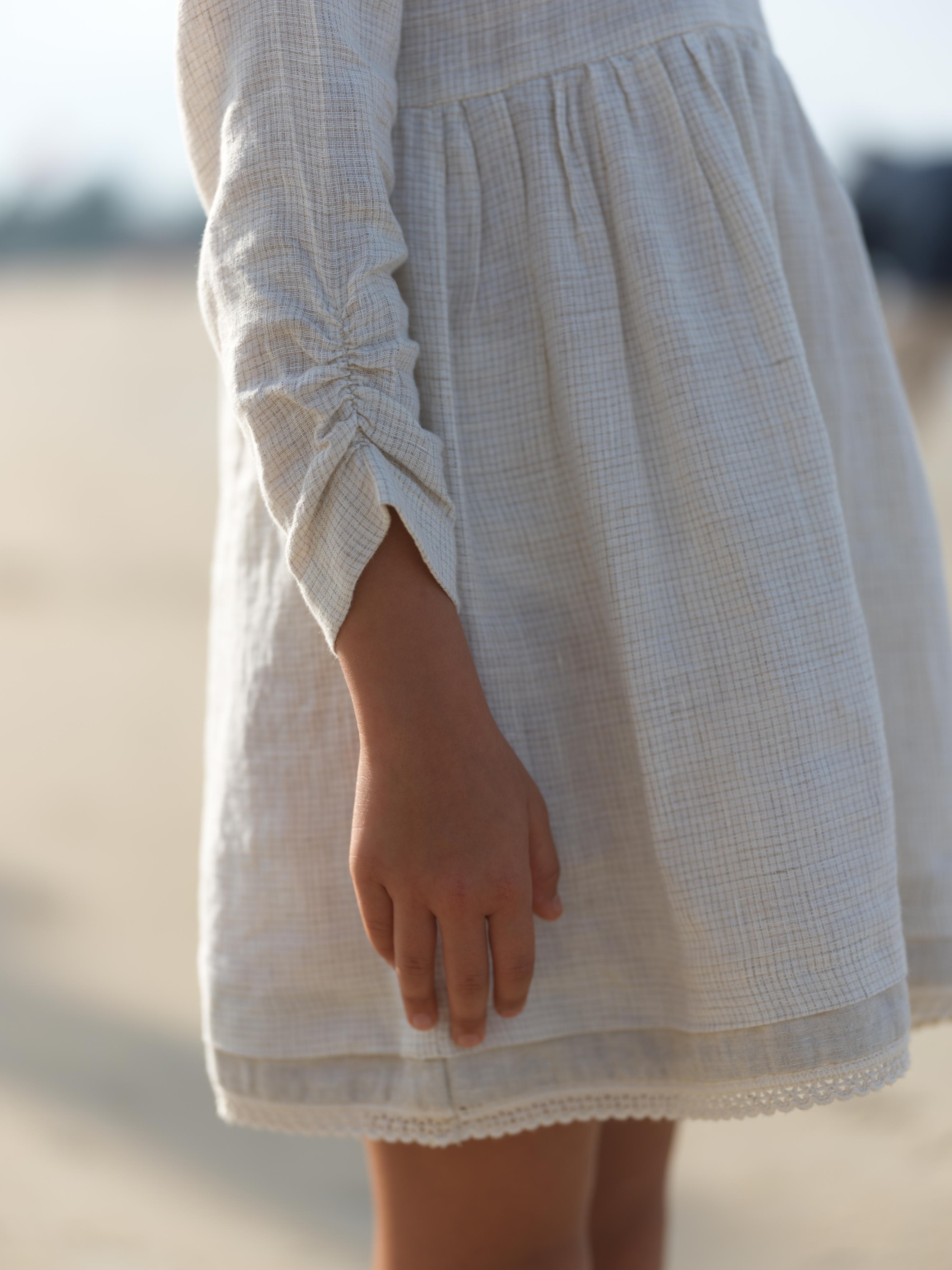 Girl Elastic Long Sleeve Dress Ivory Check