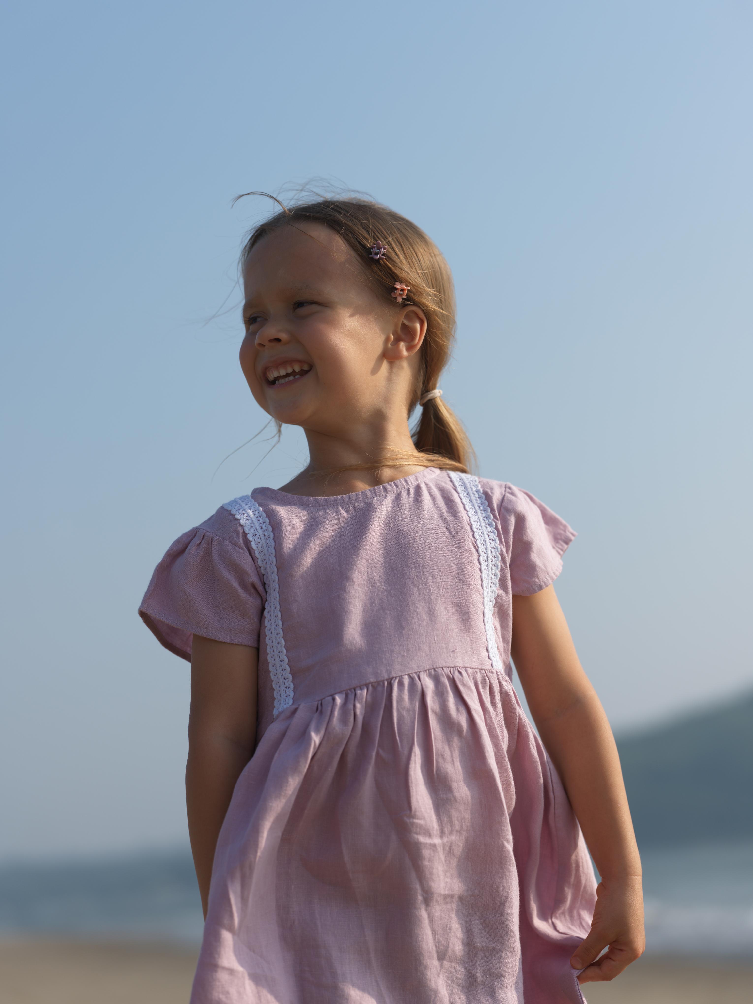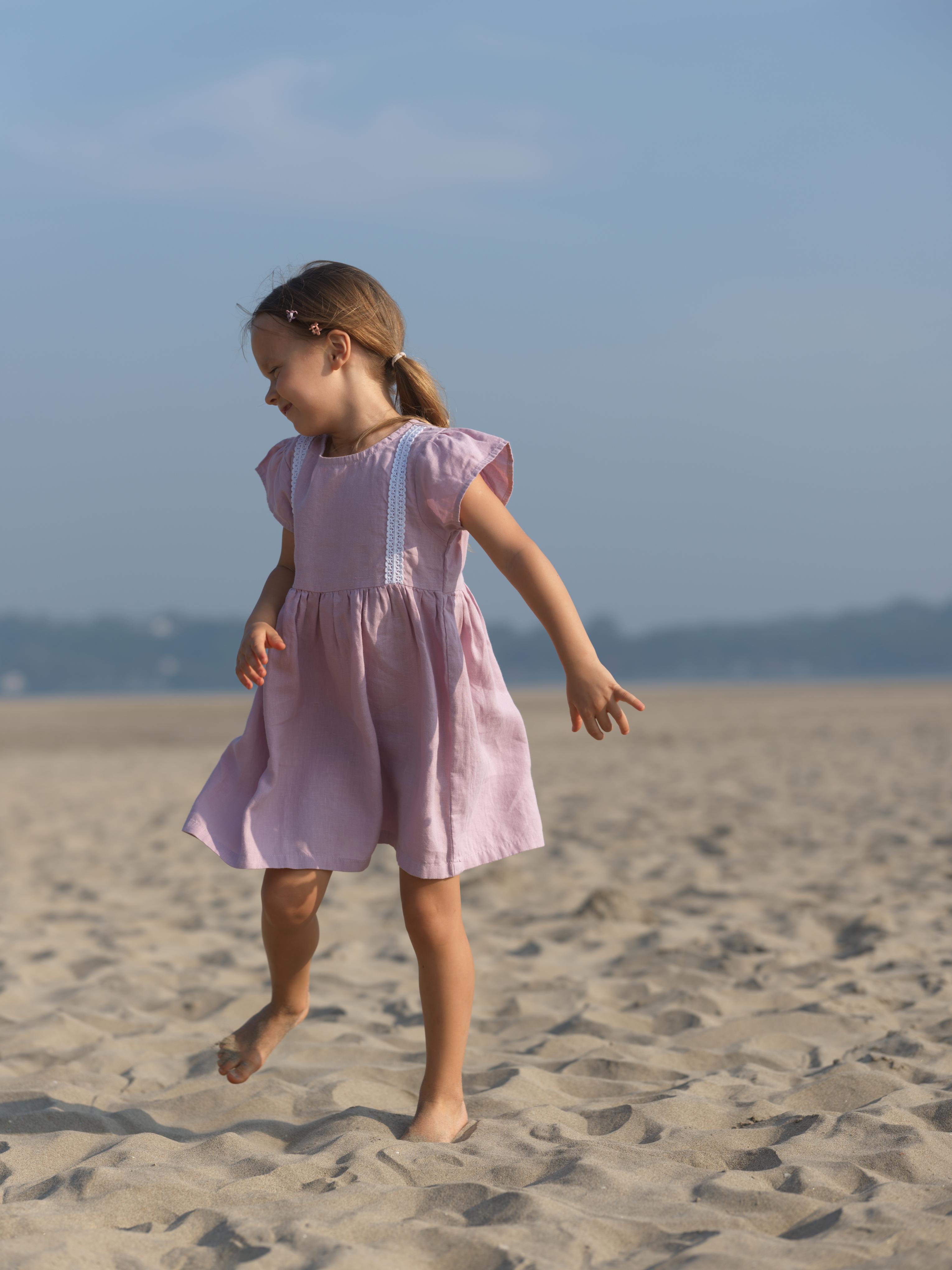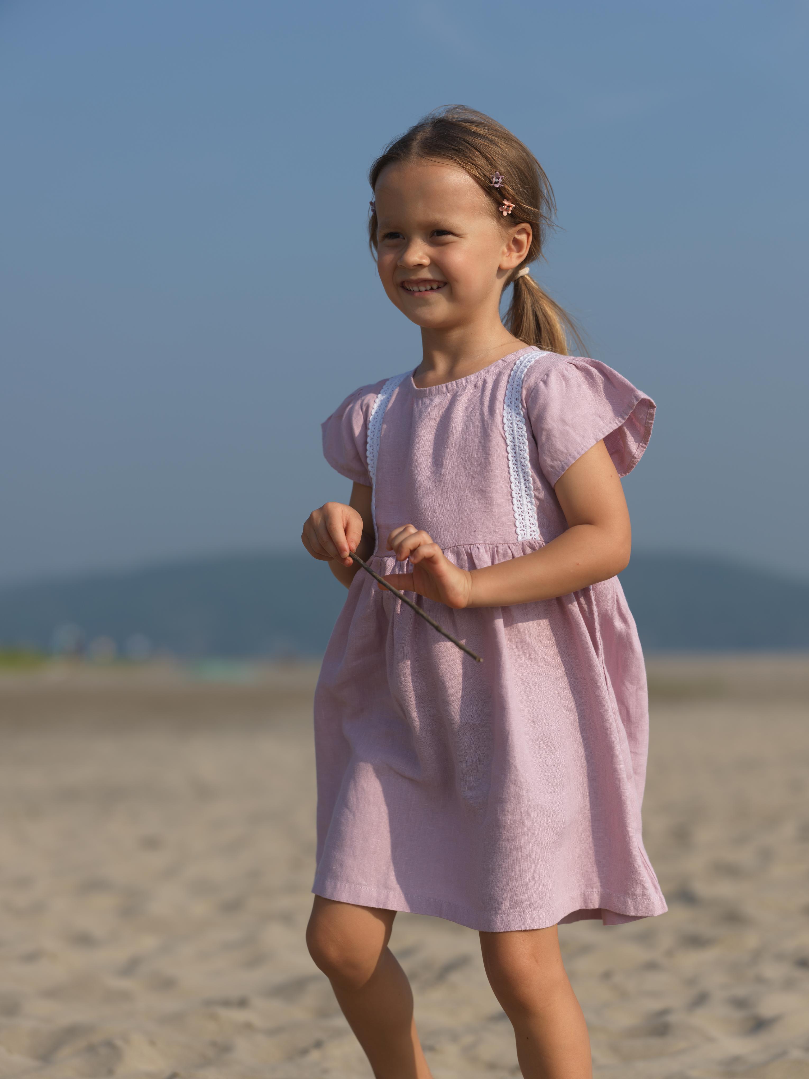 Girl Flared Sleeve Lace Detail Dress Cameo Pink