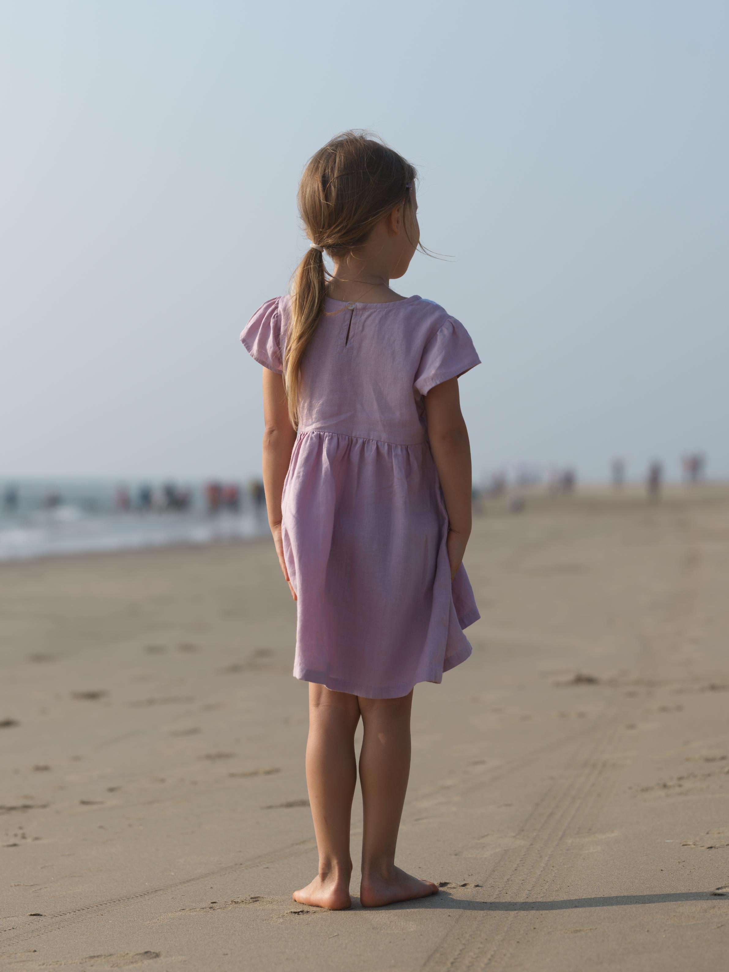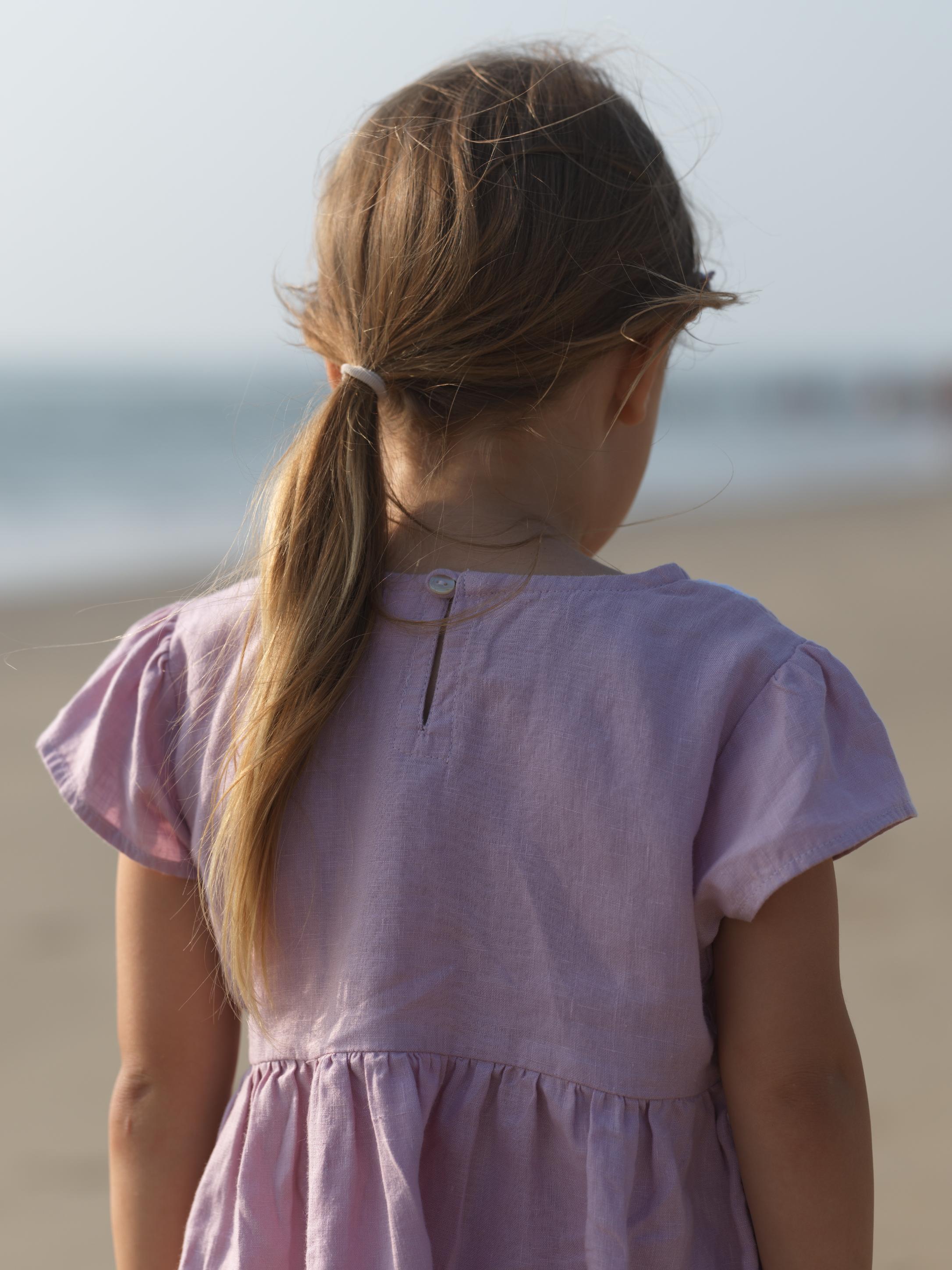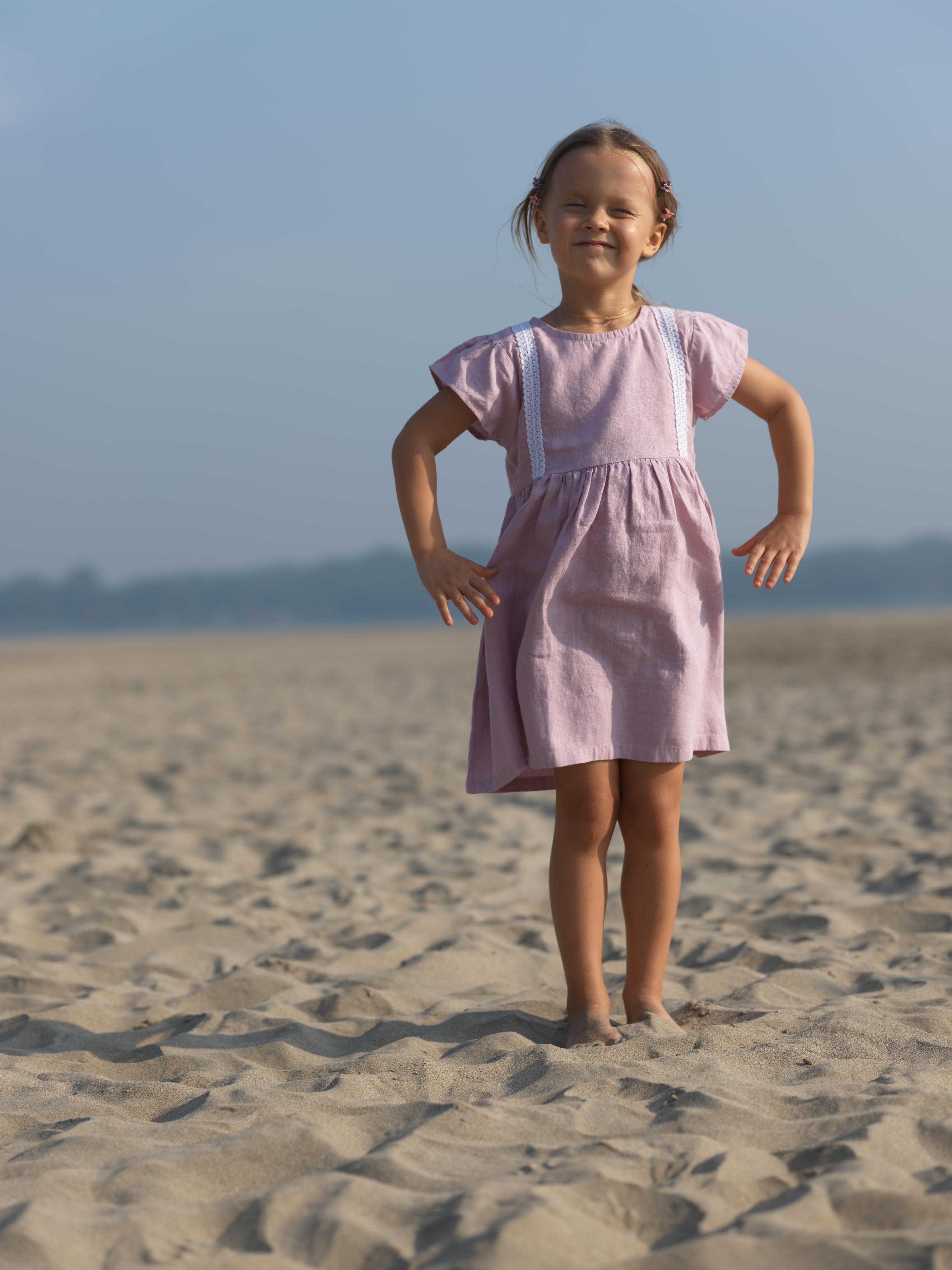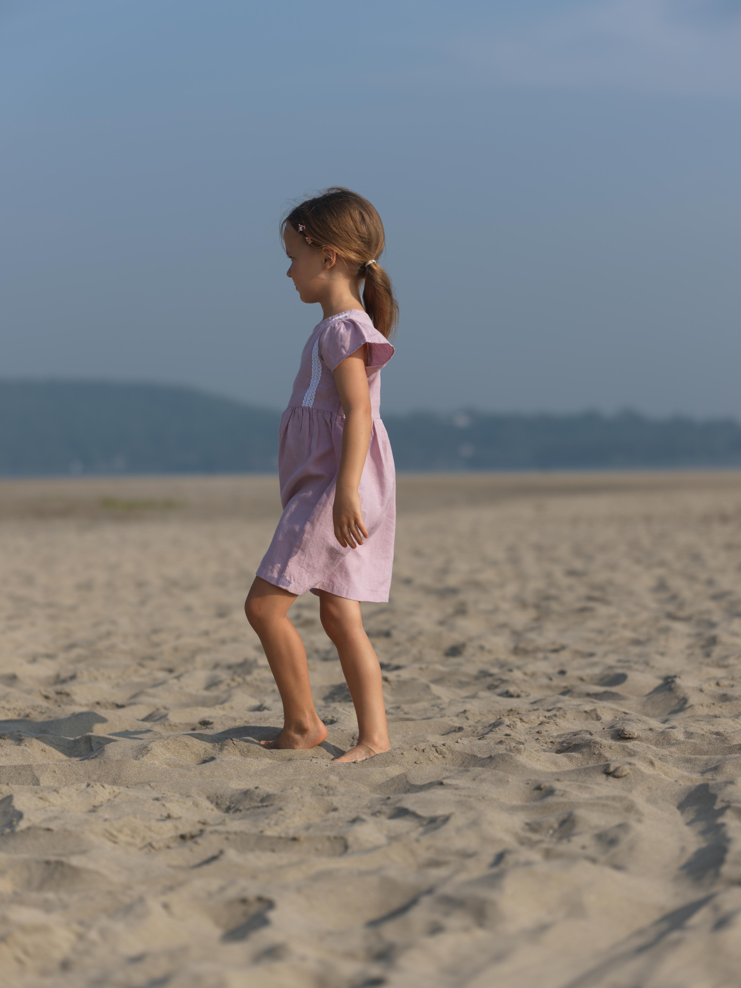 Girl Flared Sleeve Lace Detail Dress Cameo Pink