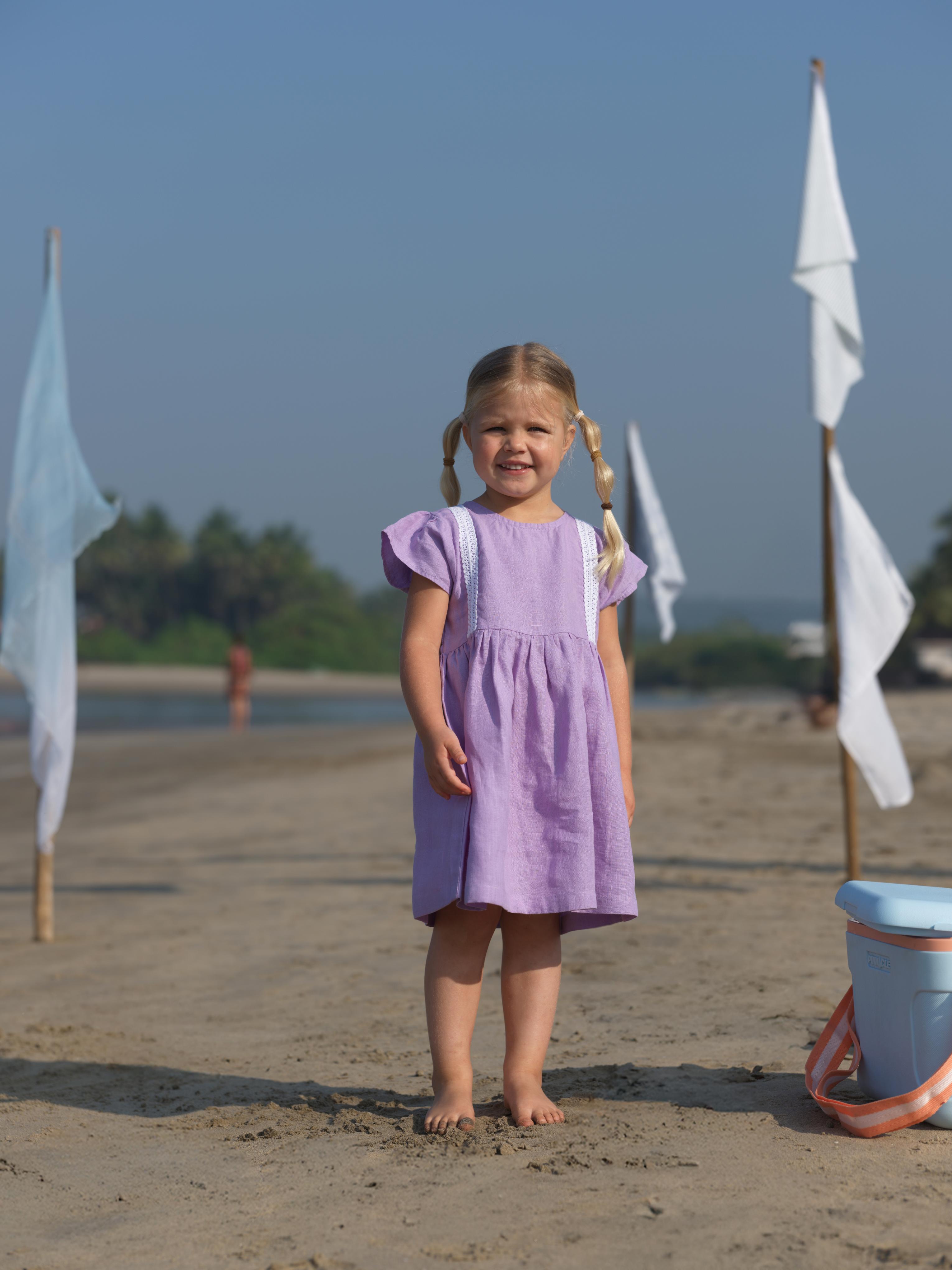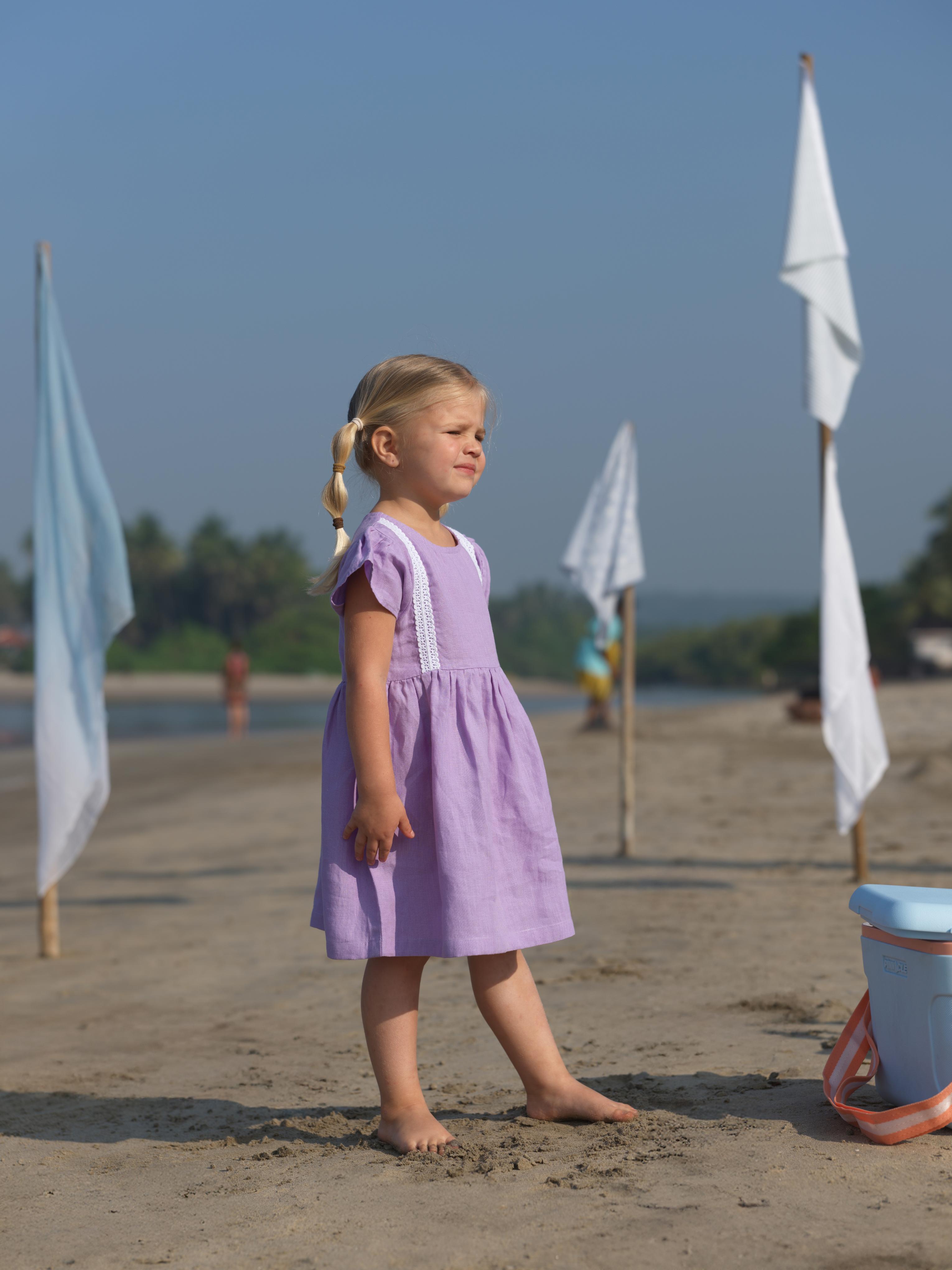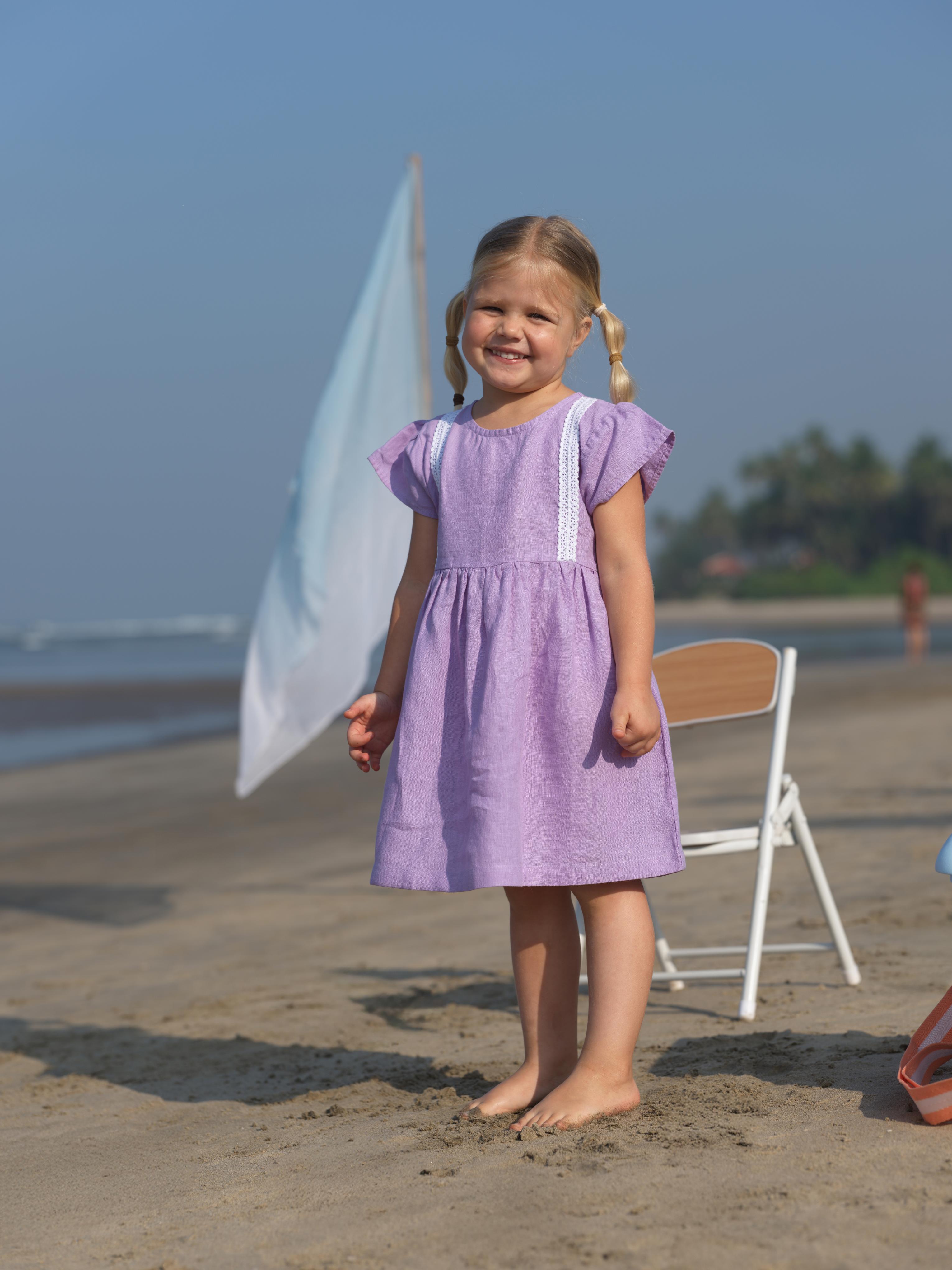 Girl Flared Sleeve Lace Detail Dress Lavender