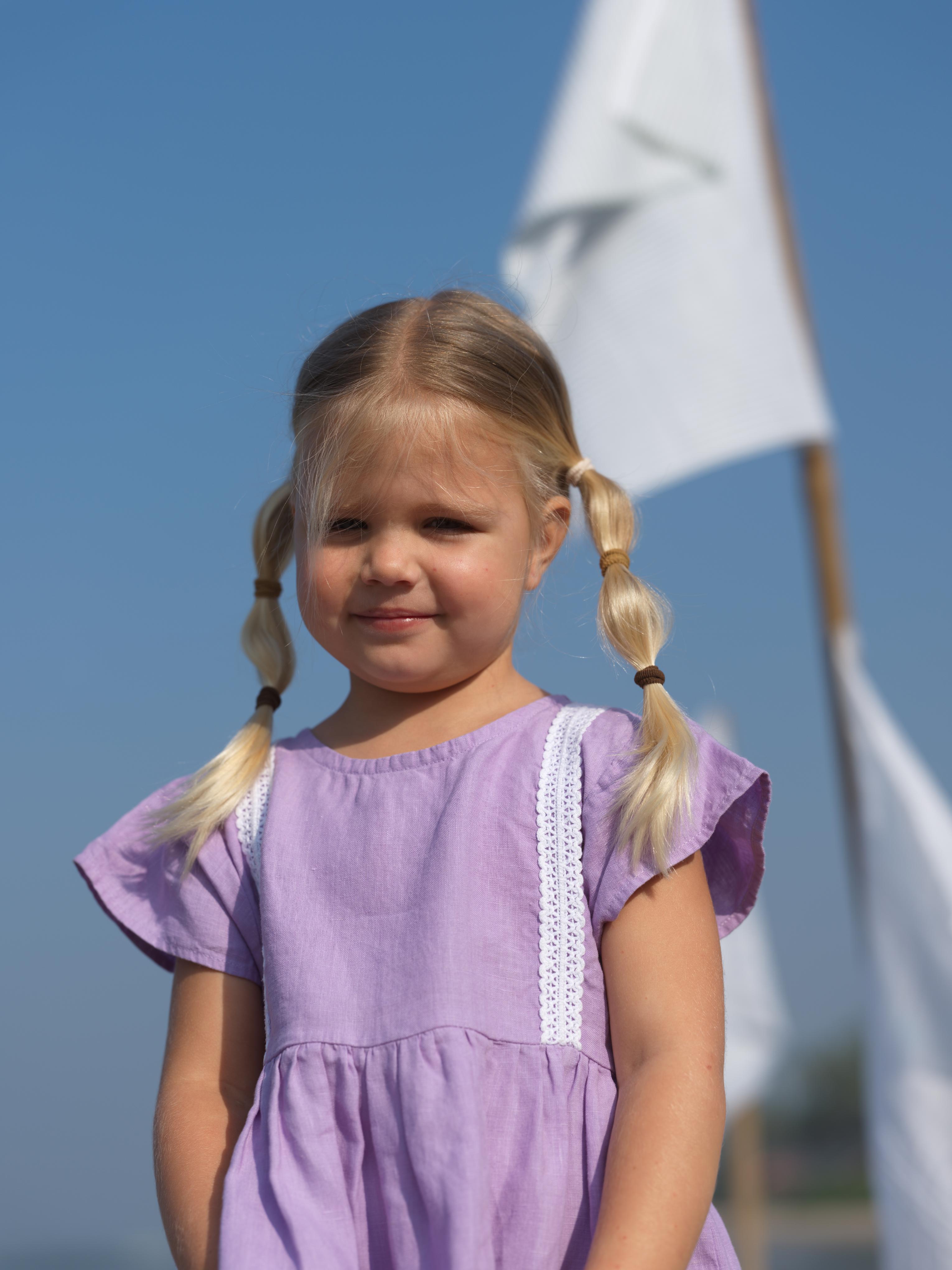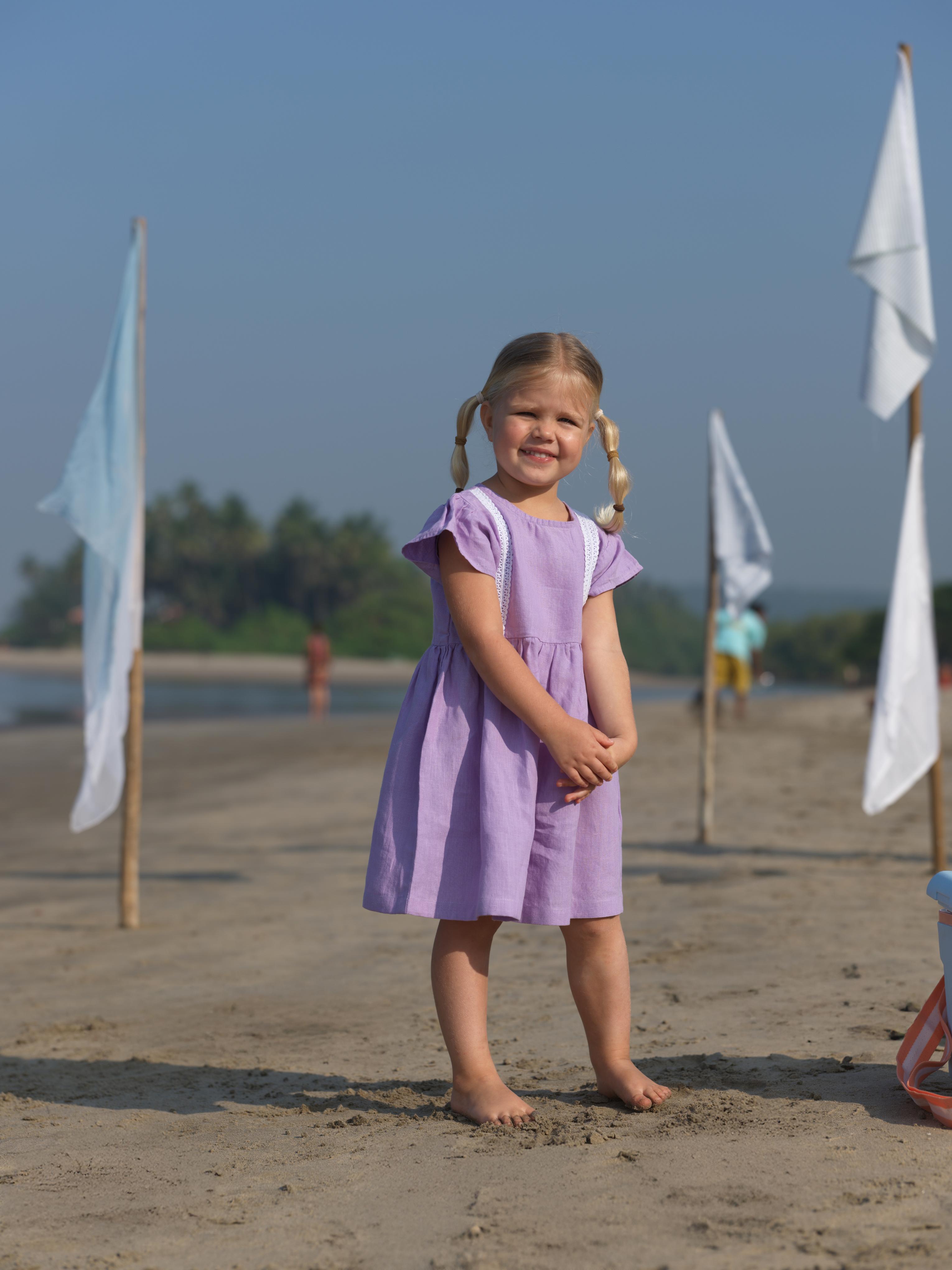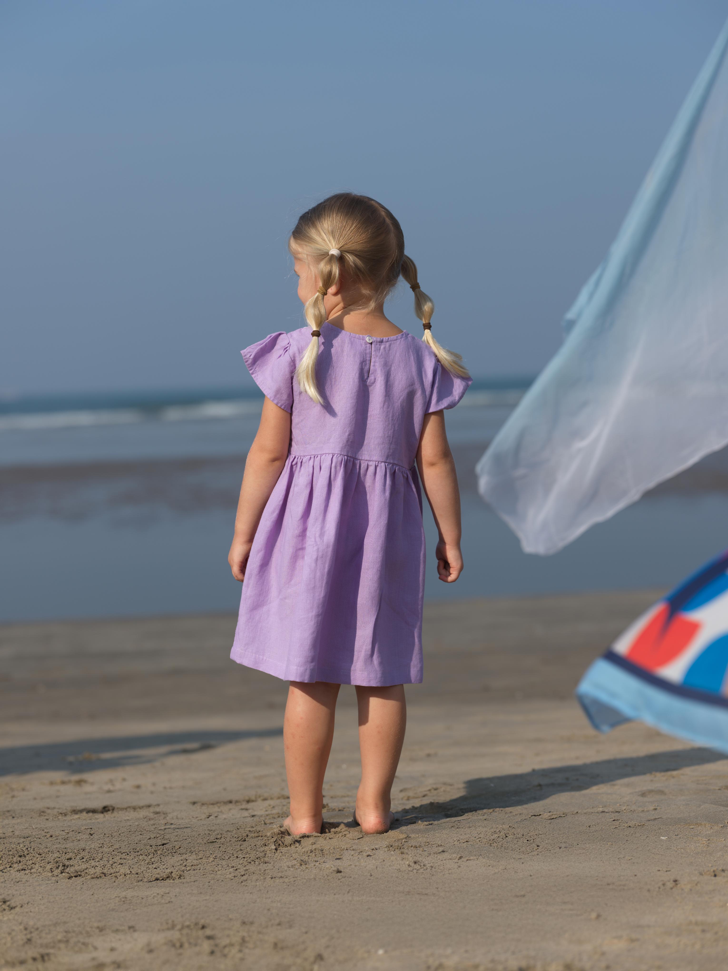 Girl Flared Sleeve Lace Detail Dress Lavender