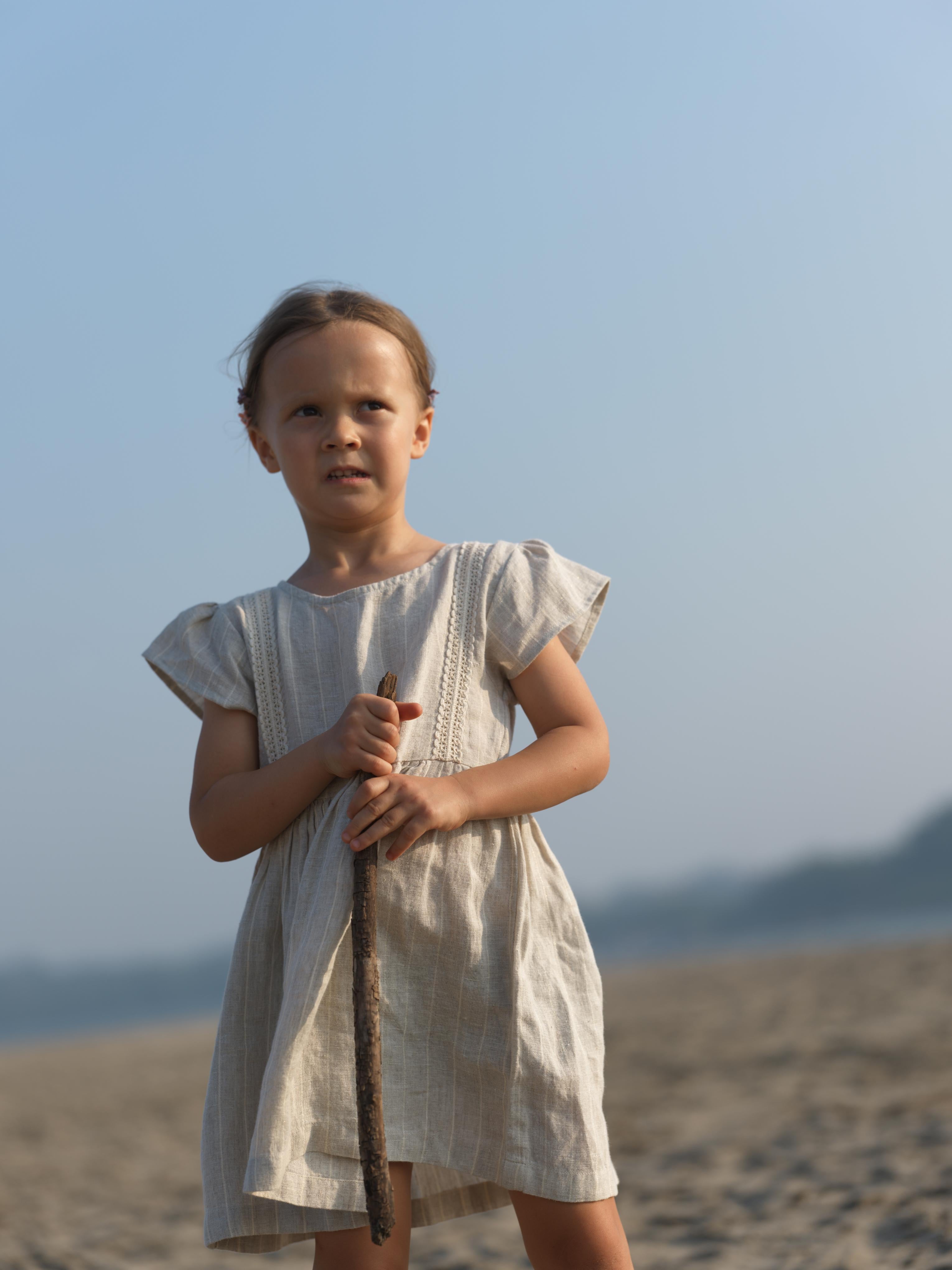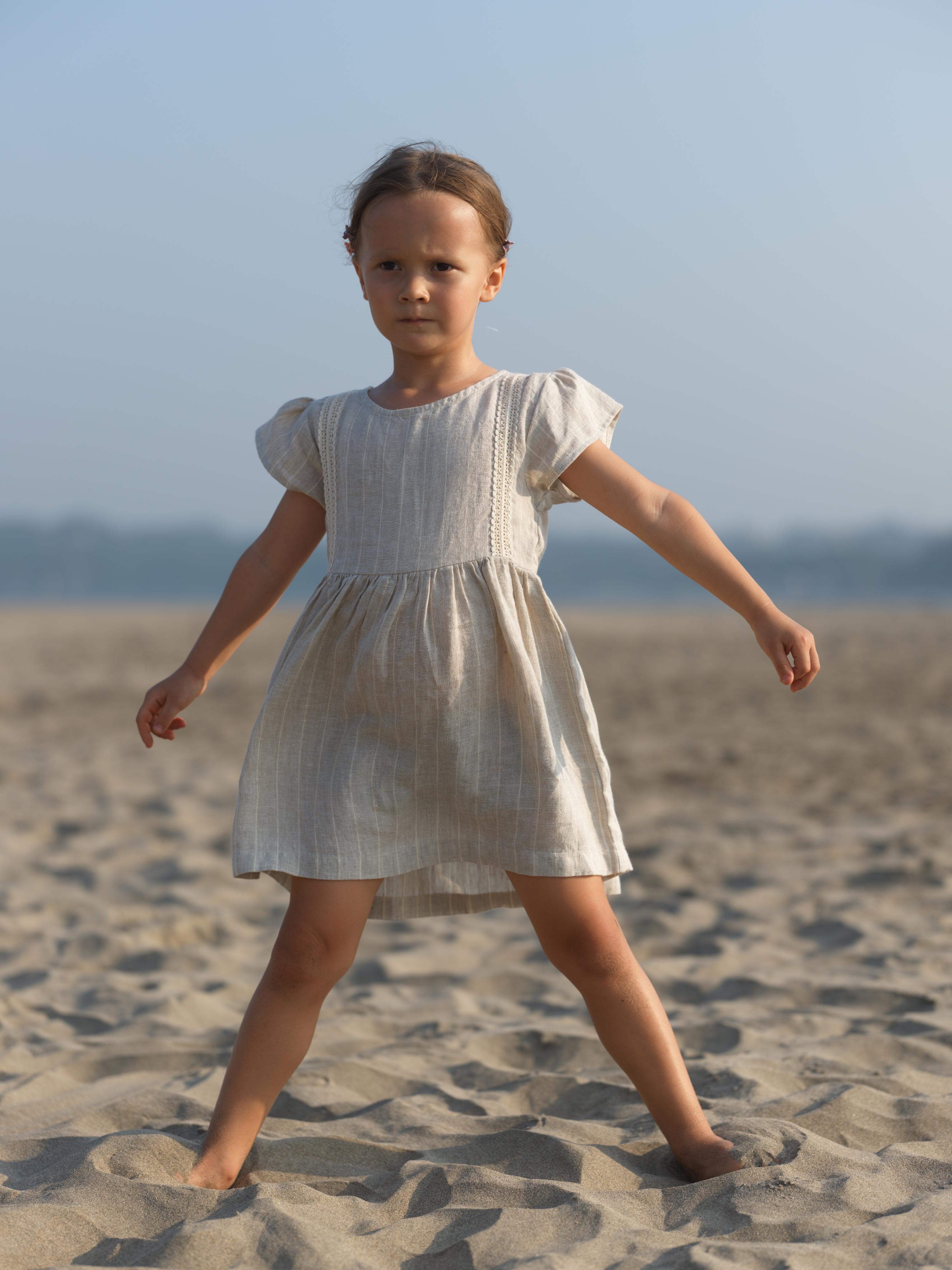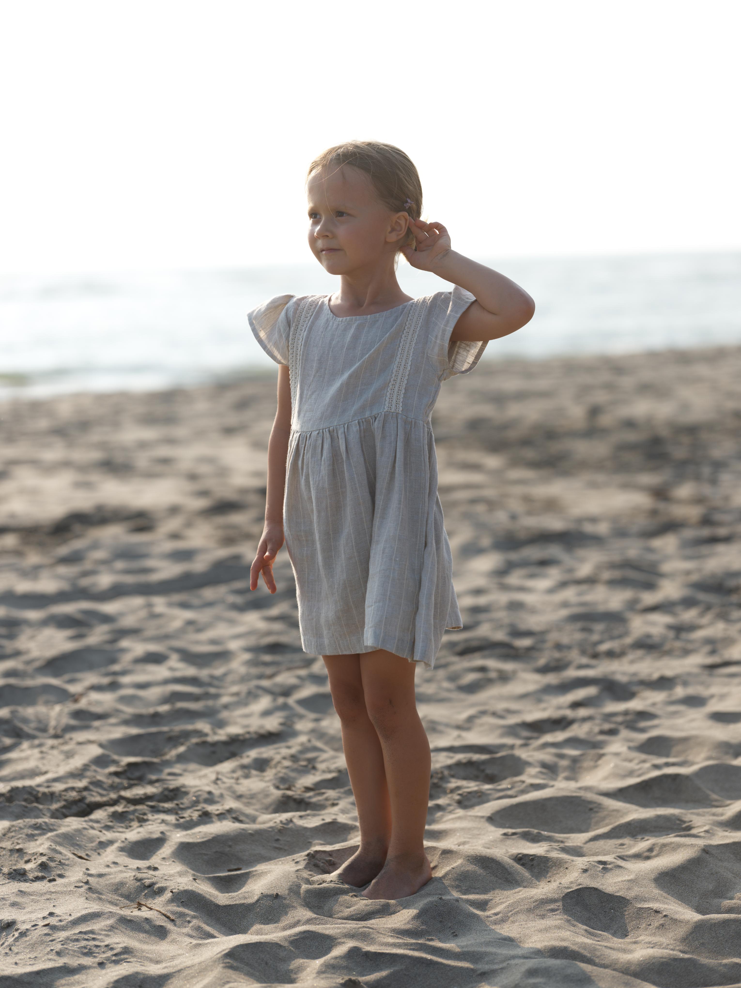 Girl Flared Sleeve Lace Detail Dress Lurex