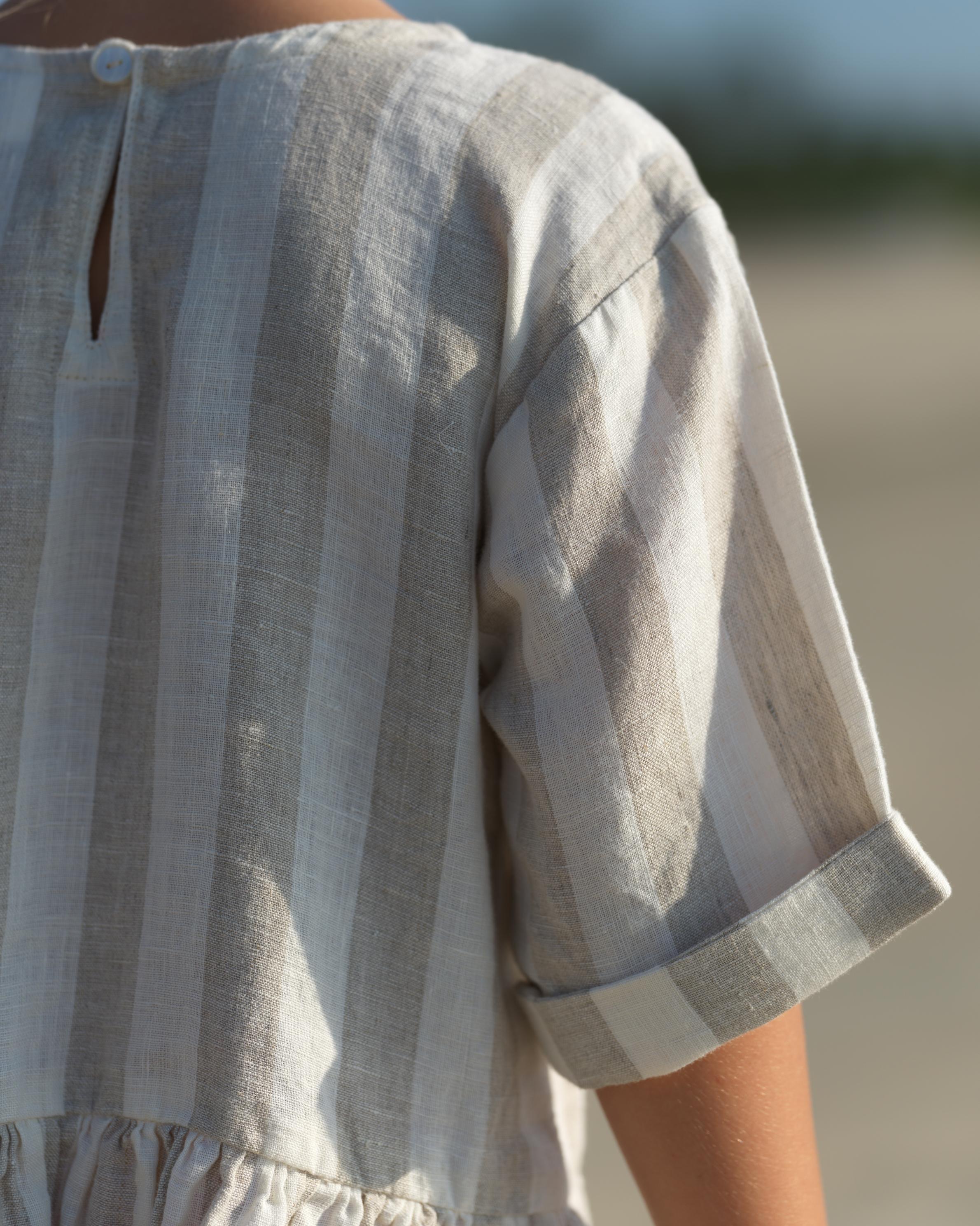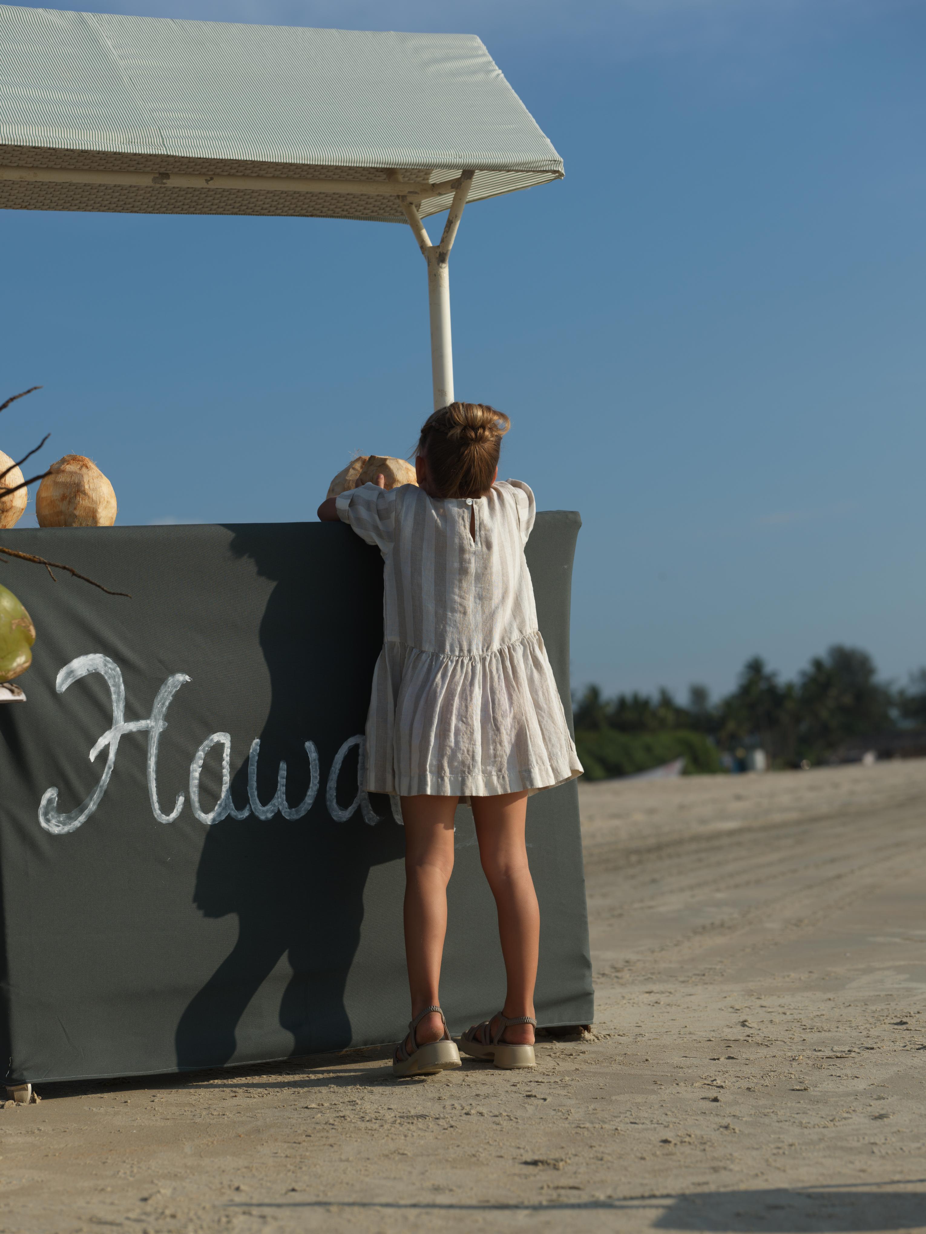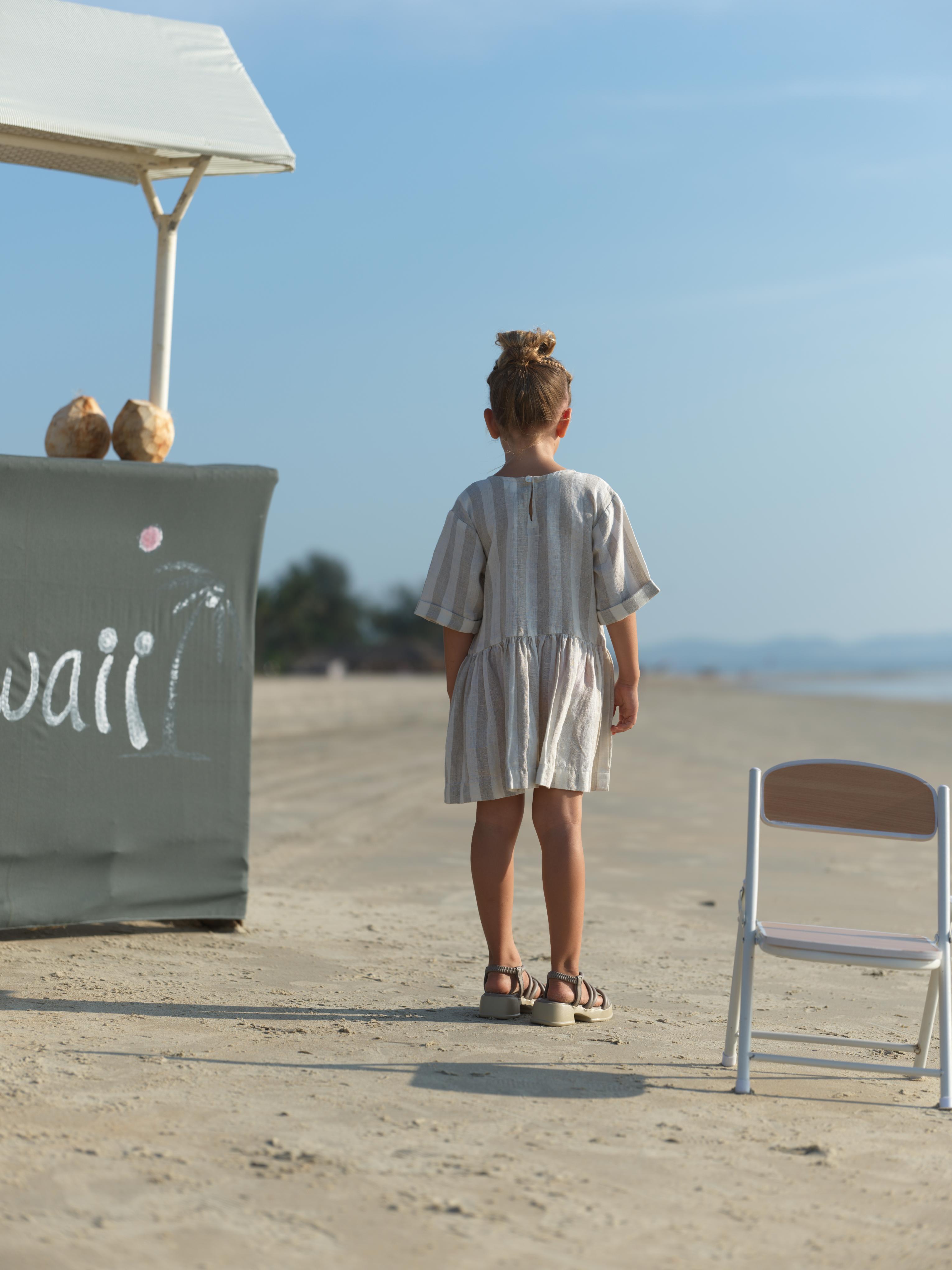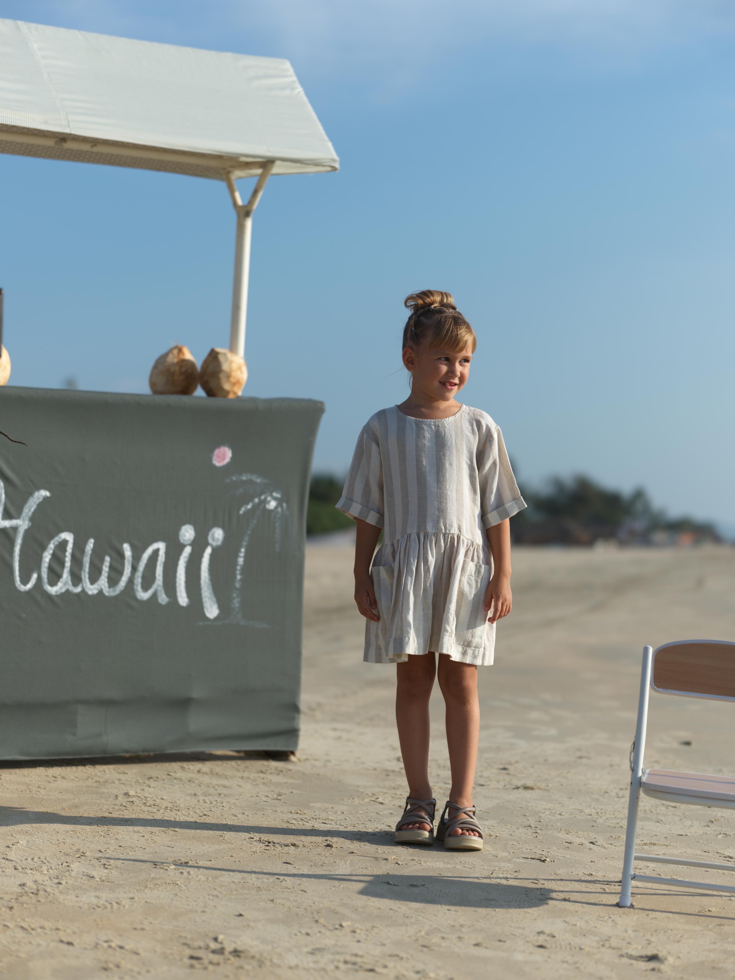Girl Patch Pocket Drop Shoulder Dress Beige Cabana Stripe
