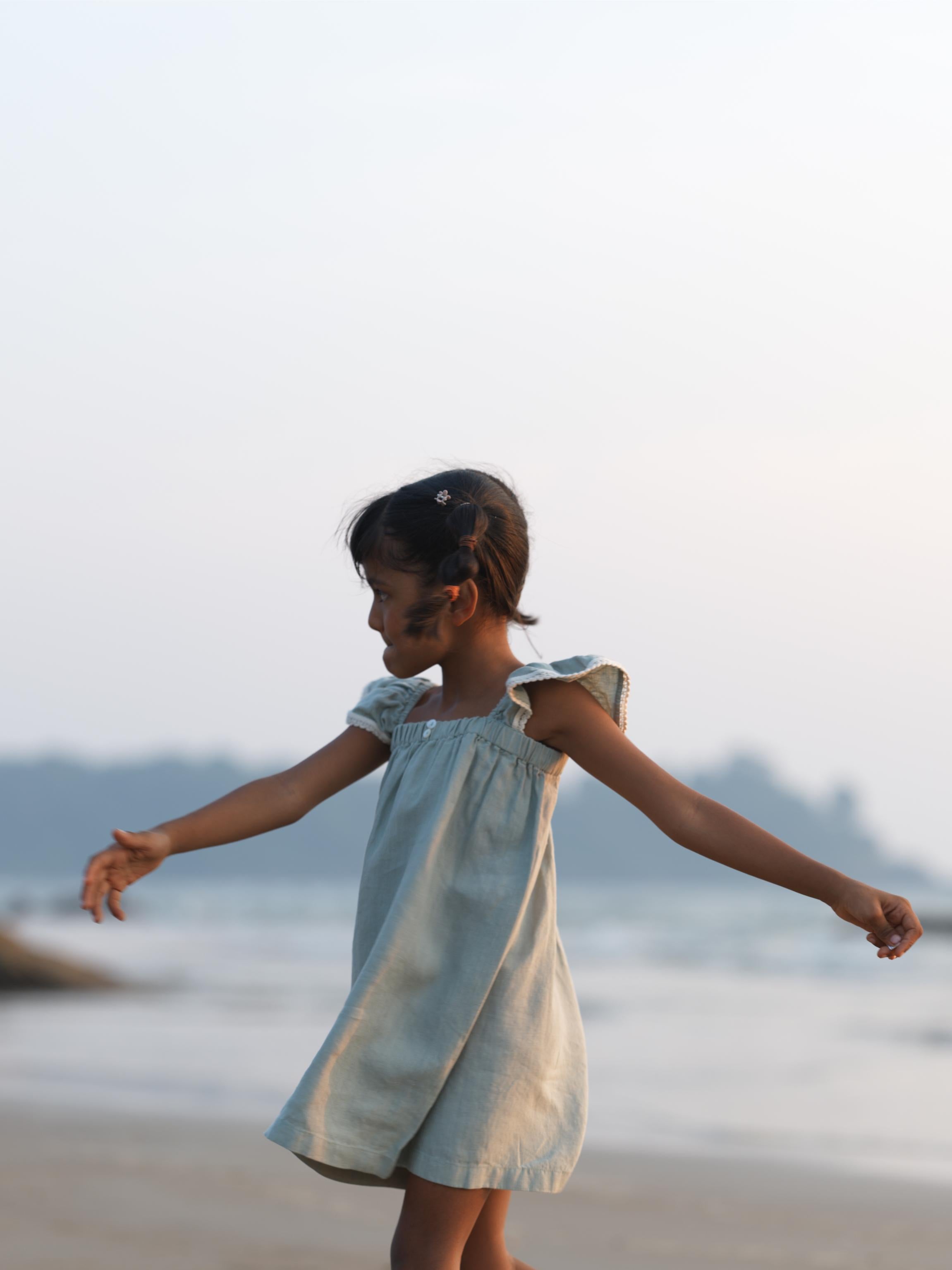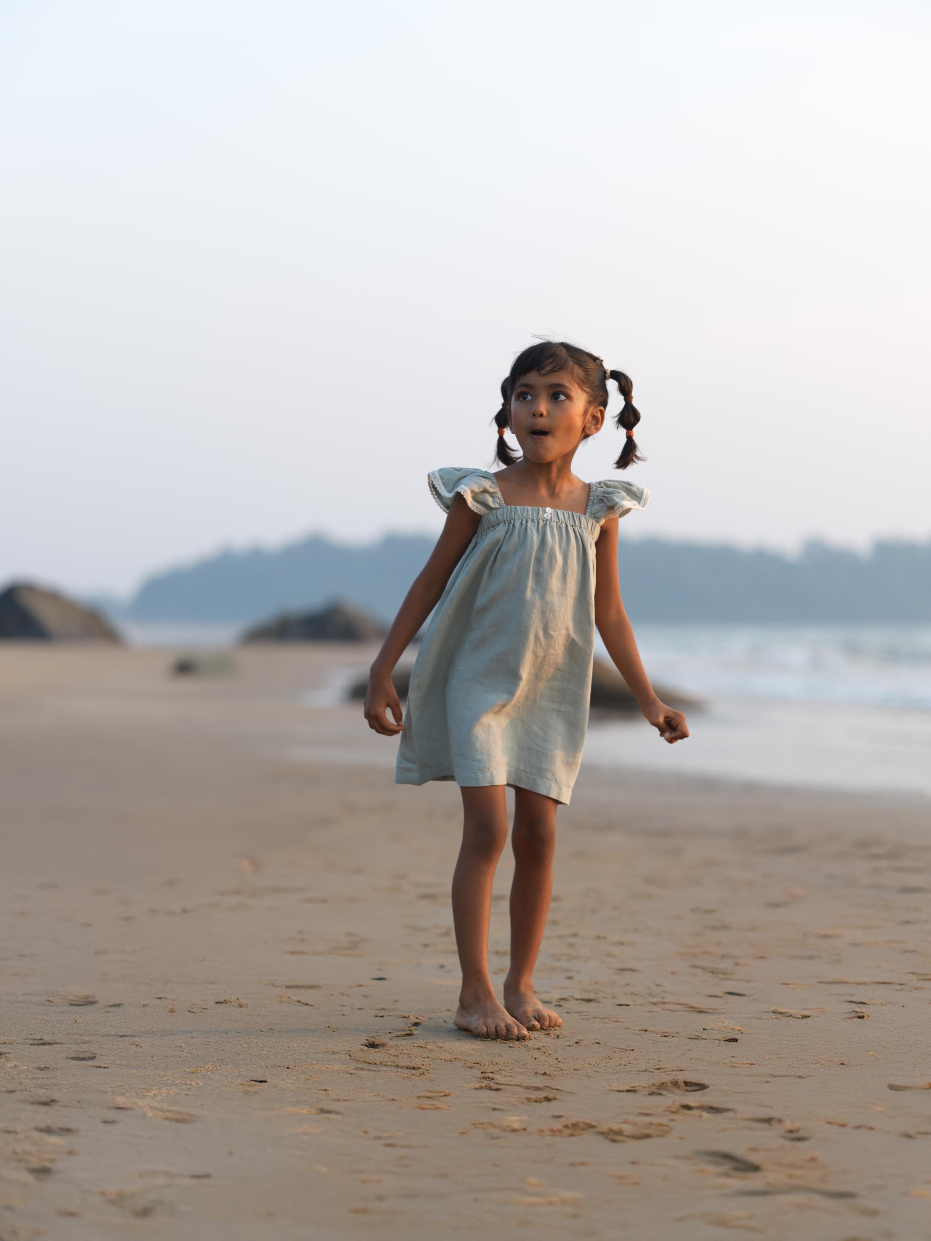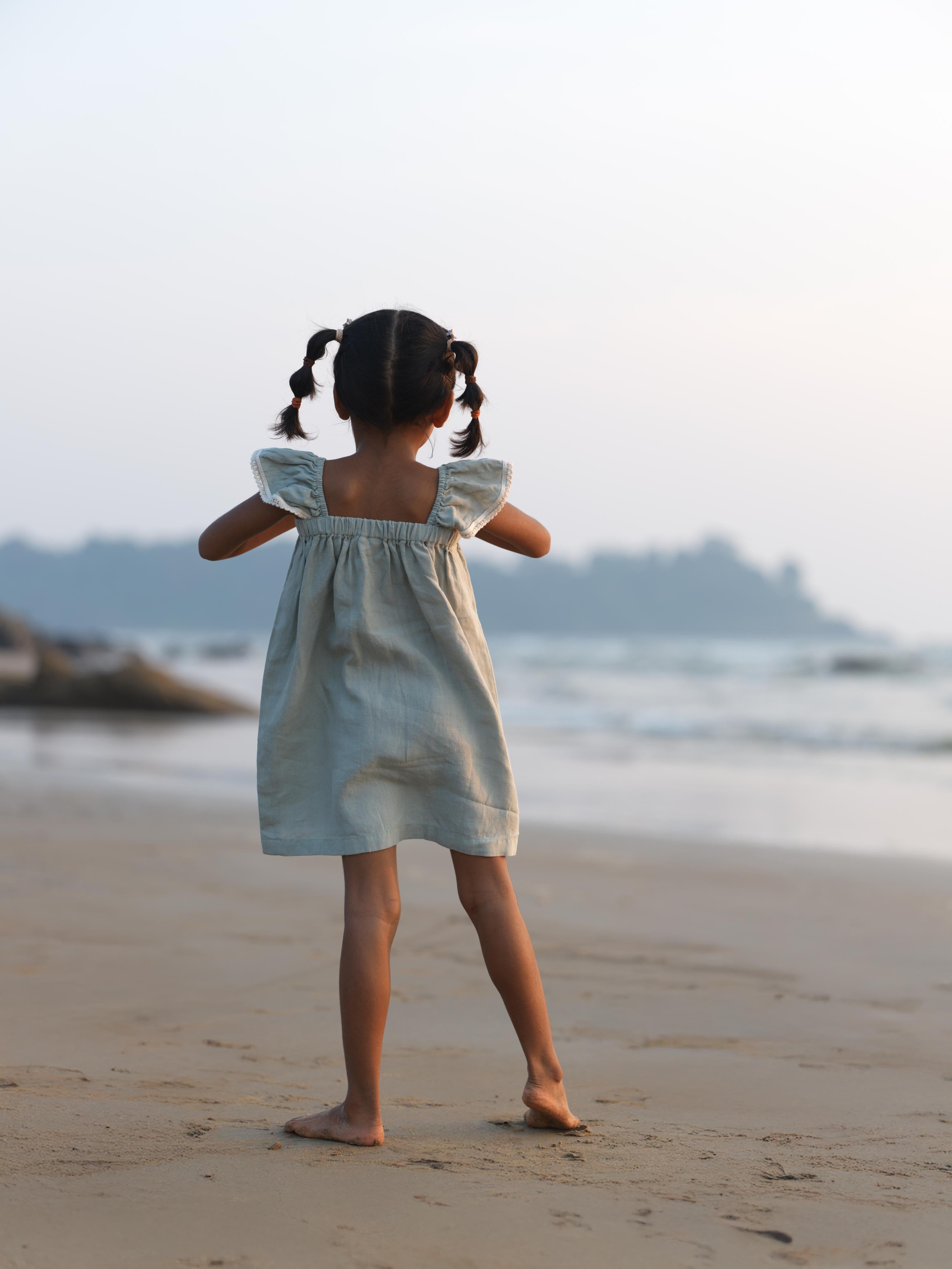 Girls Elasticated Flared Sleeve Dress Mint Green