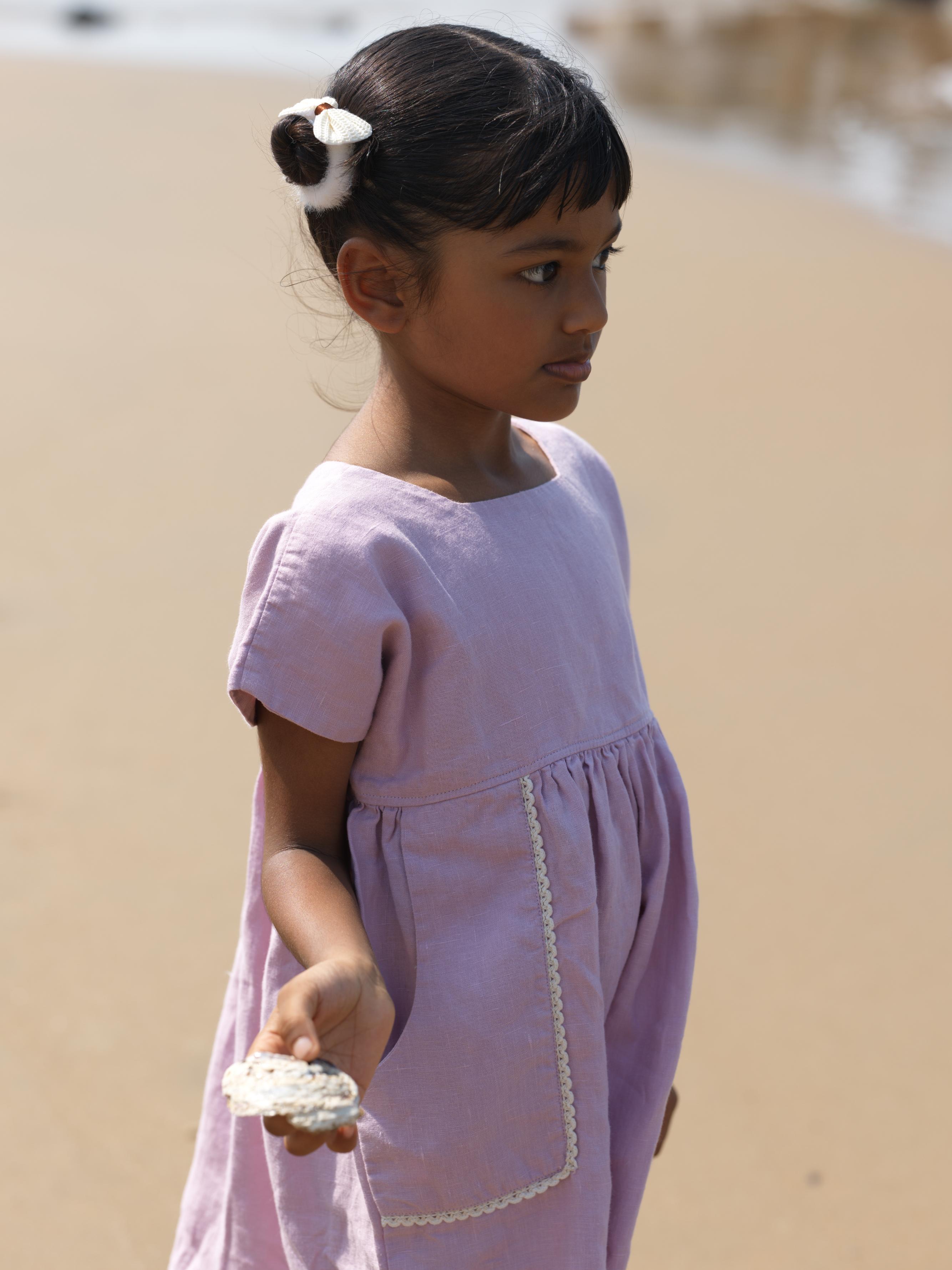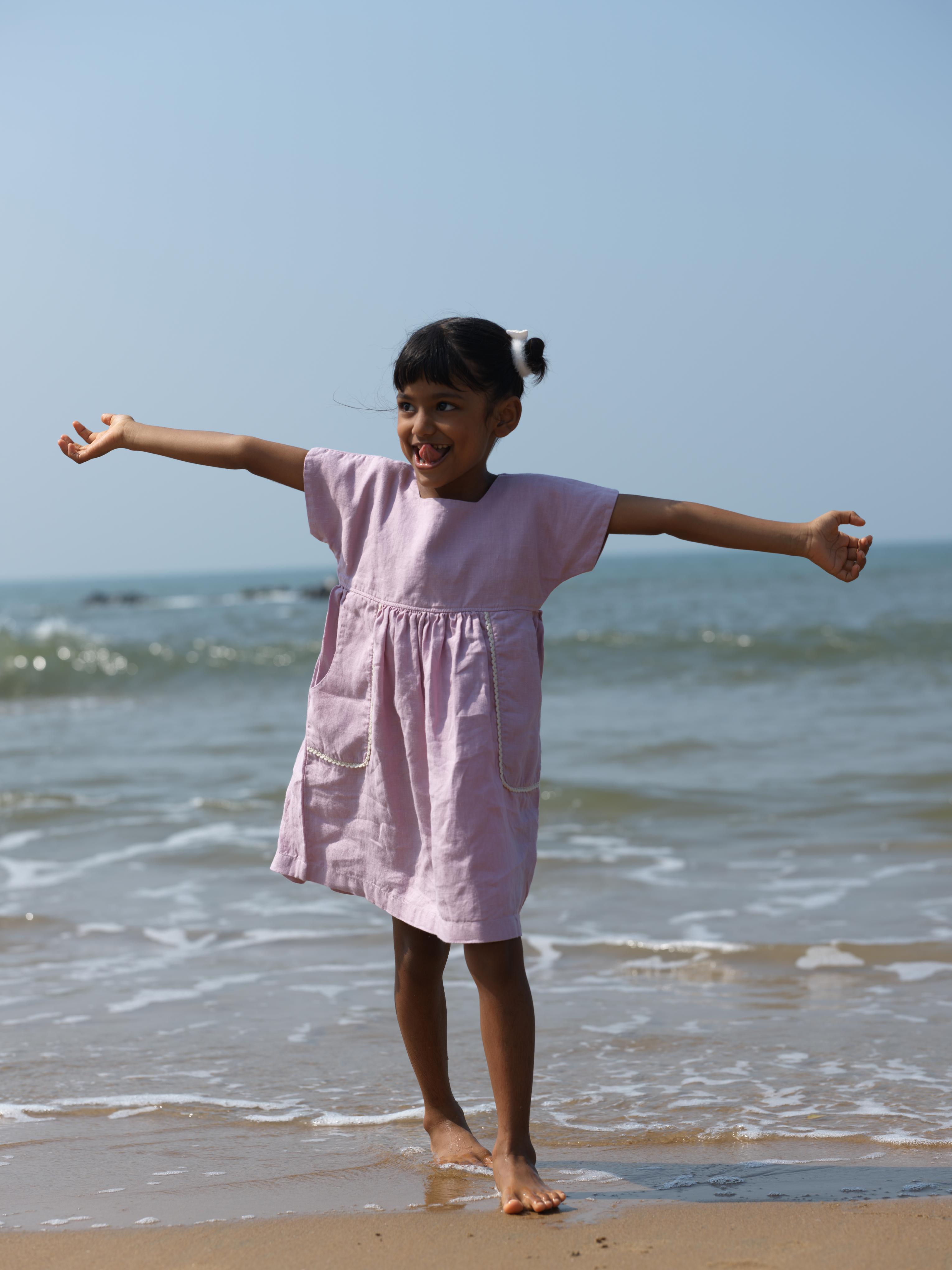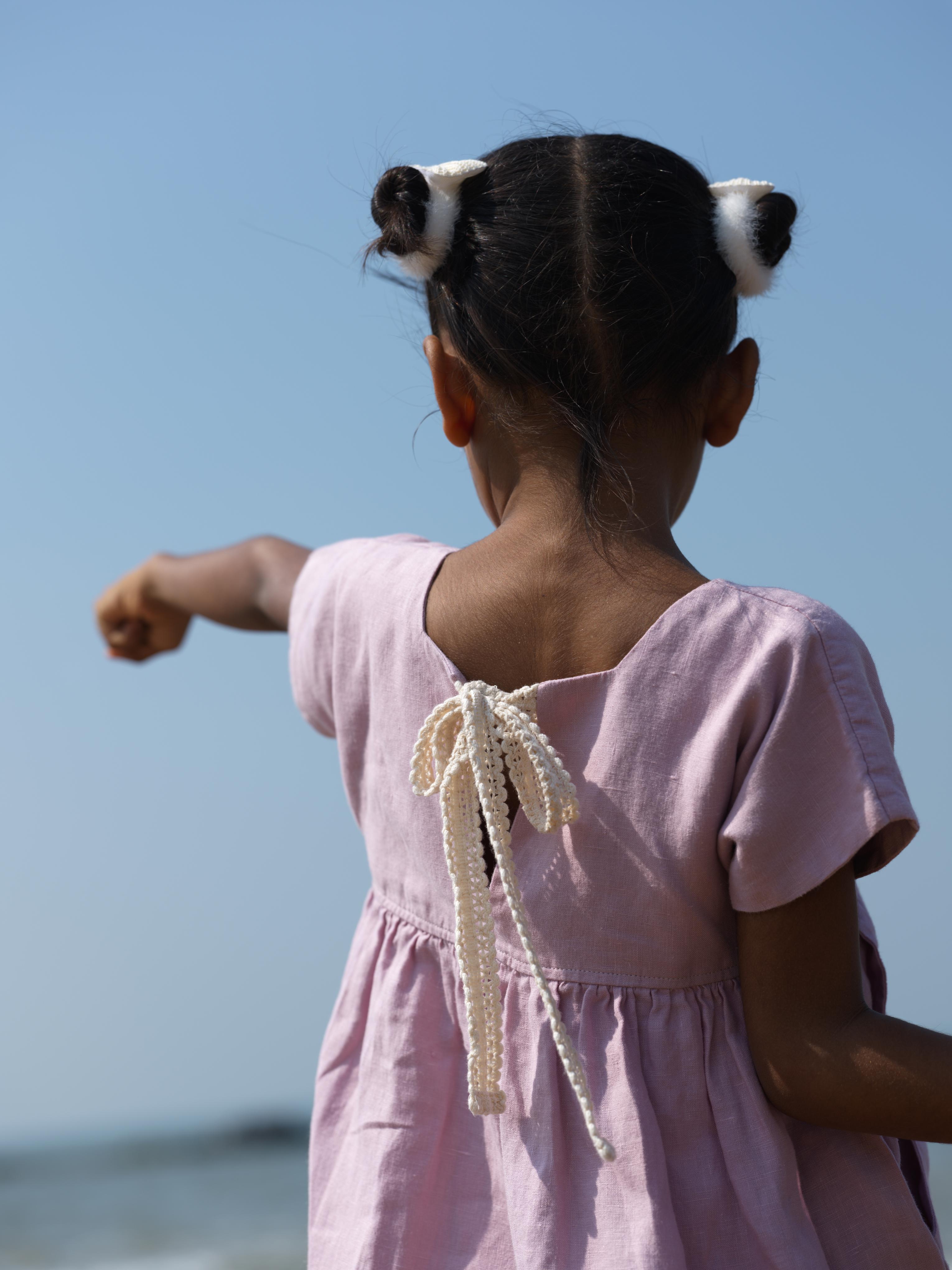 Girls Patch Pocket Tie-Back Dress Cameo Pink