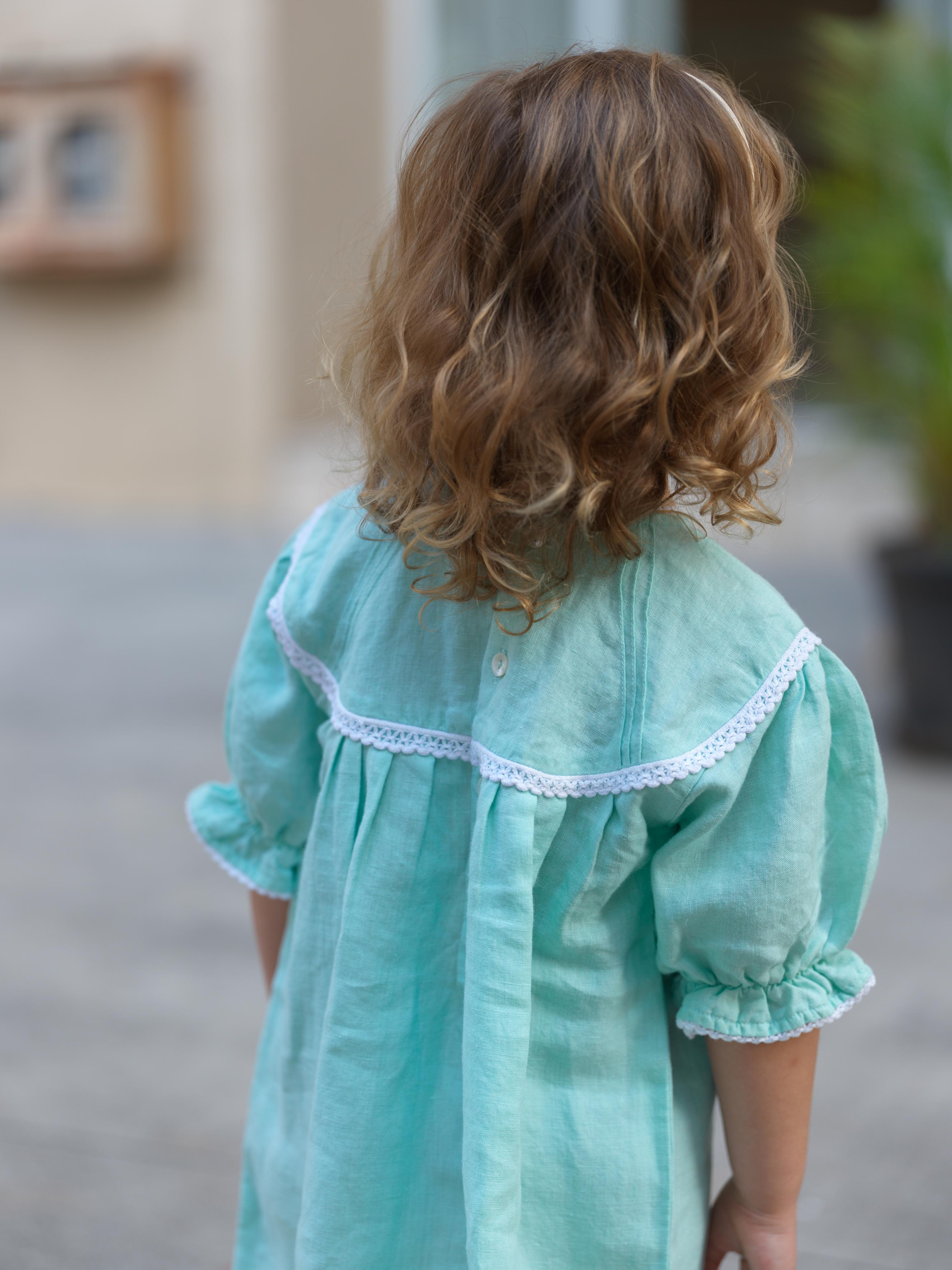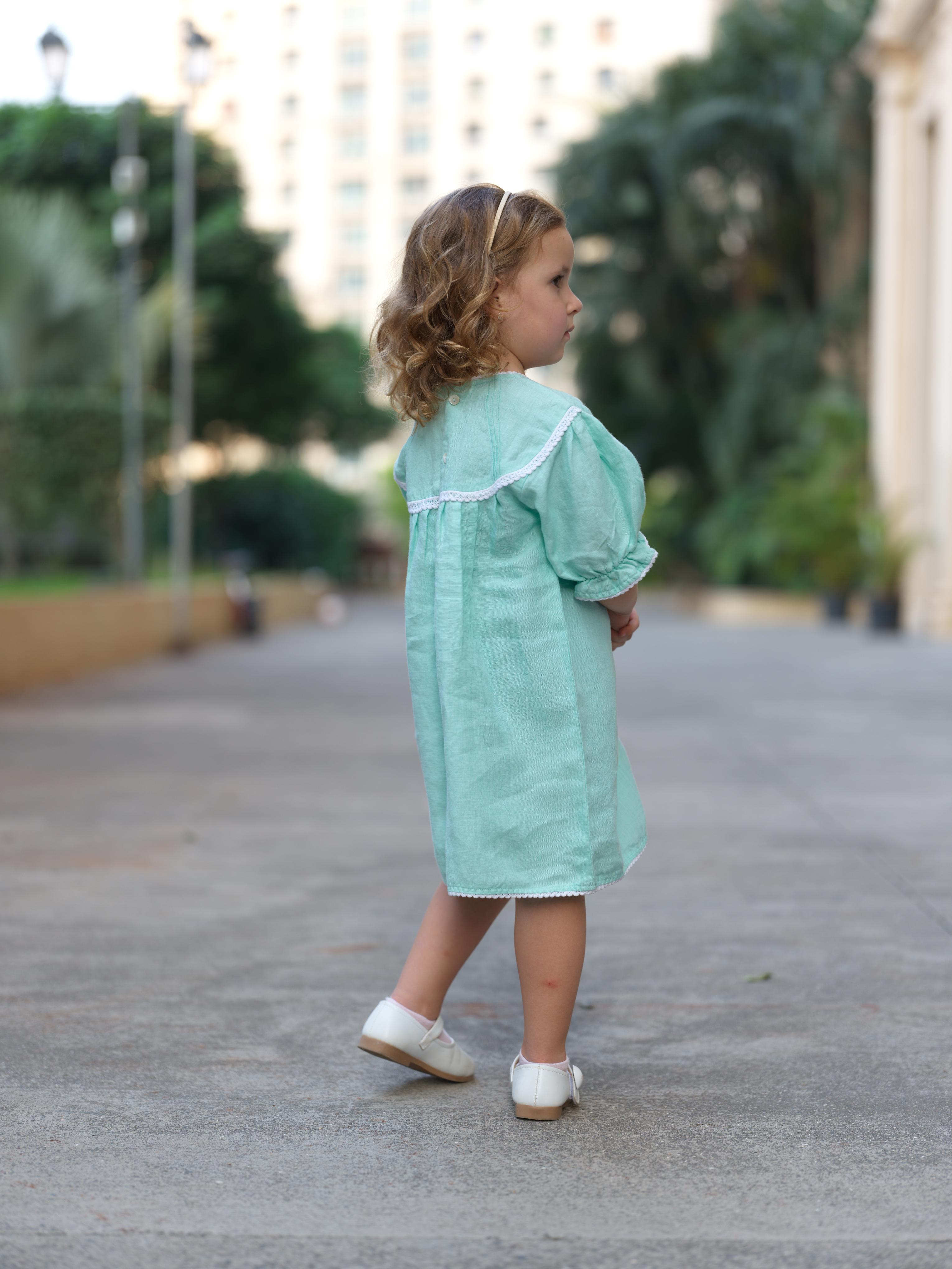 Girls Puff Sleeve Vintage Dress Celestial Green