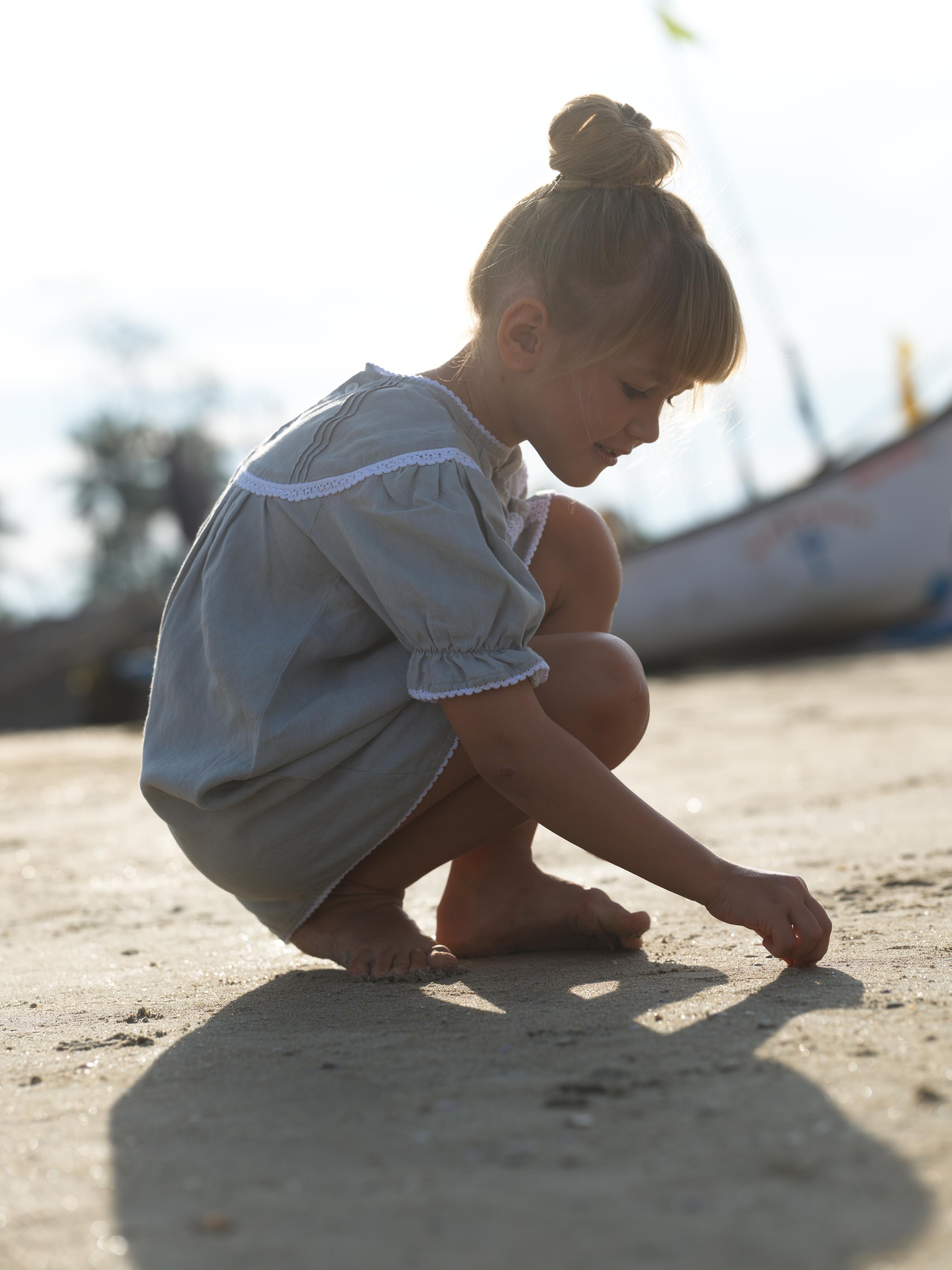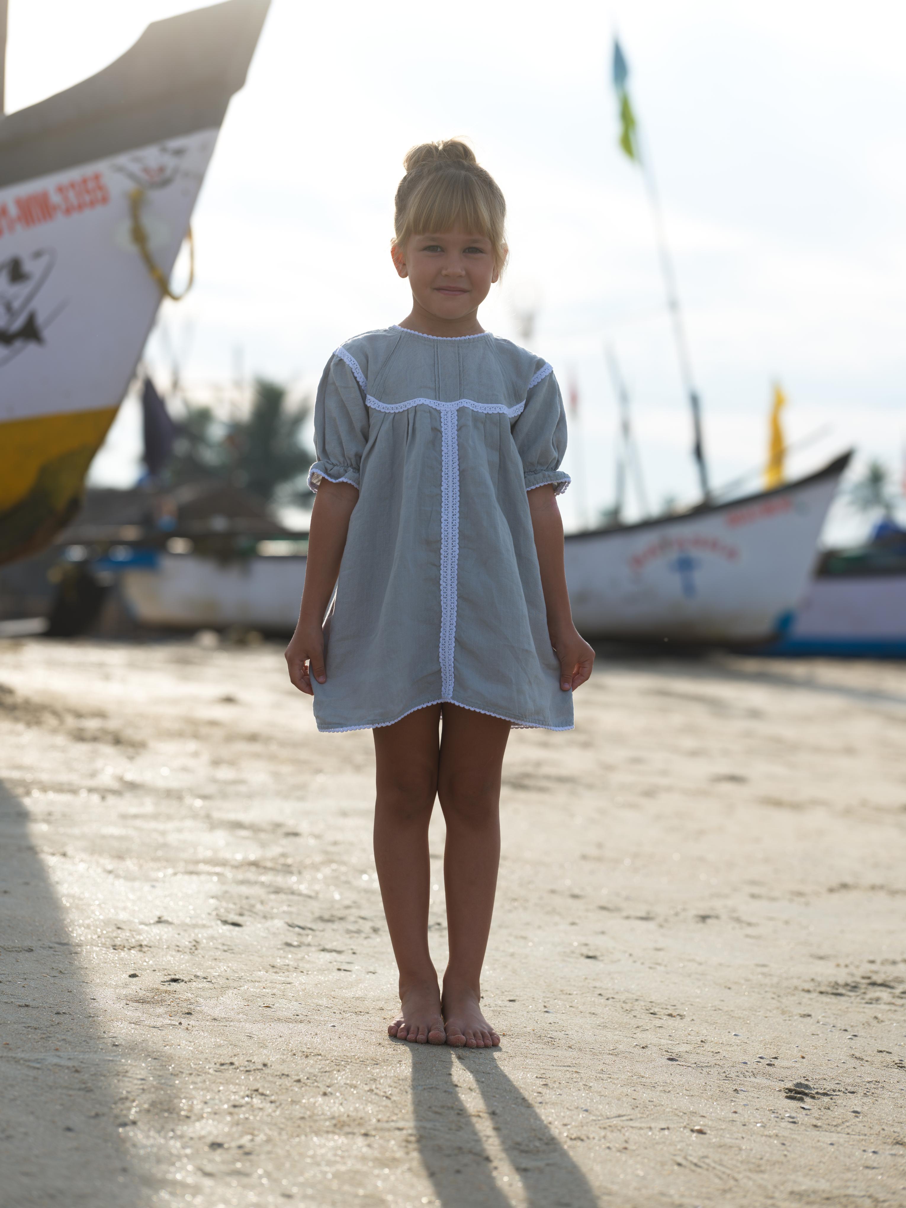 Girls Puff Sleeve Vintage Dress Cloud Grey