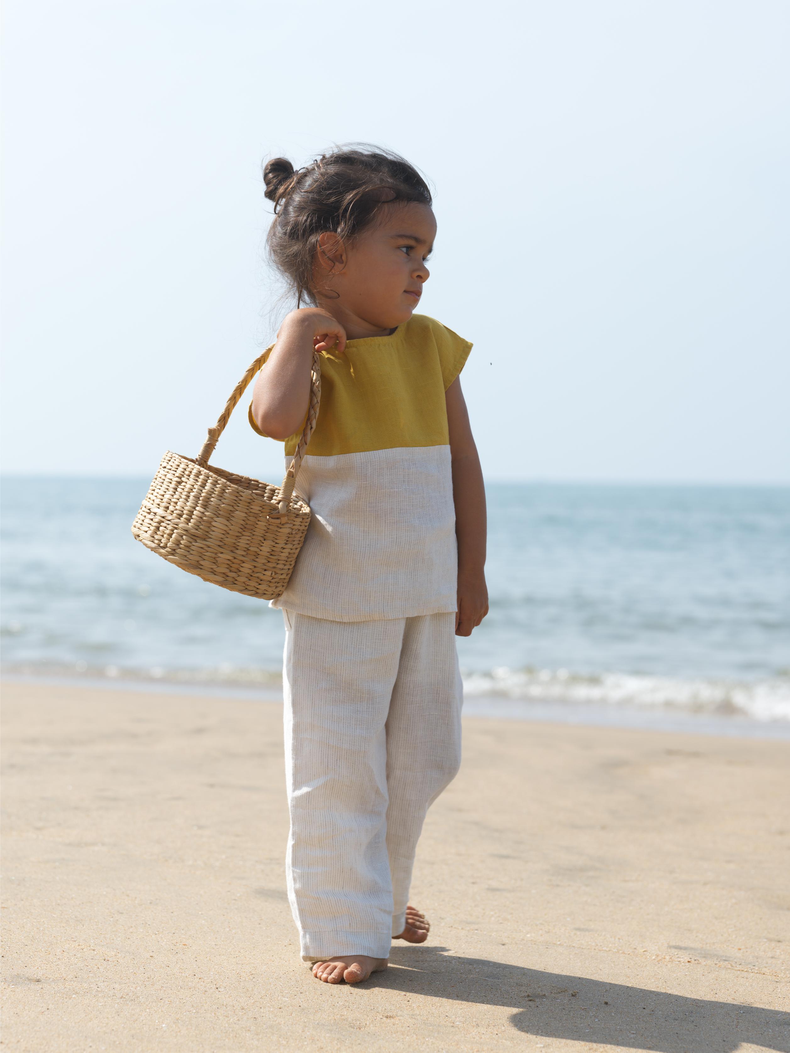 Girls Round Shoulder Co-Ord Set Mustard / Beige