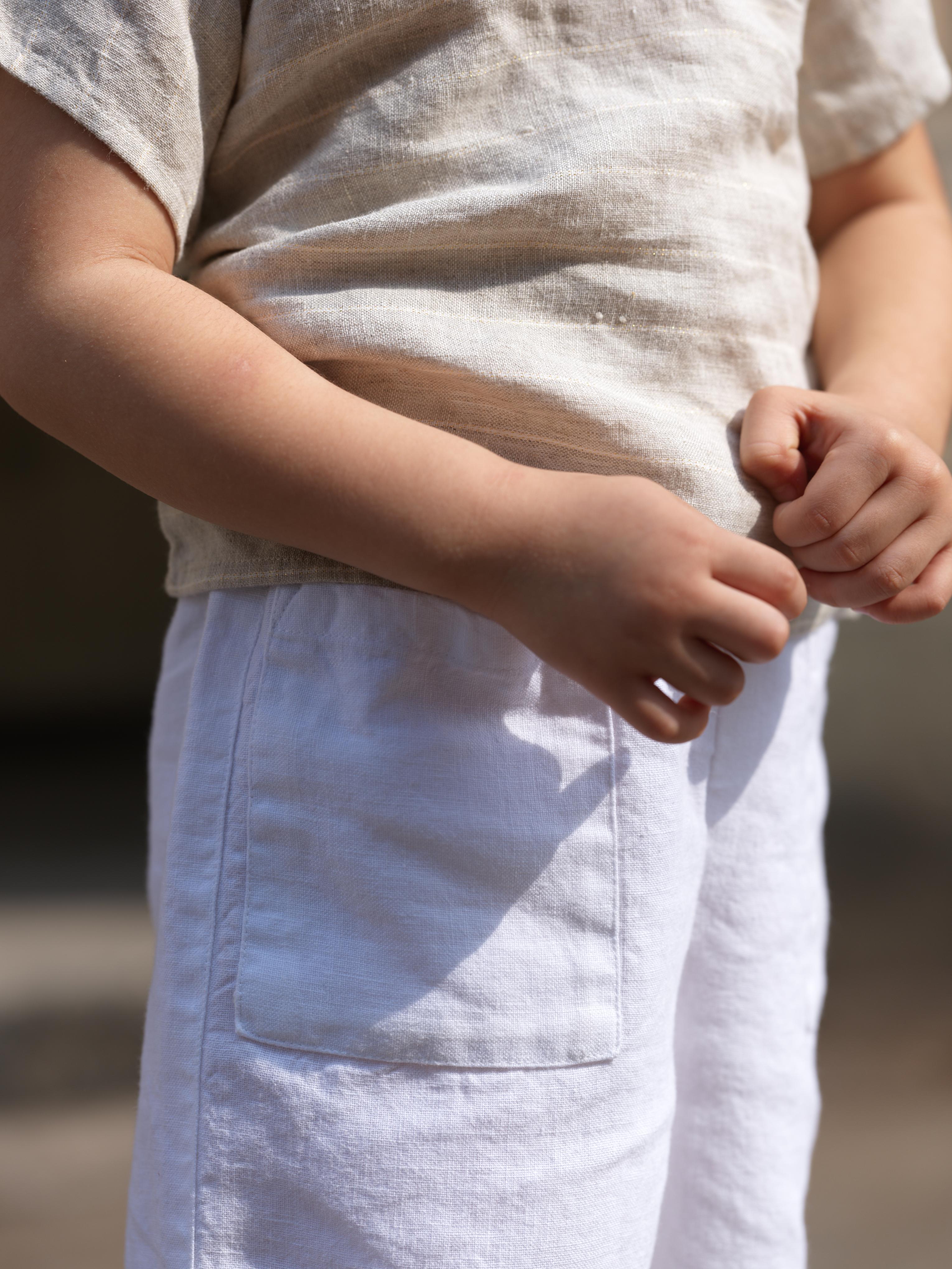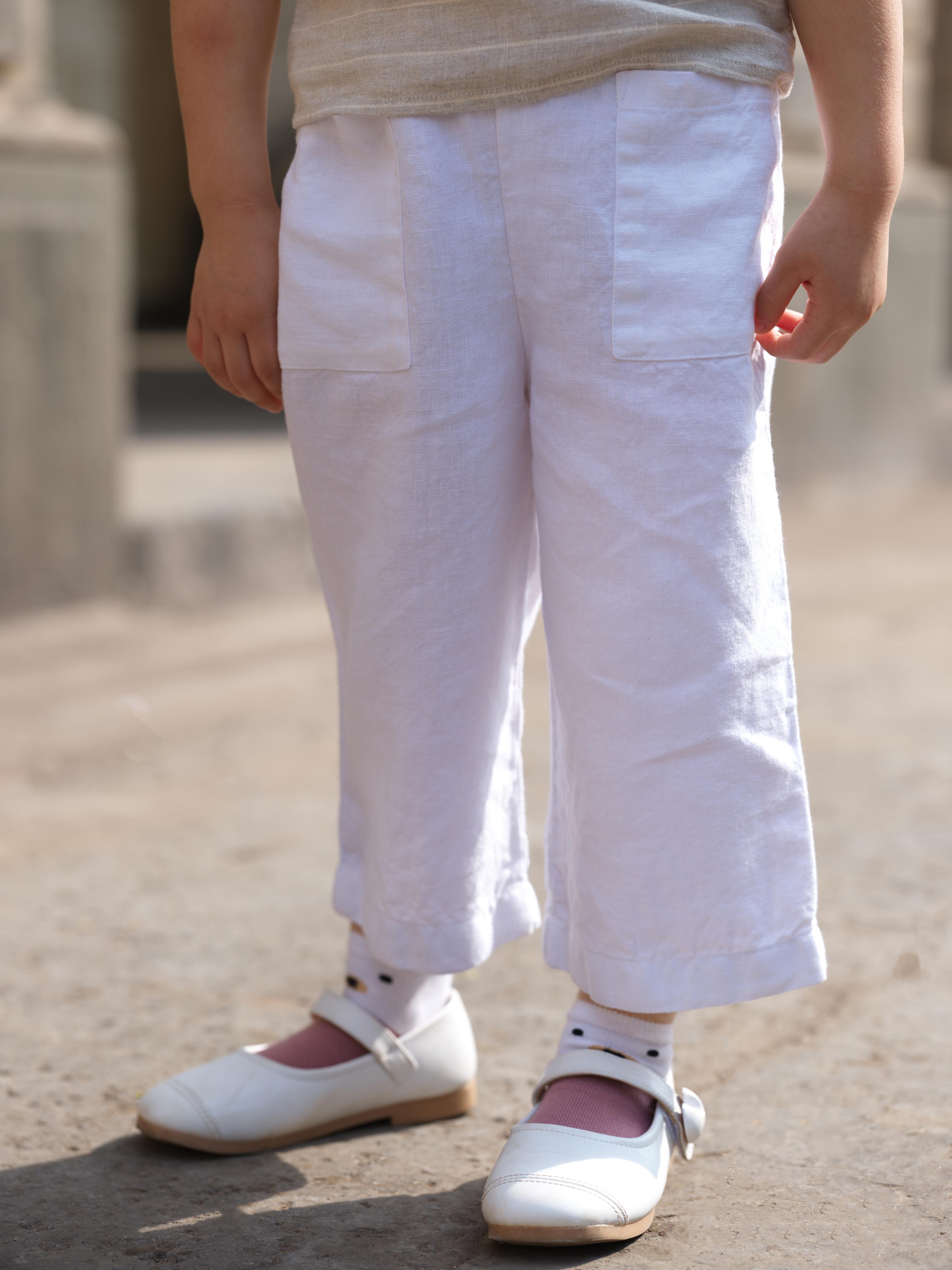 Girls Round Shoulder Top & Patch pocket Trousers Co-Ord set Lurex Stripe / White