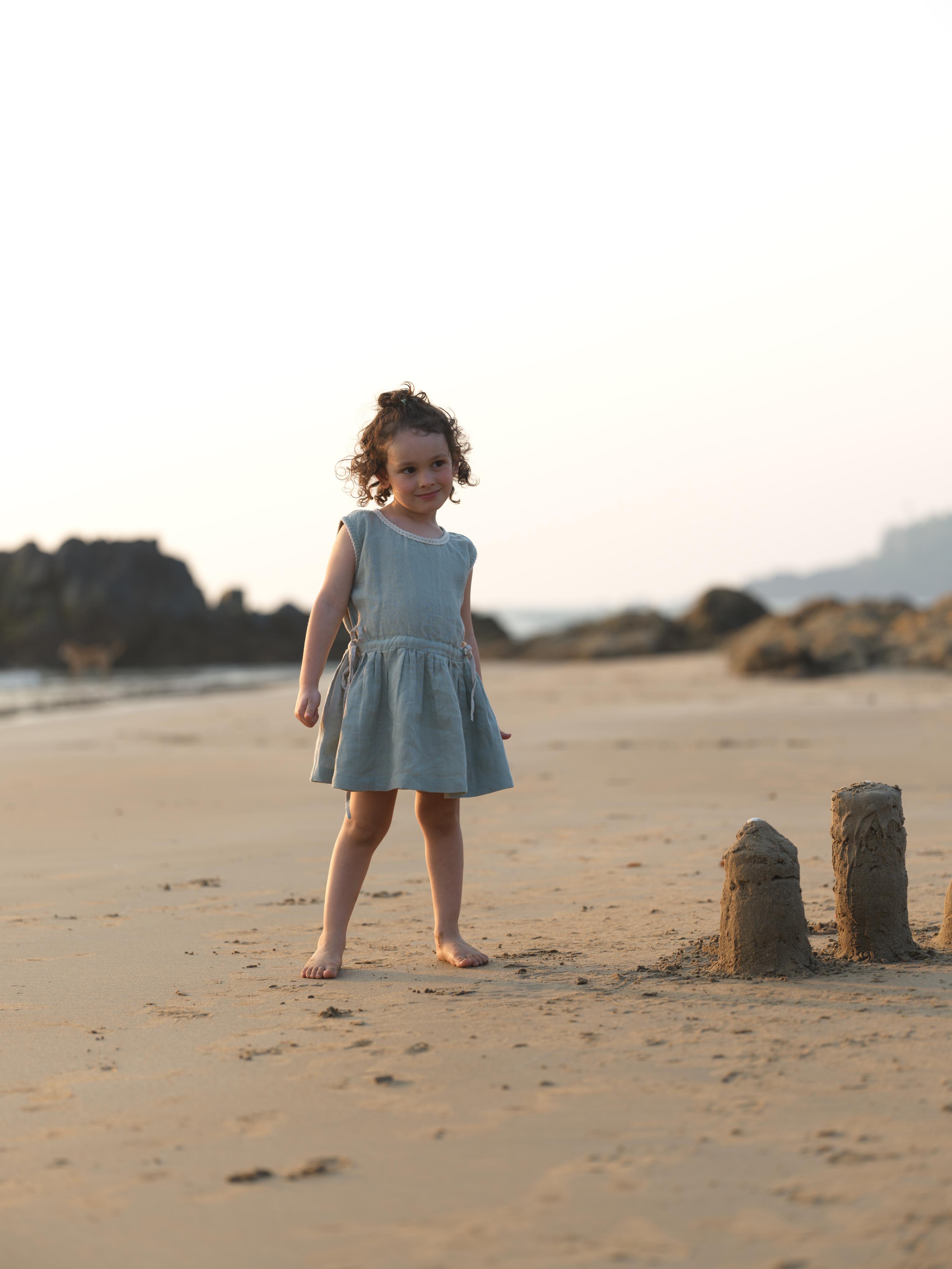 Girls Sleeveless Drawstring Dress Mint Green