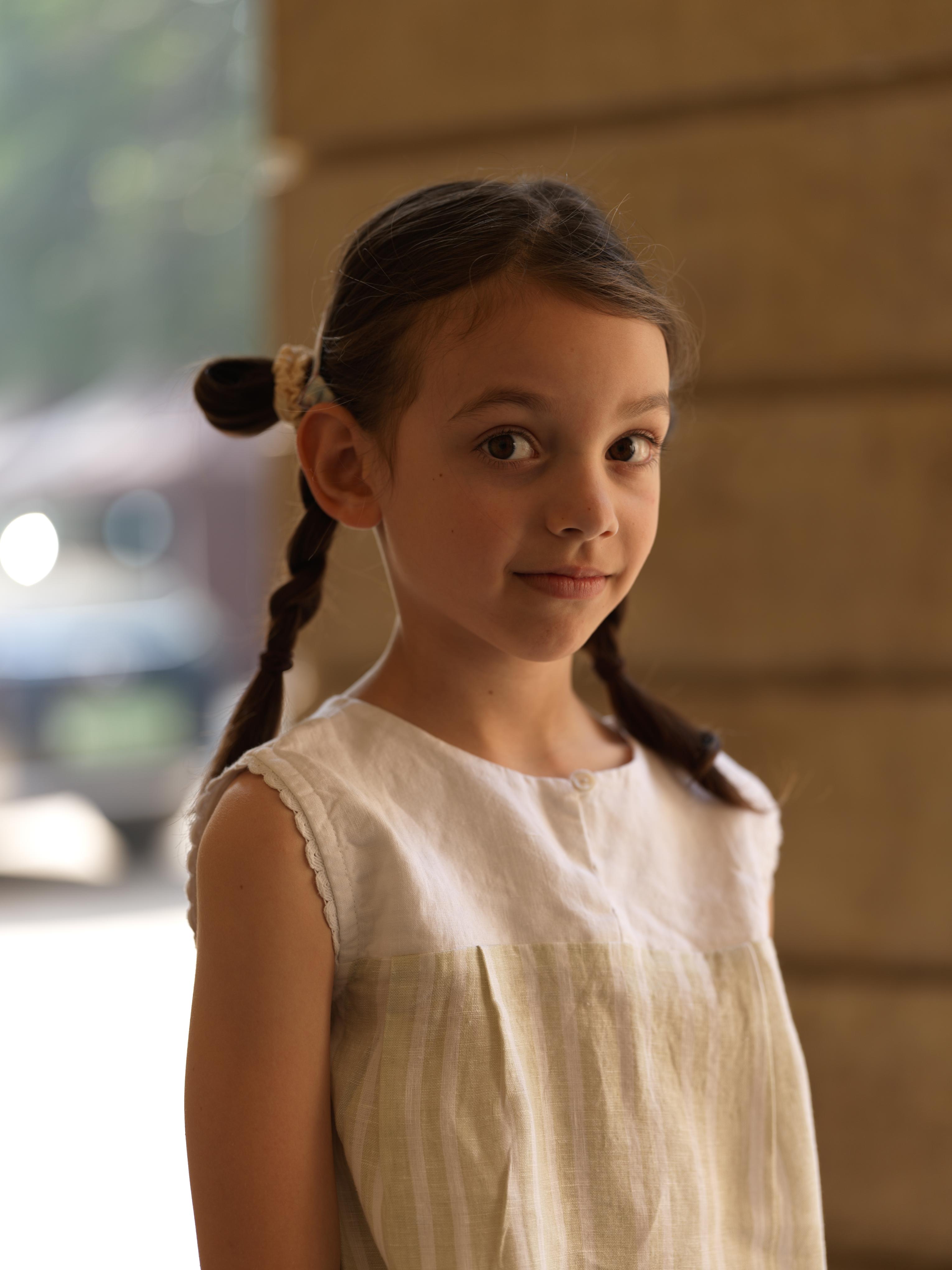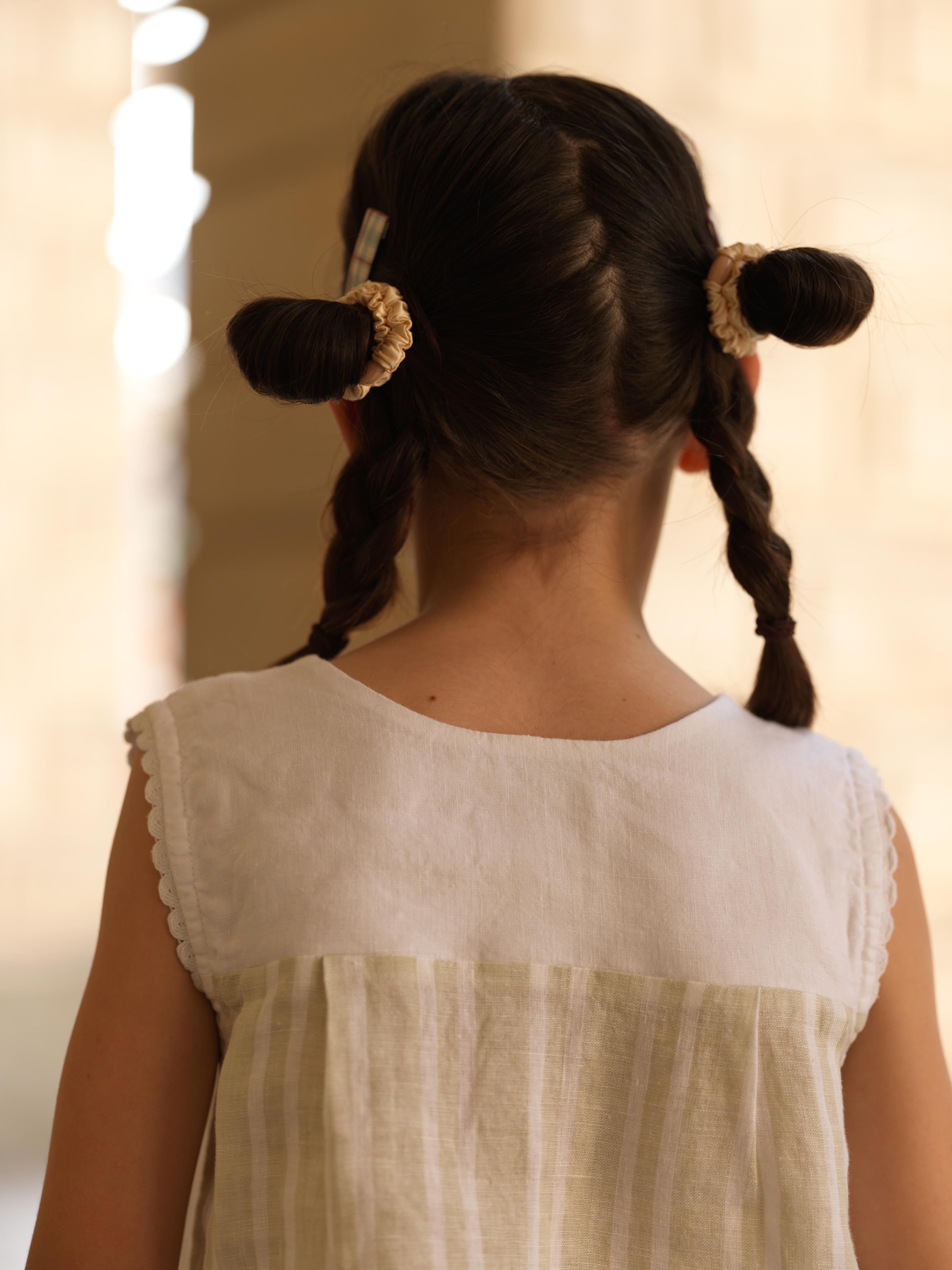 Girls Sleeveless Front Keyhole Top & Trousers Beige Double Stripe / White