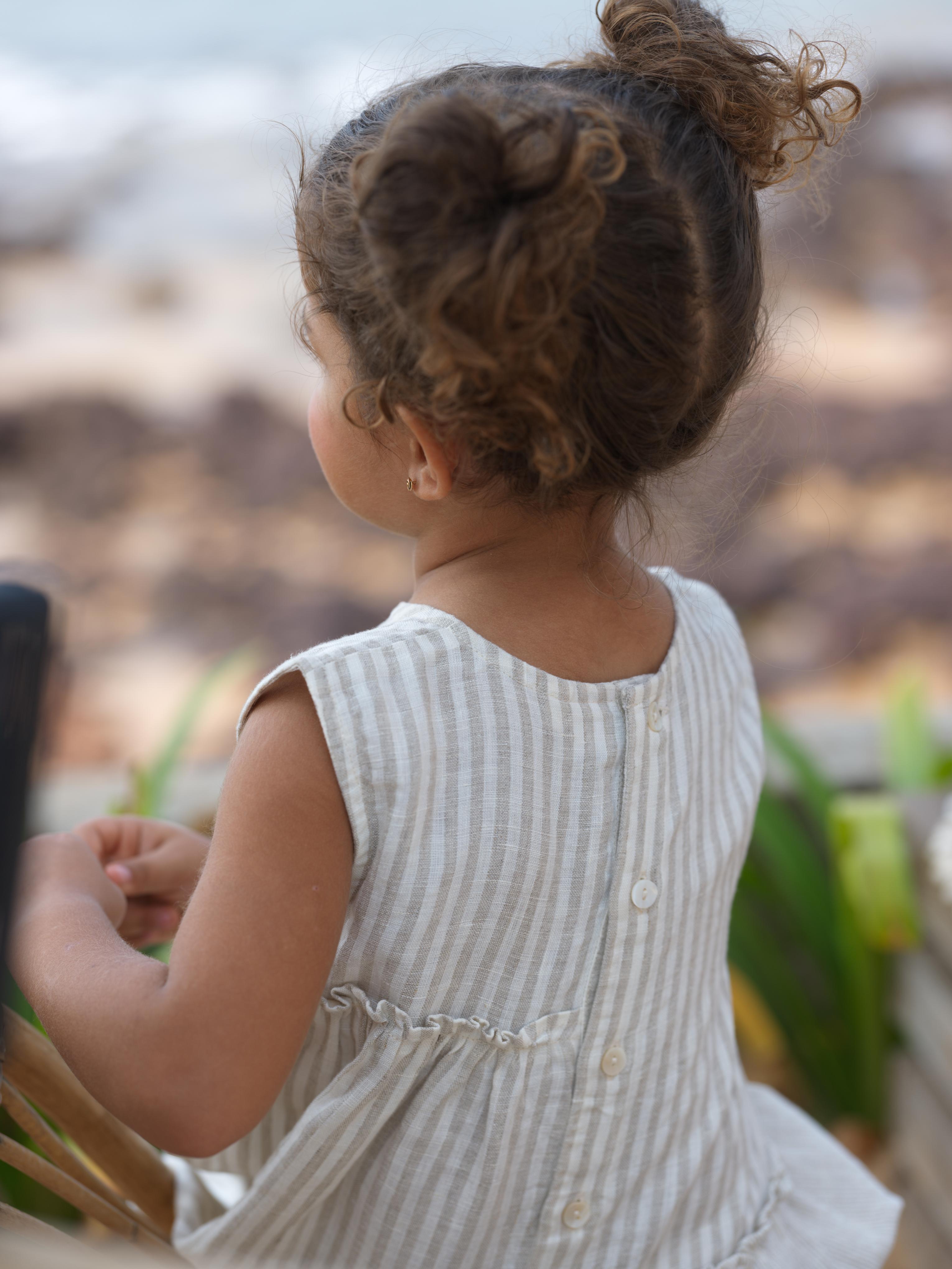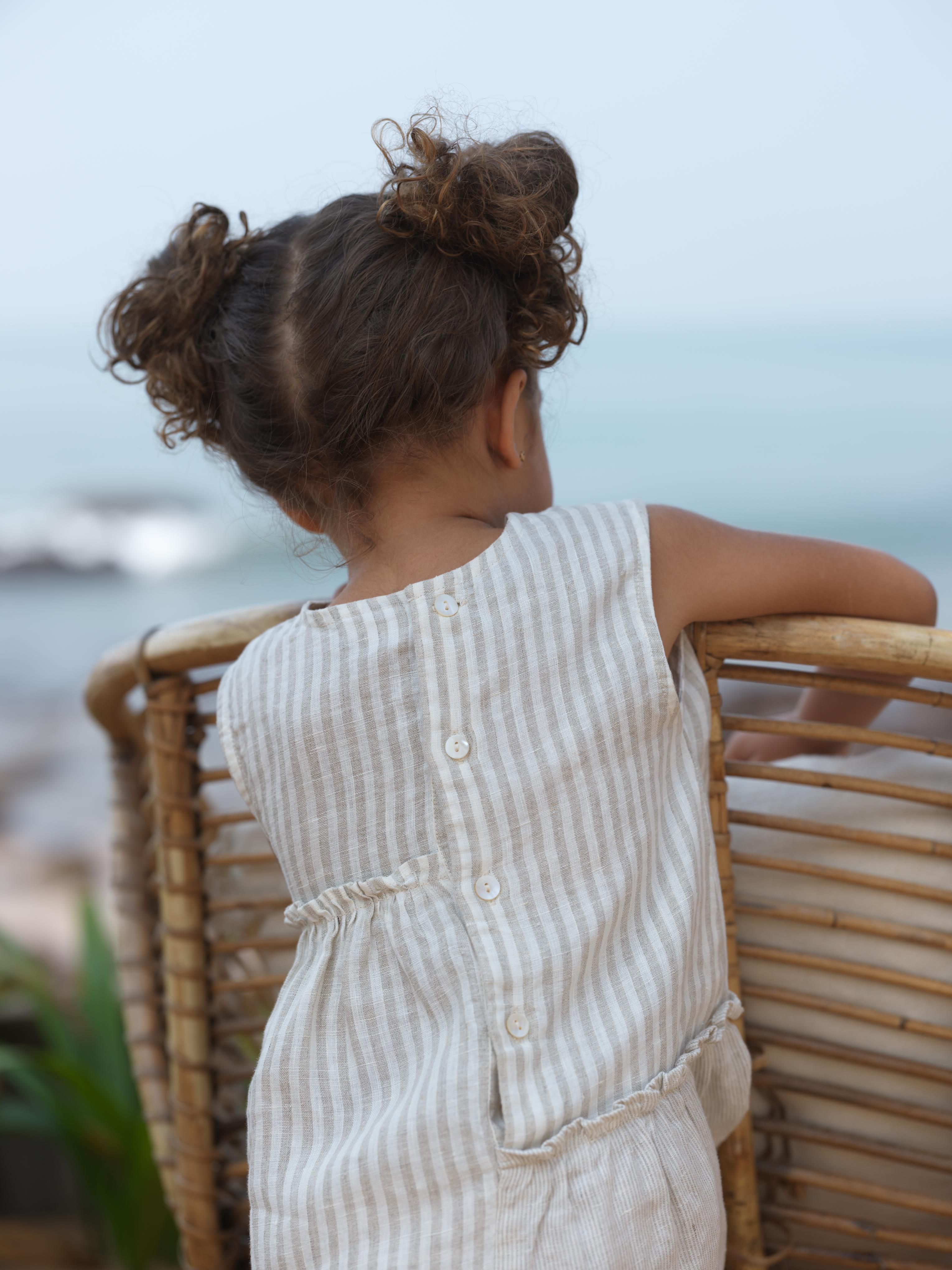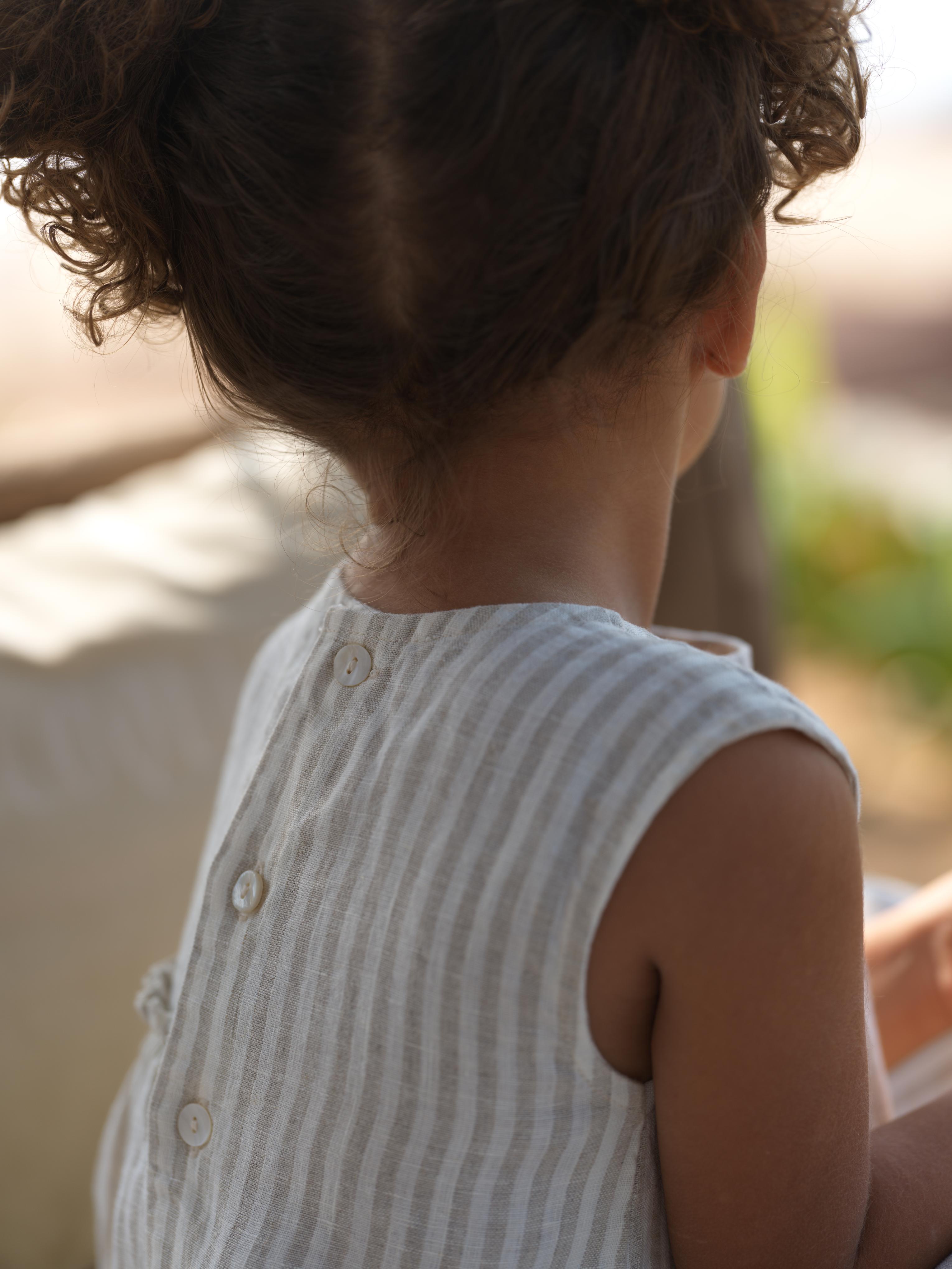 Girls Sleeveless Gathered Dress Beige Stripes / Fade Fine Stripe