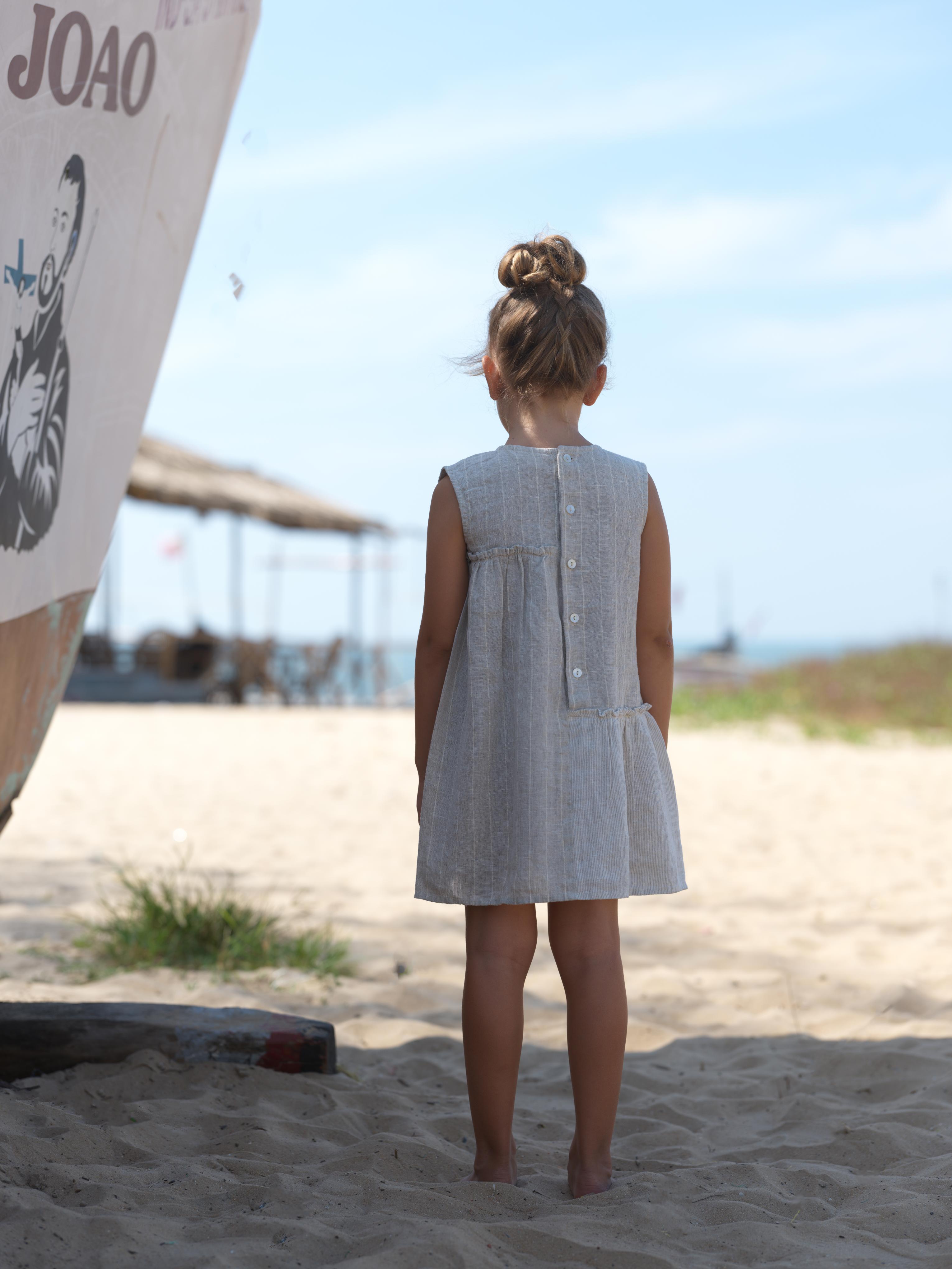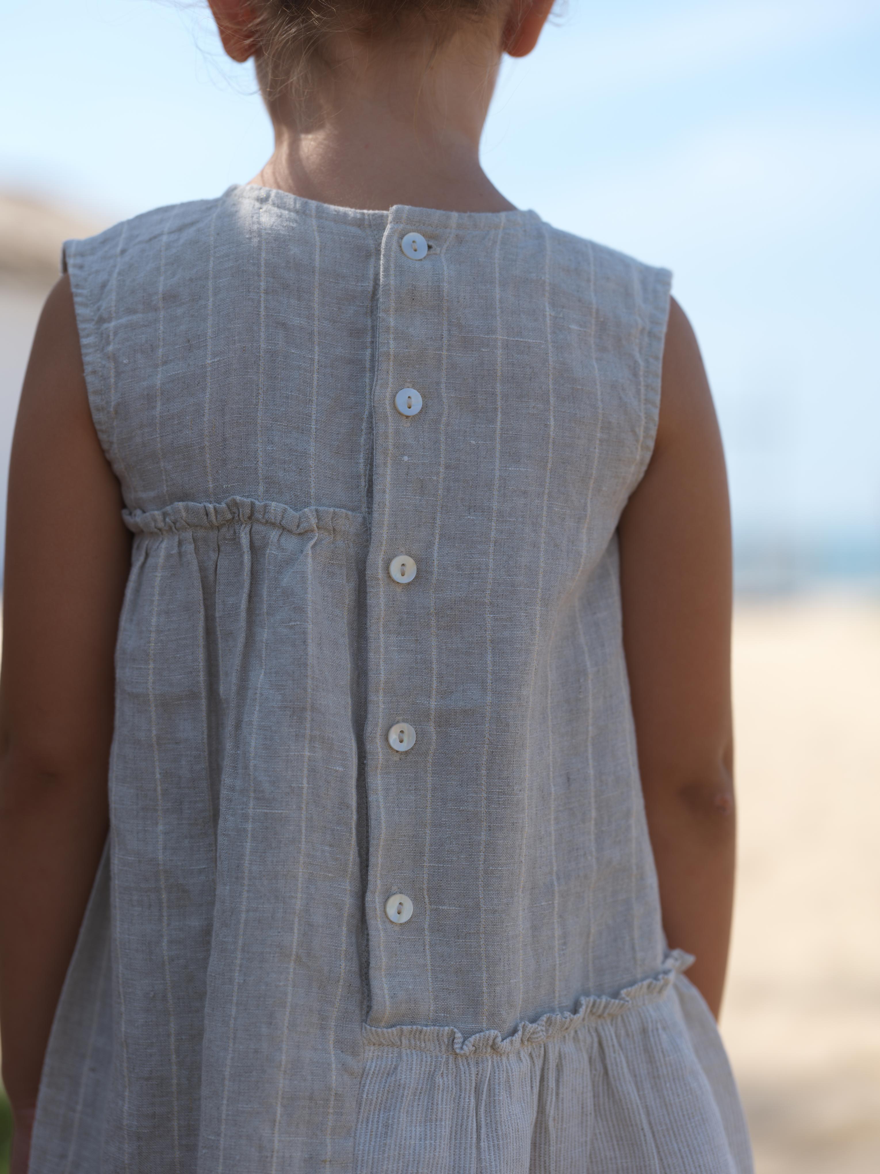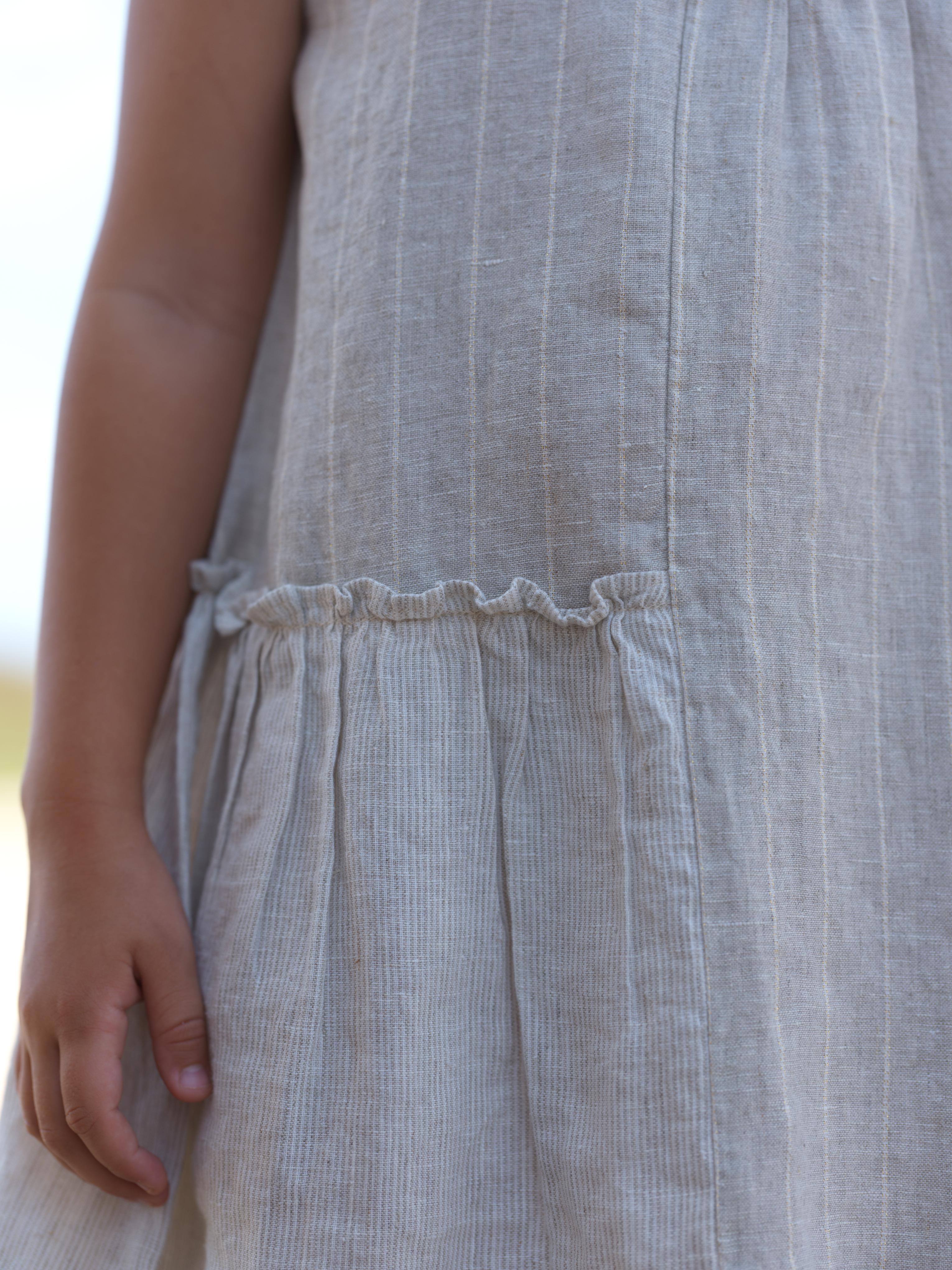 Girls Sleeveless Gathered Dress Lurex Stripe / Fade Fine Stripe