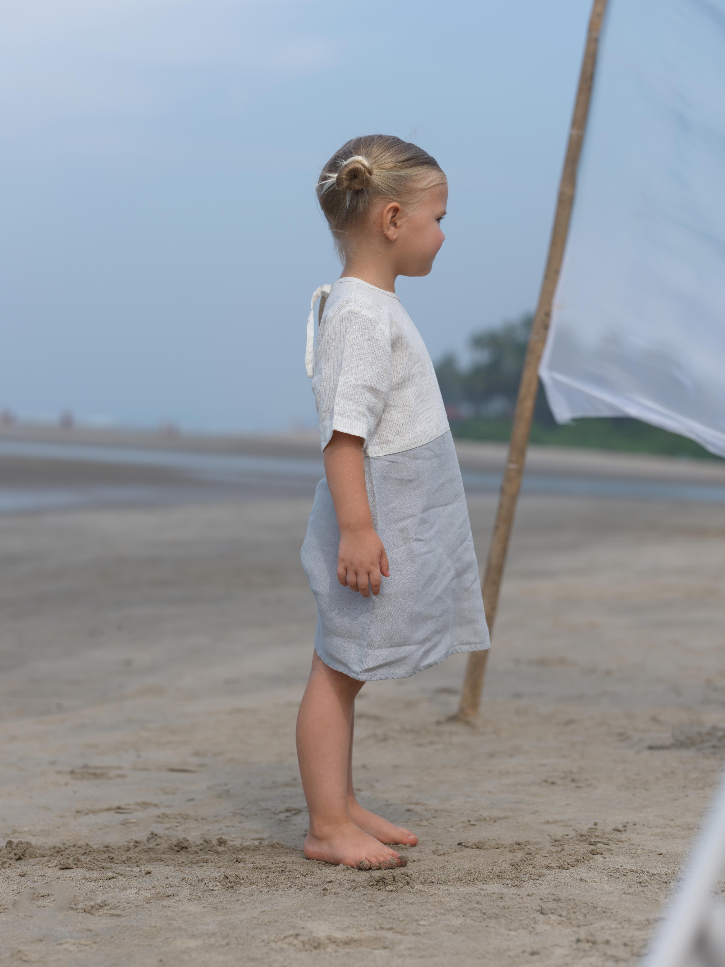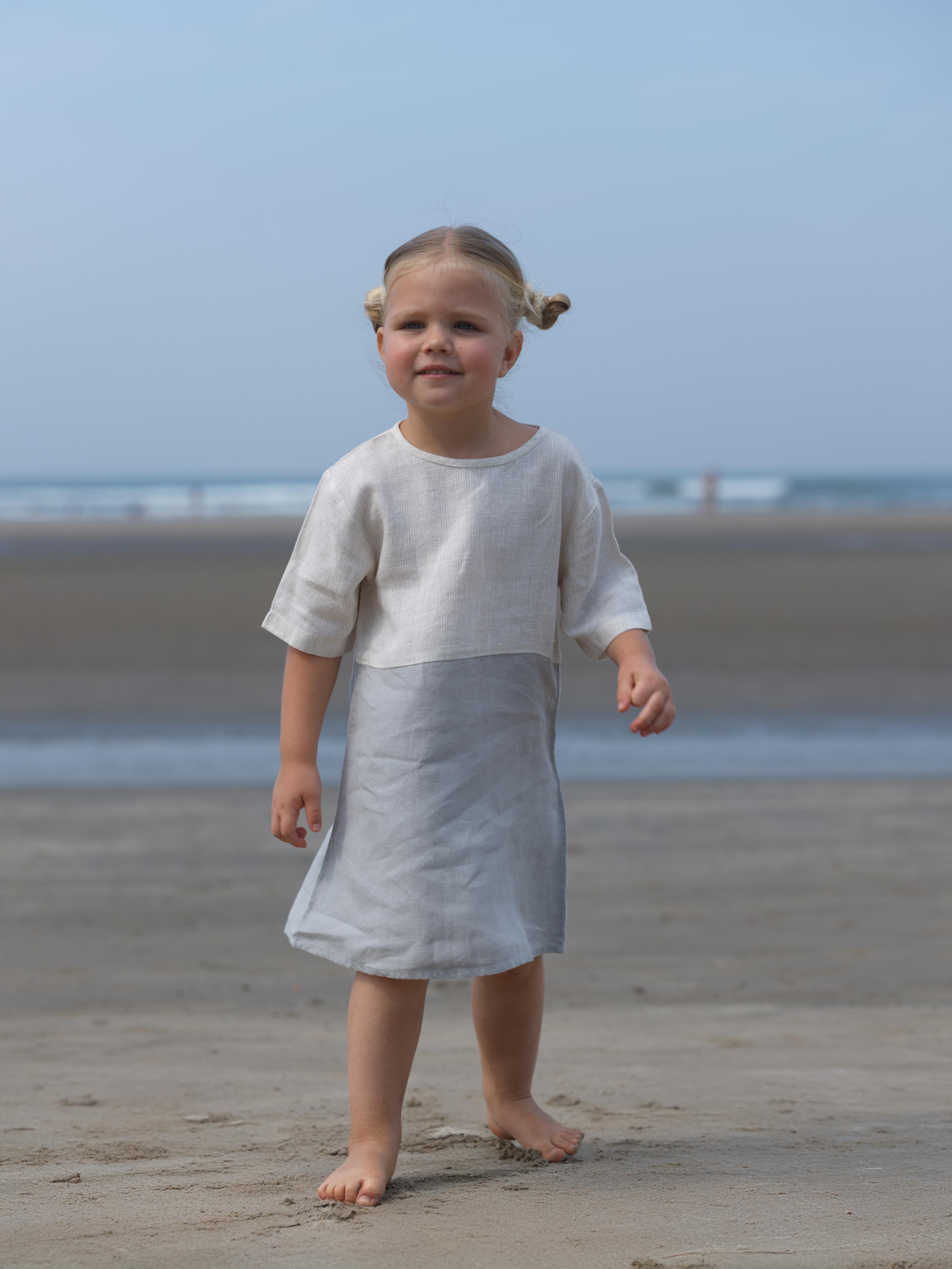Girls Two Colour Casual Dress Beige Hairline Stripe / Cloud Grey