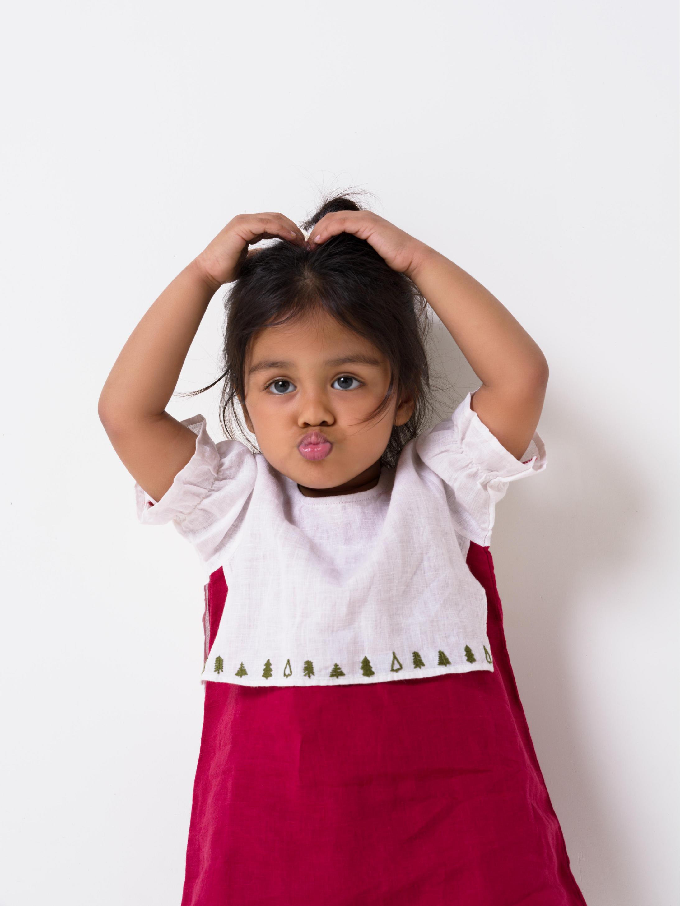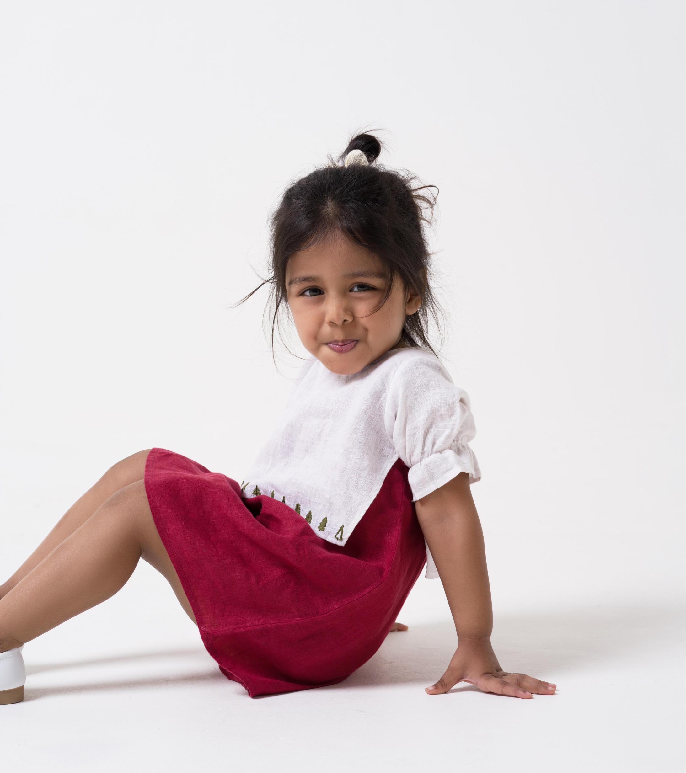 Hand-Embroidered 2 Layer Puff Sleeve Dress (Bloomer)