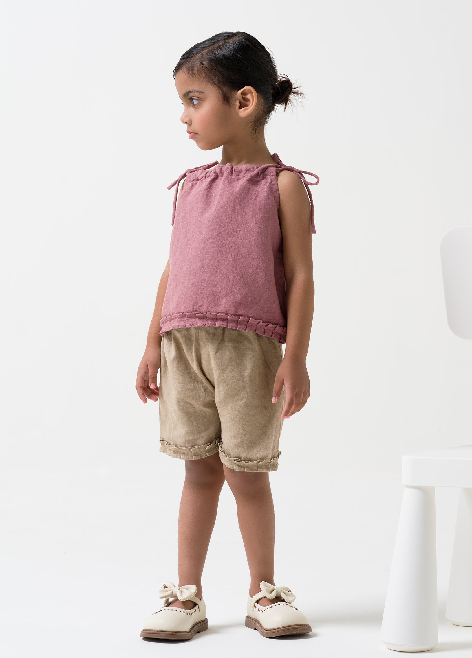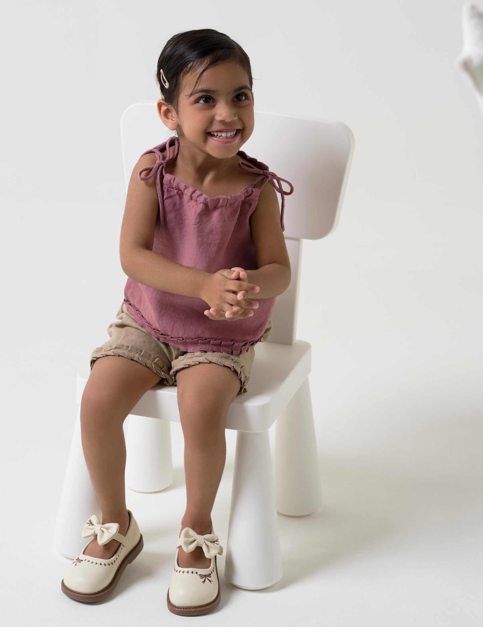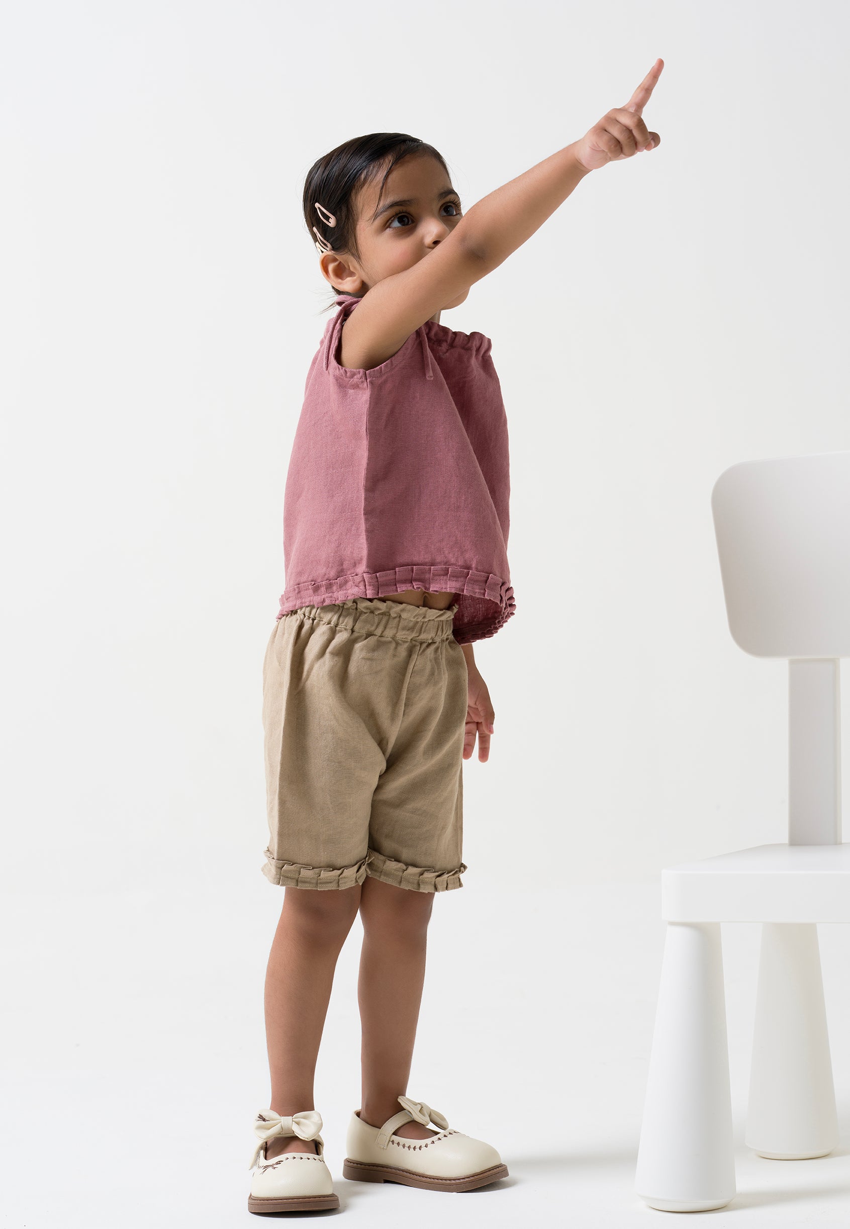 Linen Strap Ruffle Co-ords Set Top - Rose Gold B- Cookie & Cream