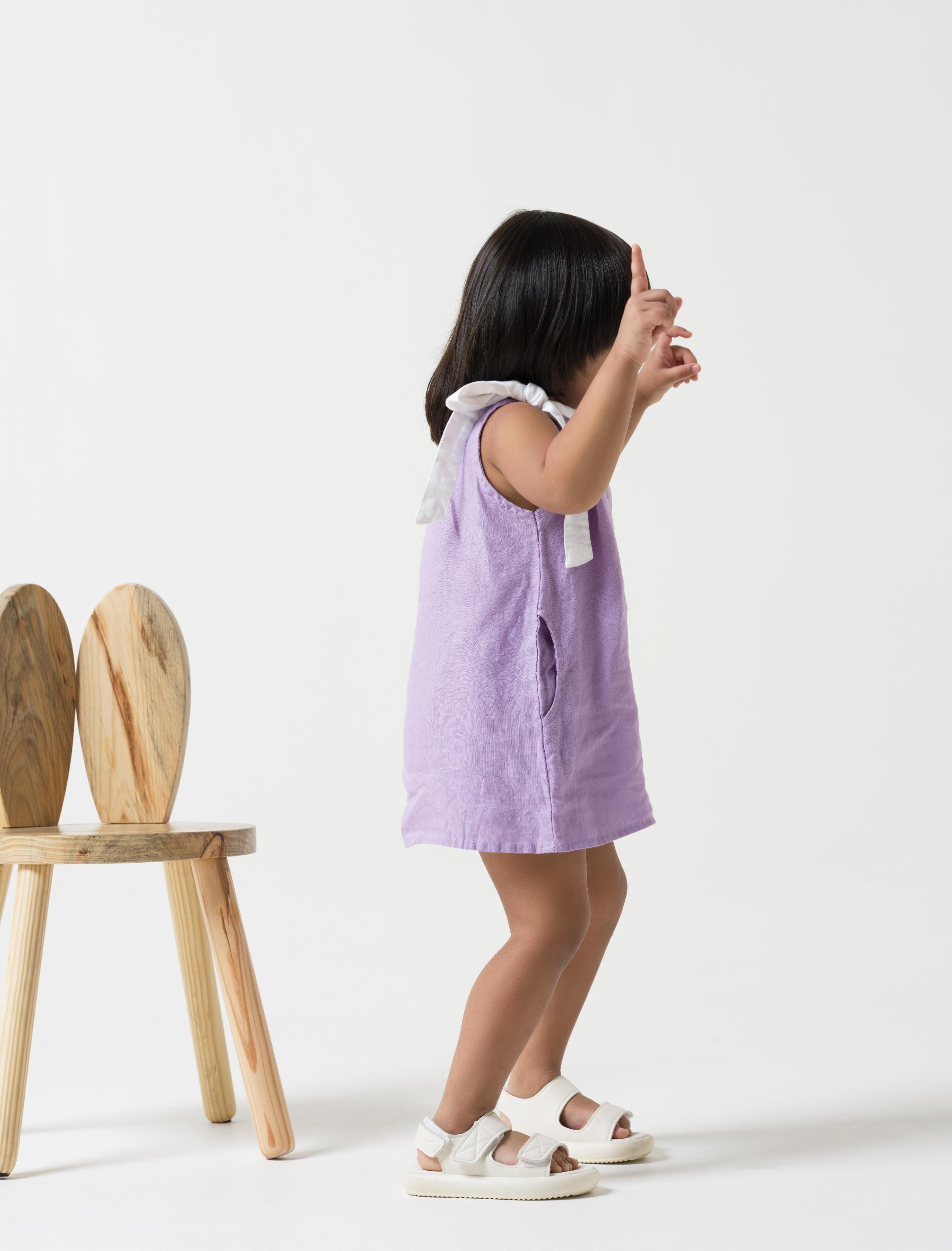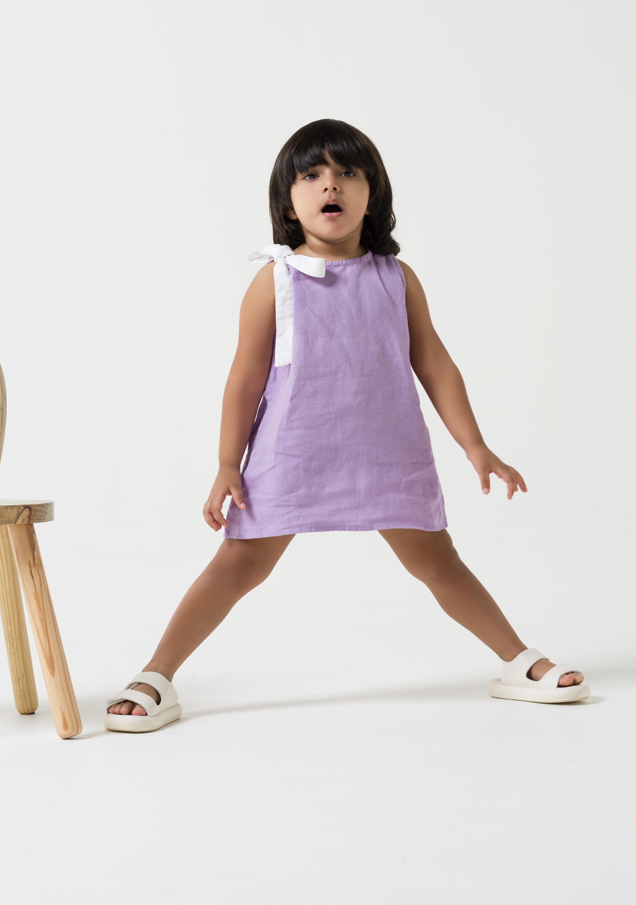 One Shoulder Tie-up Frock Lavender