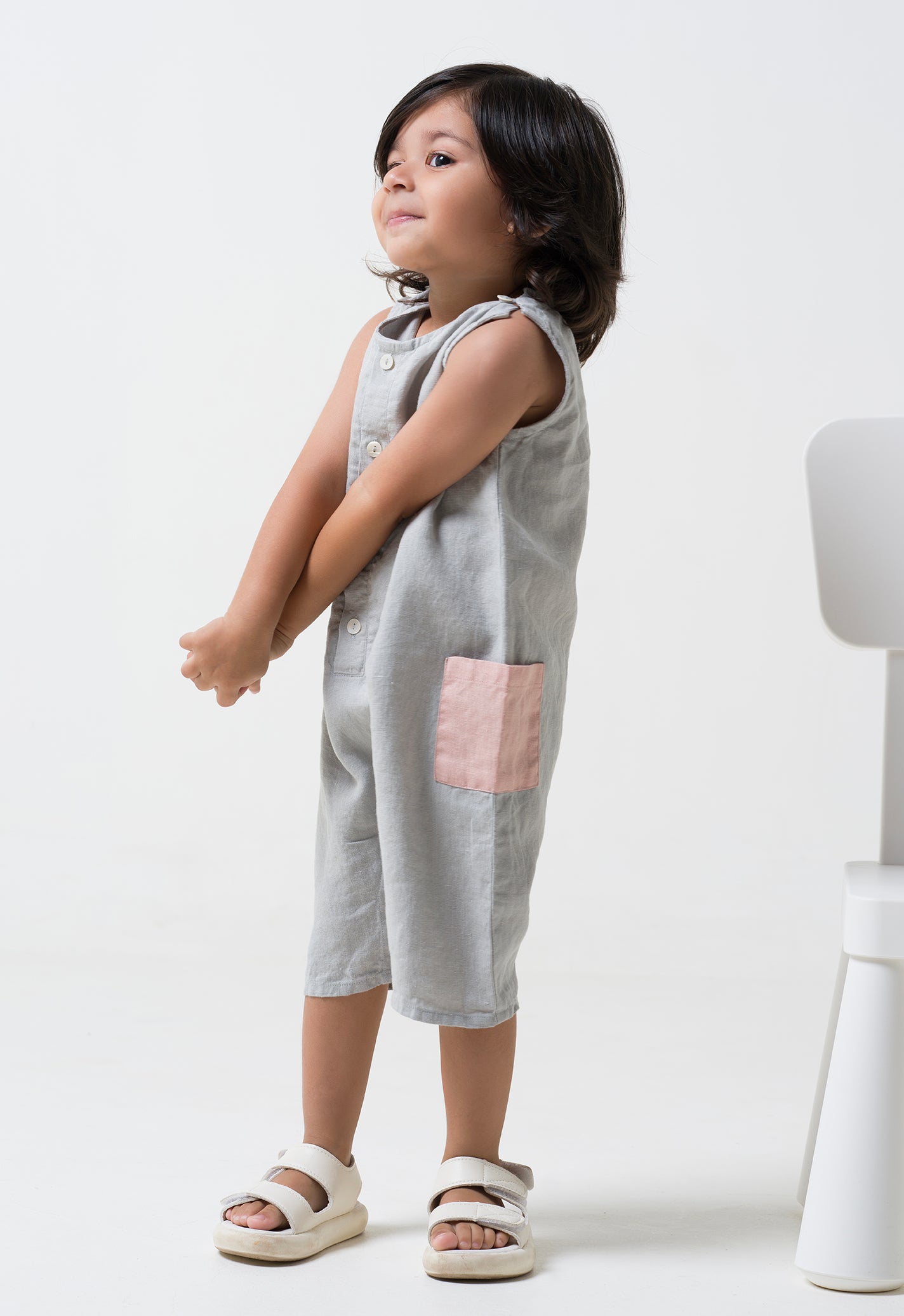 Patch Pocket Romper - Cloud Grey - Pocket - Flamingo