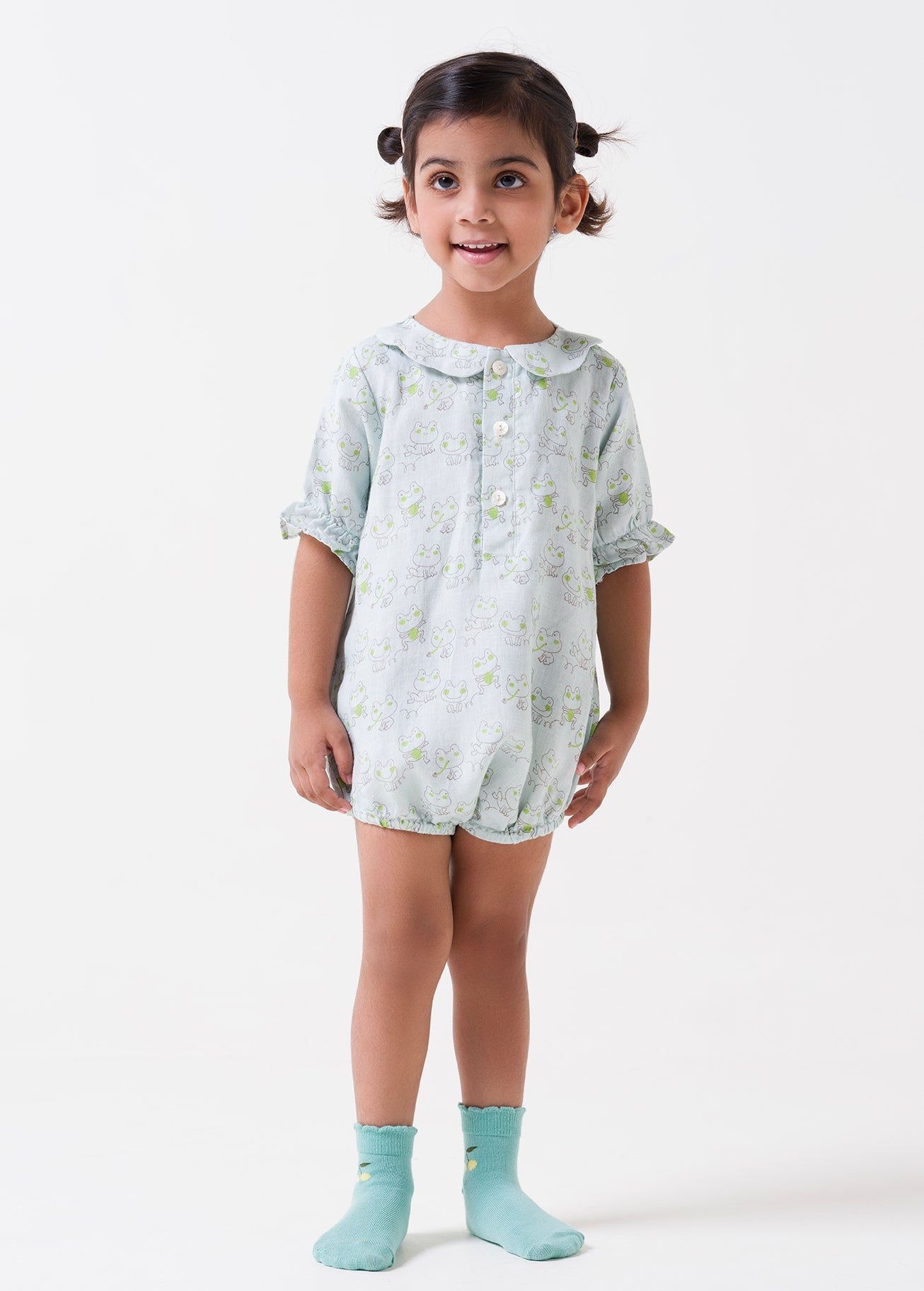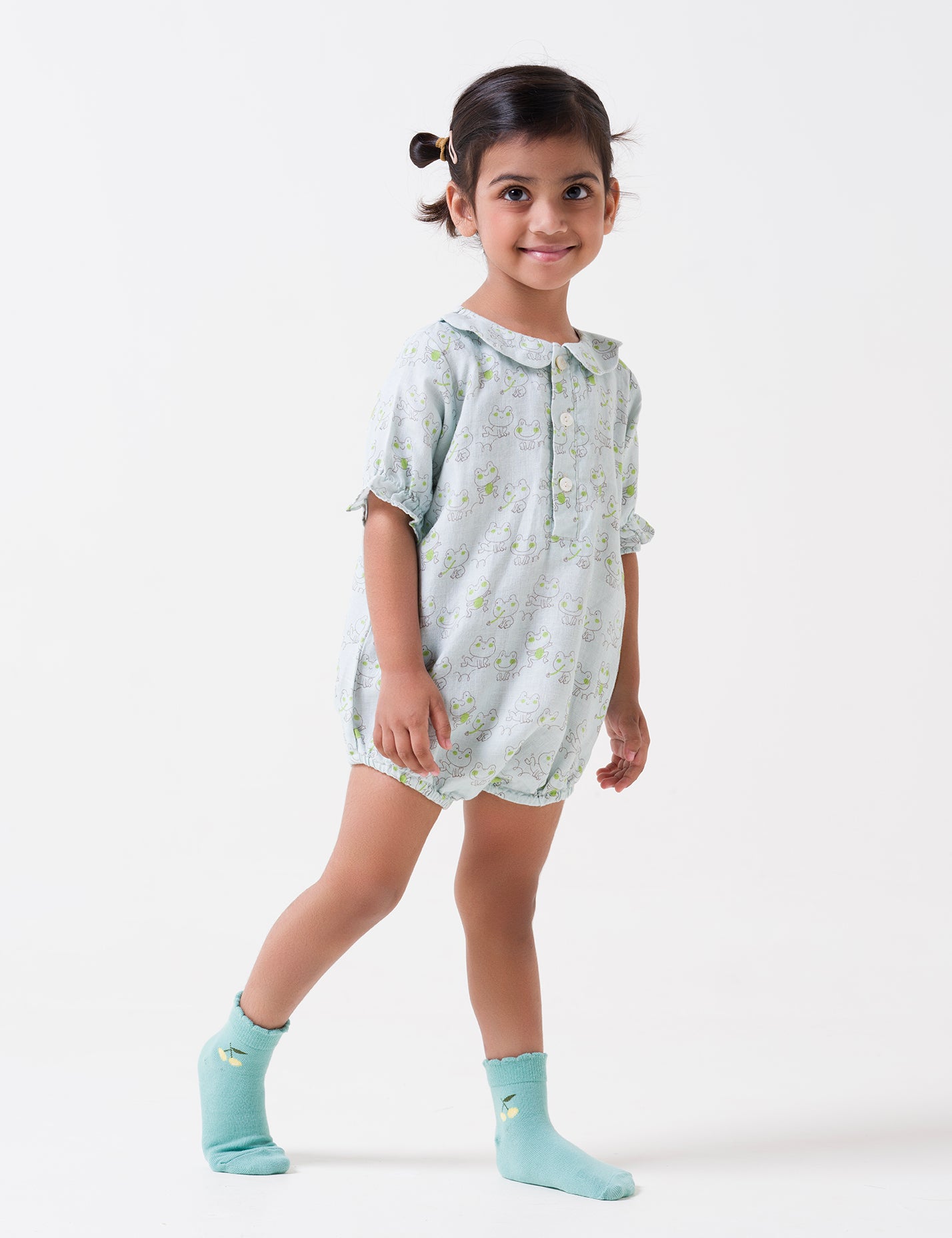 Printed Puff-Sleeve Romper