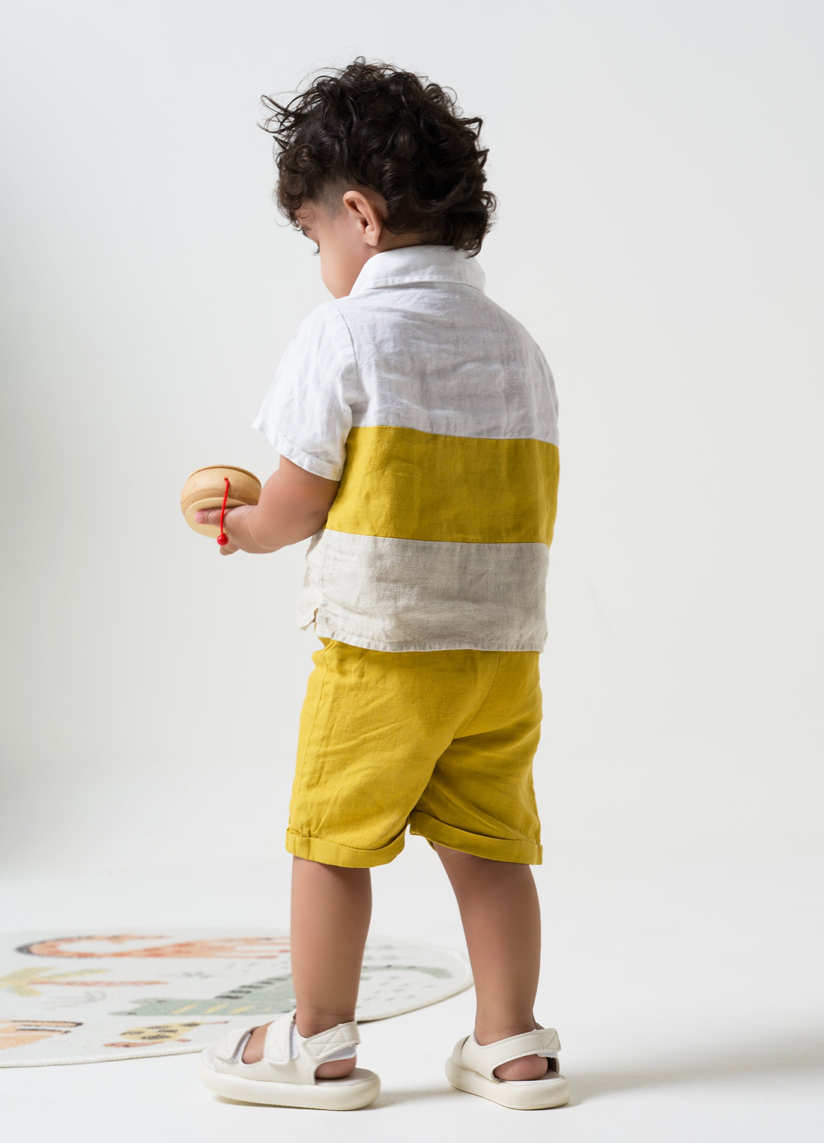 Polo Collar Shirt Set White, Mustard Yellow & Cookie cream B - Mustard Yellow