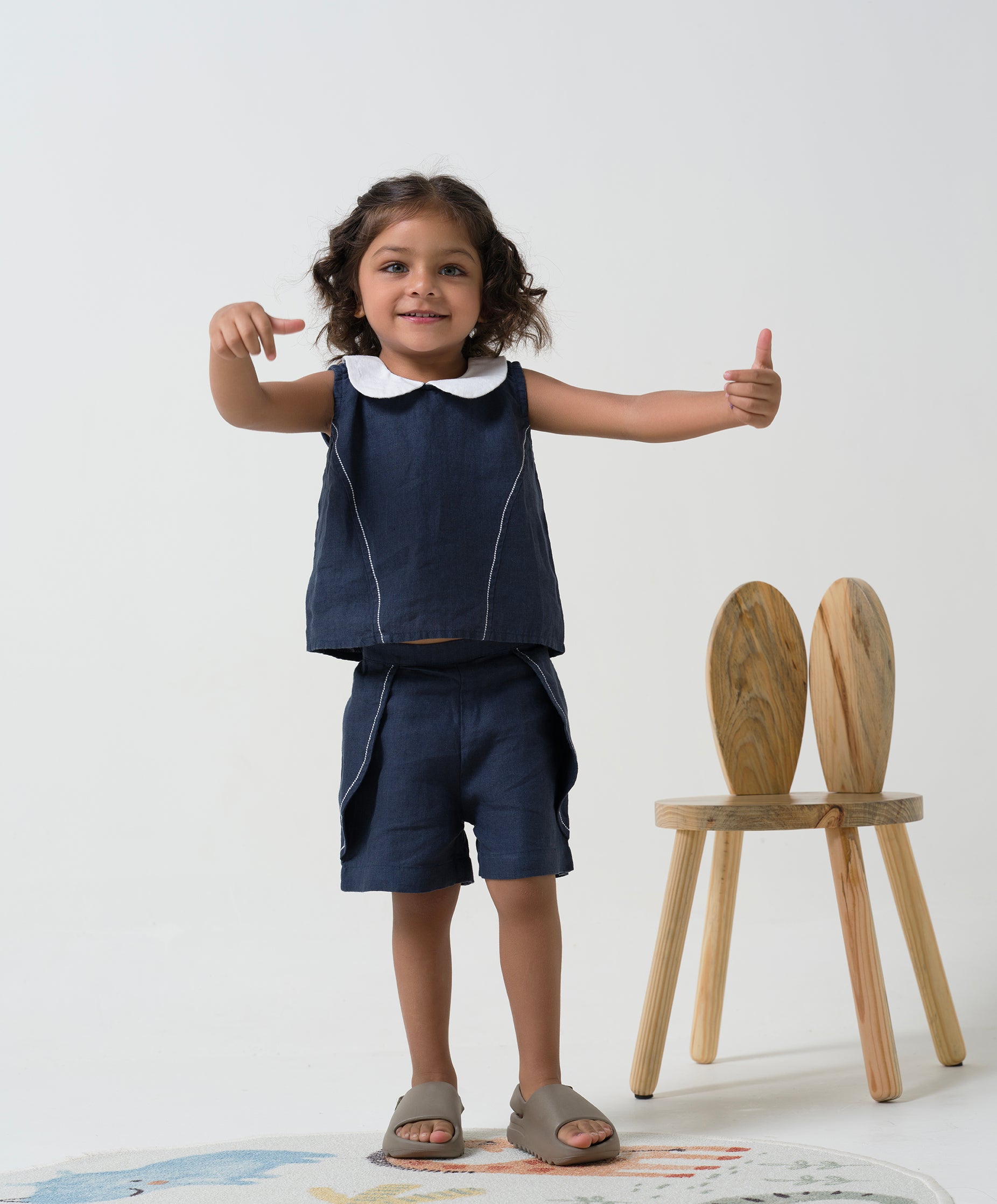 Princess-line Toddler Co-ords - Navy Blue - Collar - White