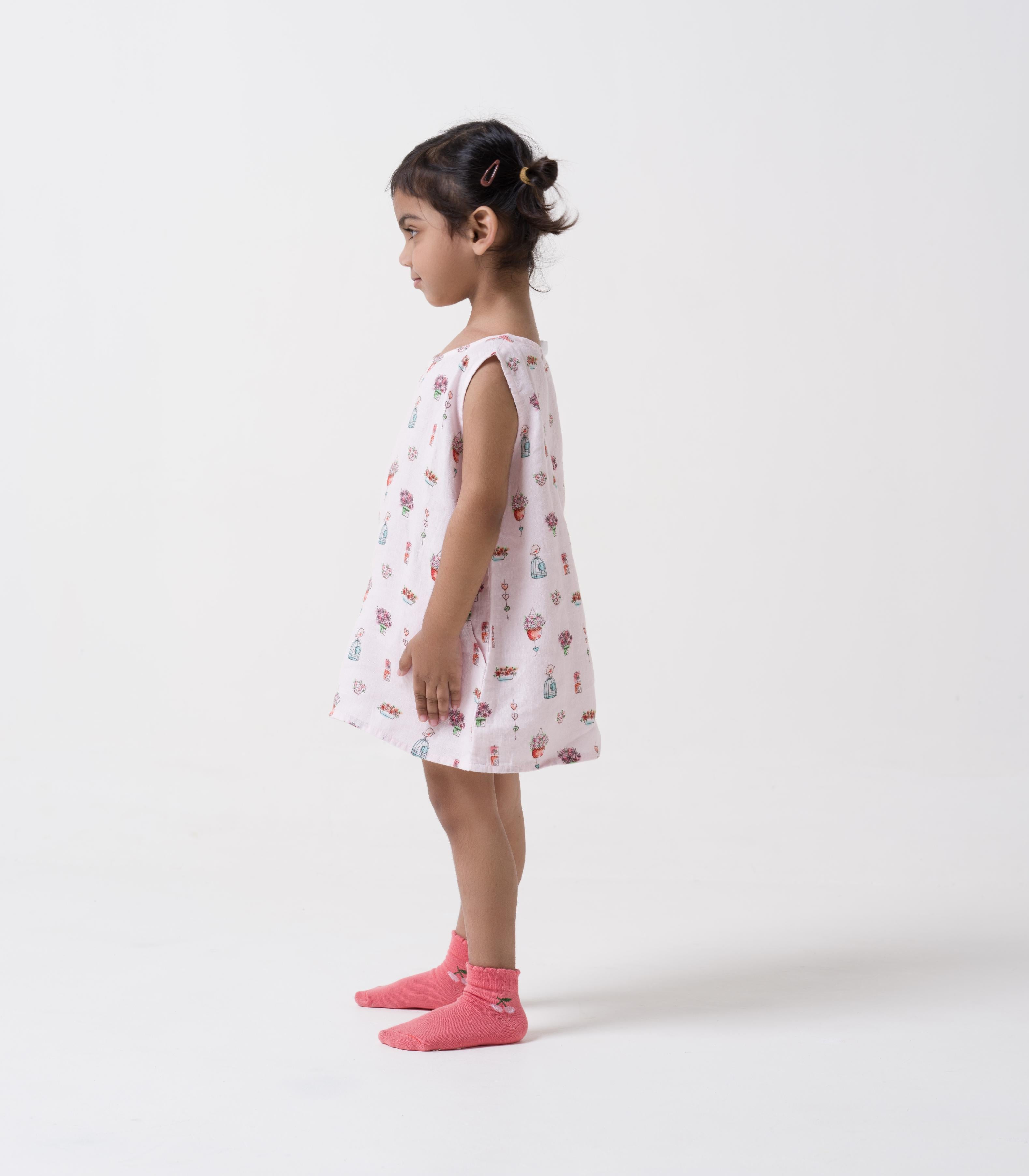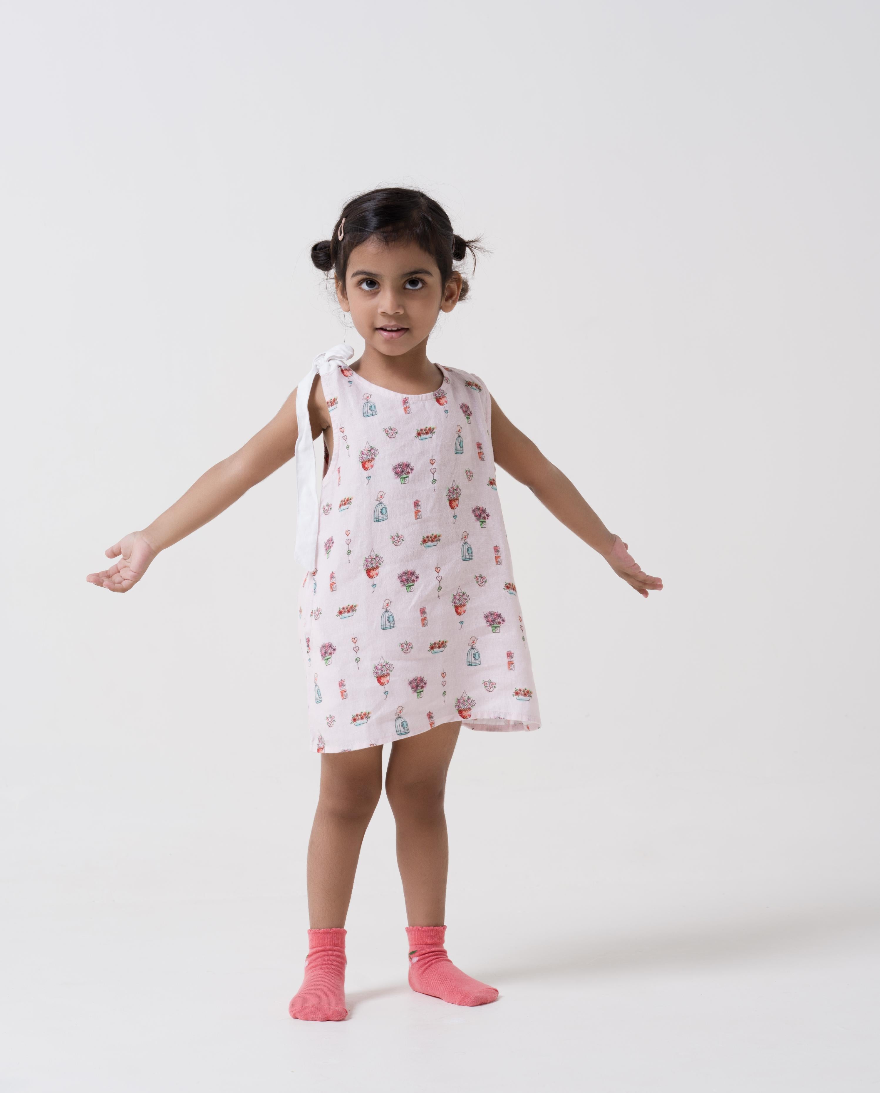 Printed One-Shoulder Tie-Up Dress (Frock)