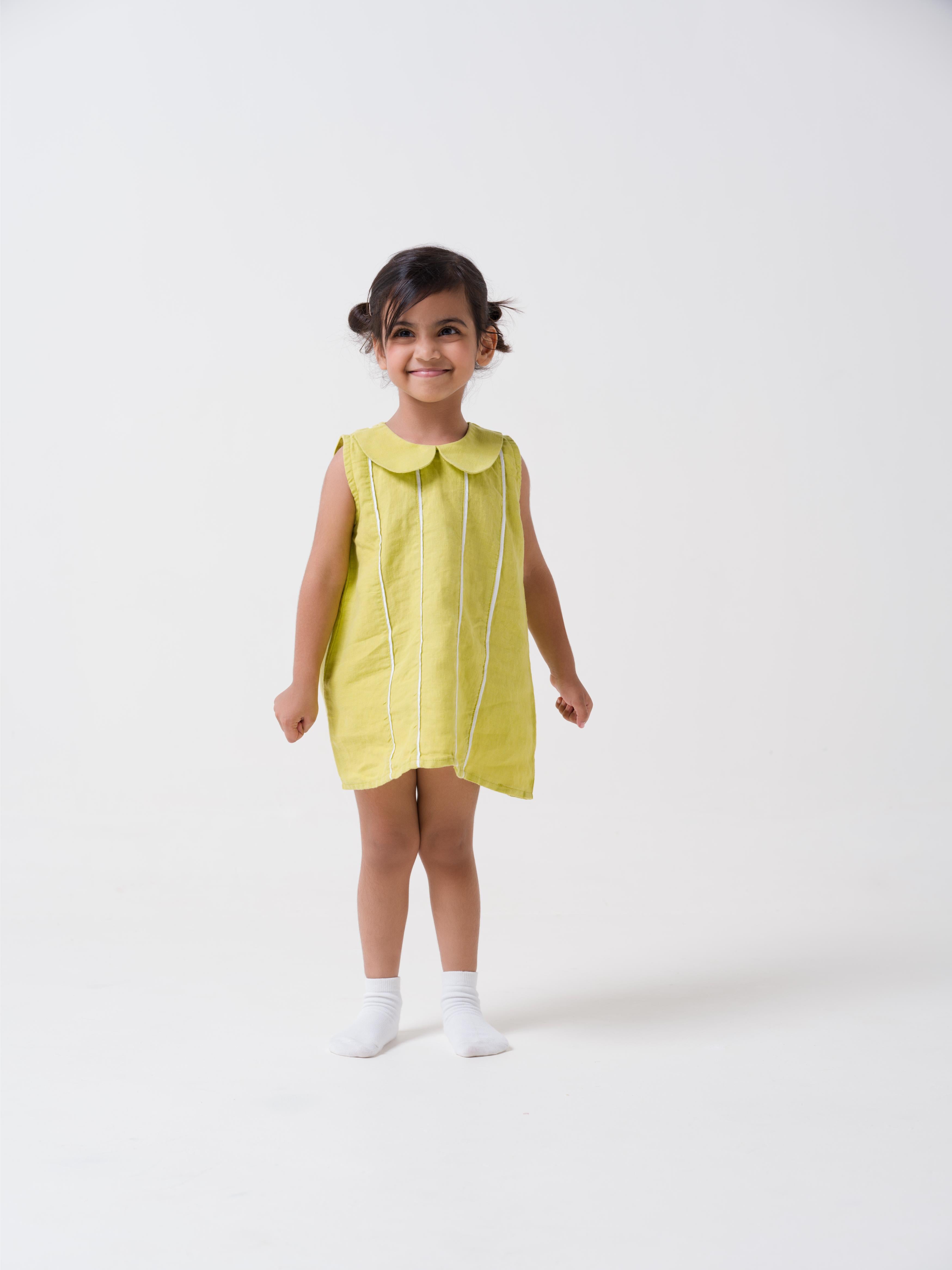 Vertical Stripe Collared Frock Lime - Stripe - White
